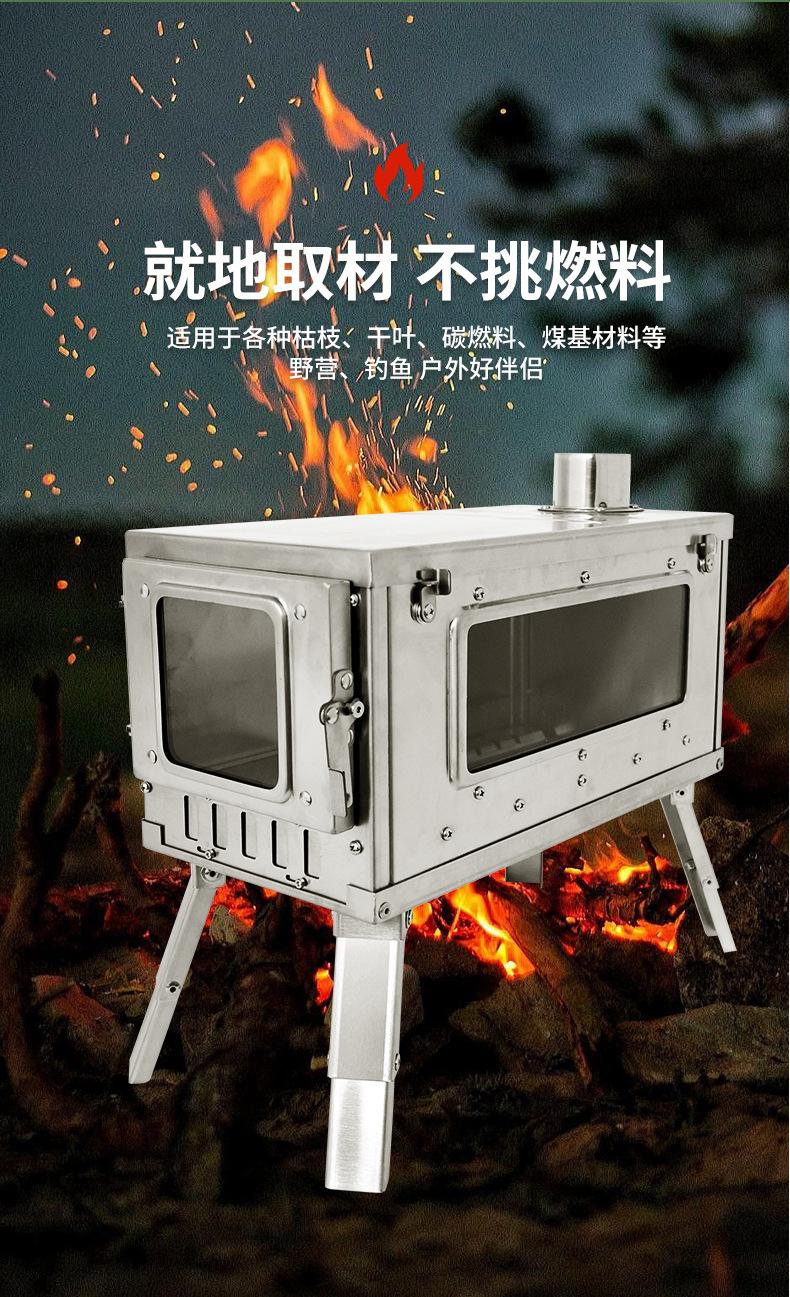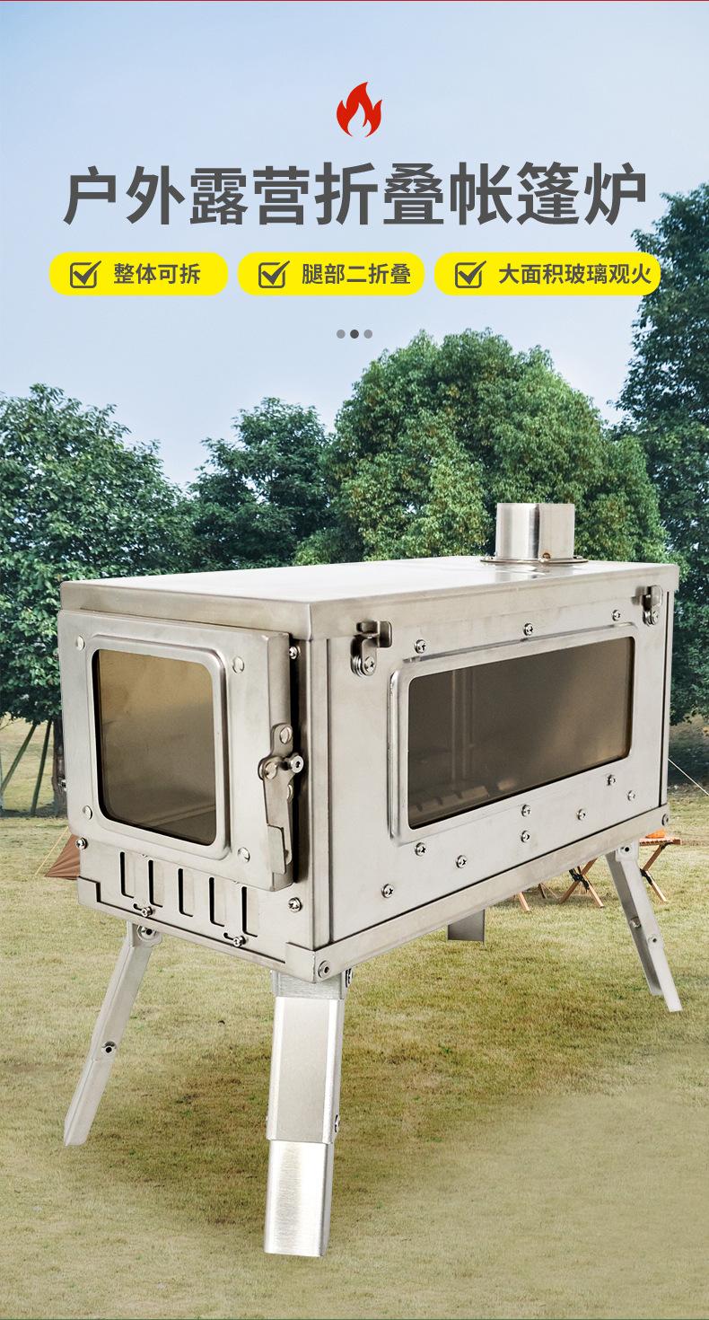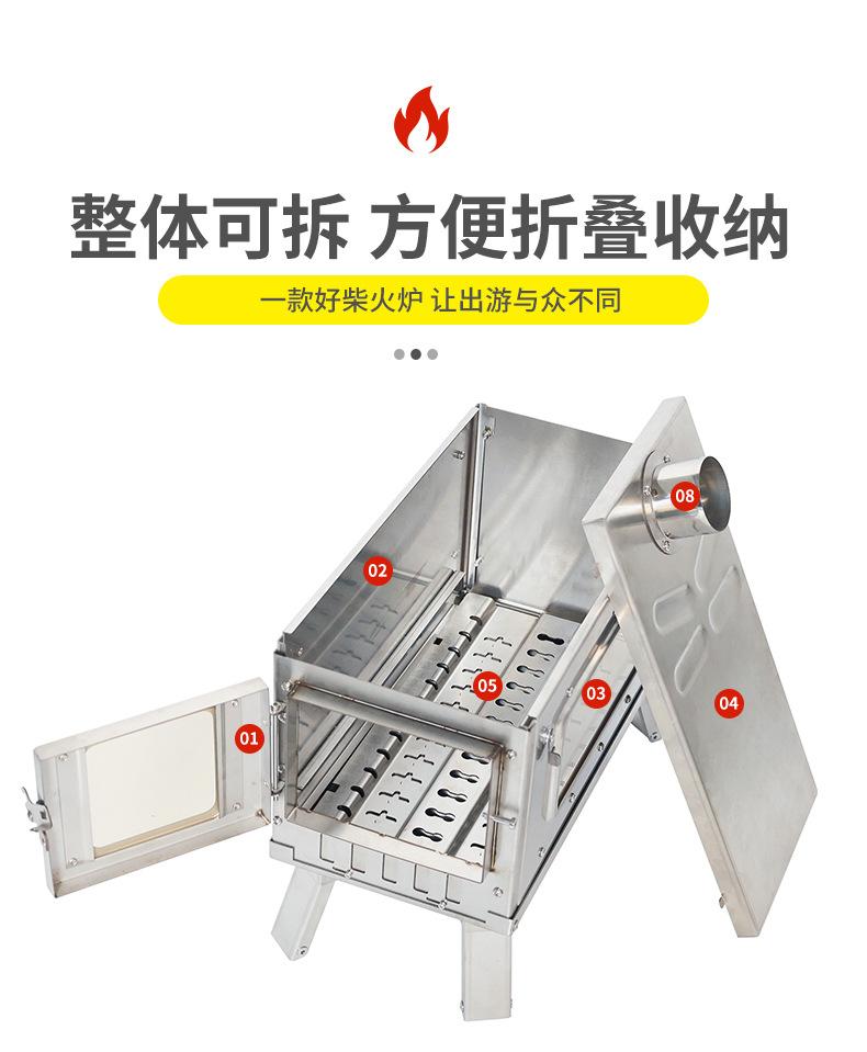 Estufa de leña para acampar al aire libre, estufa de calefacción de acero inoxidable, gruesa, plegable, portátil, sin humo, estufa de picnic multifuncional