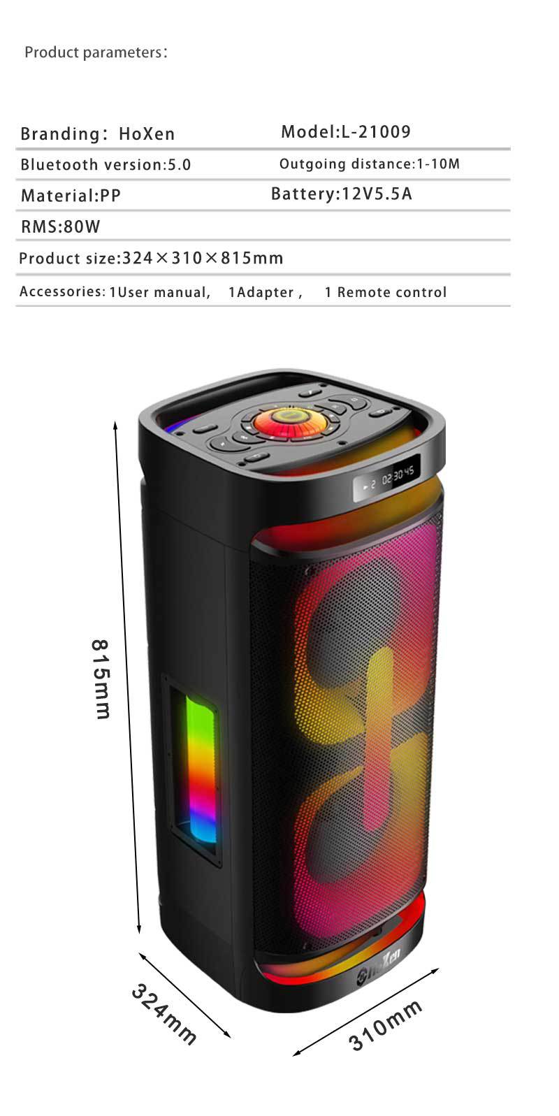 Hoxen fábrica directo altavoz inalámbrico bluetooth alta potencia exterior karaoke móvil portátil tarjeta audio