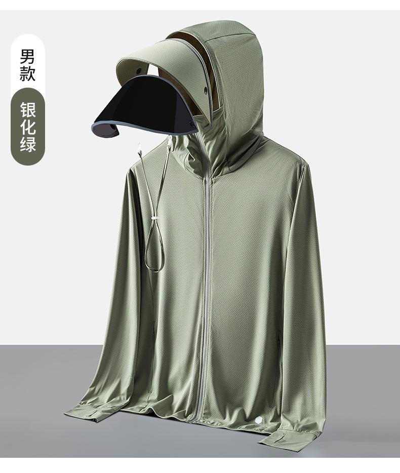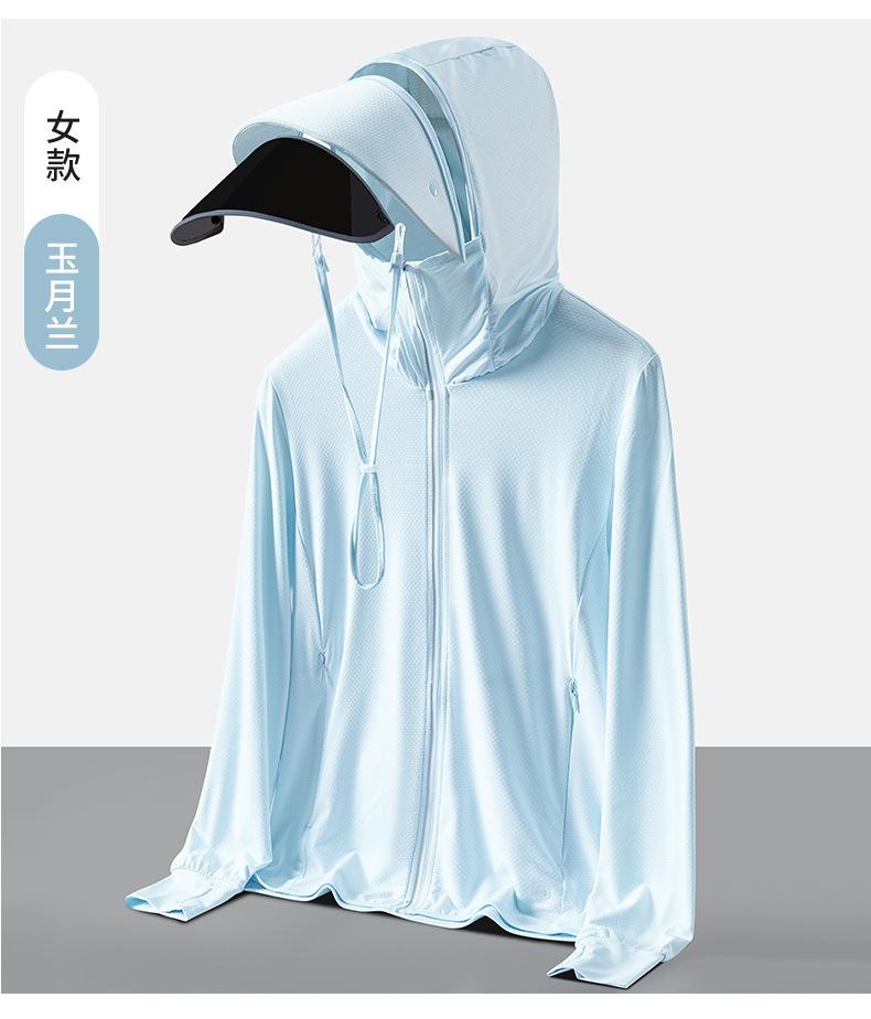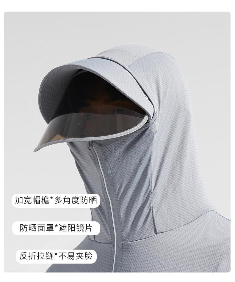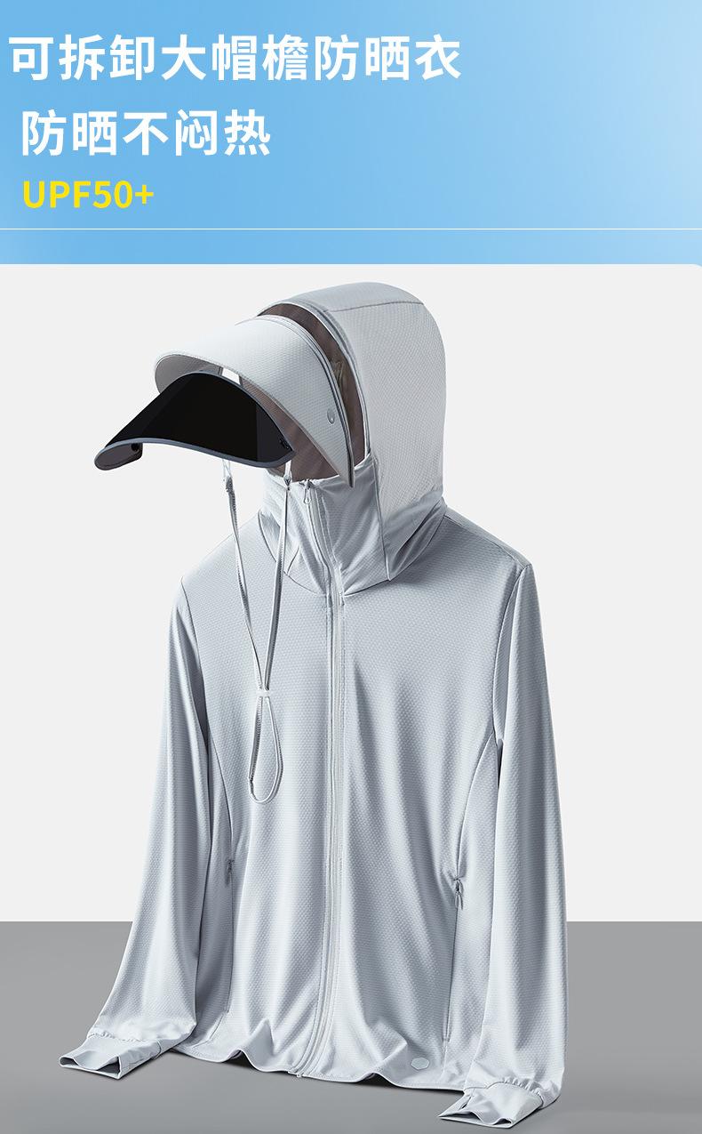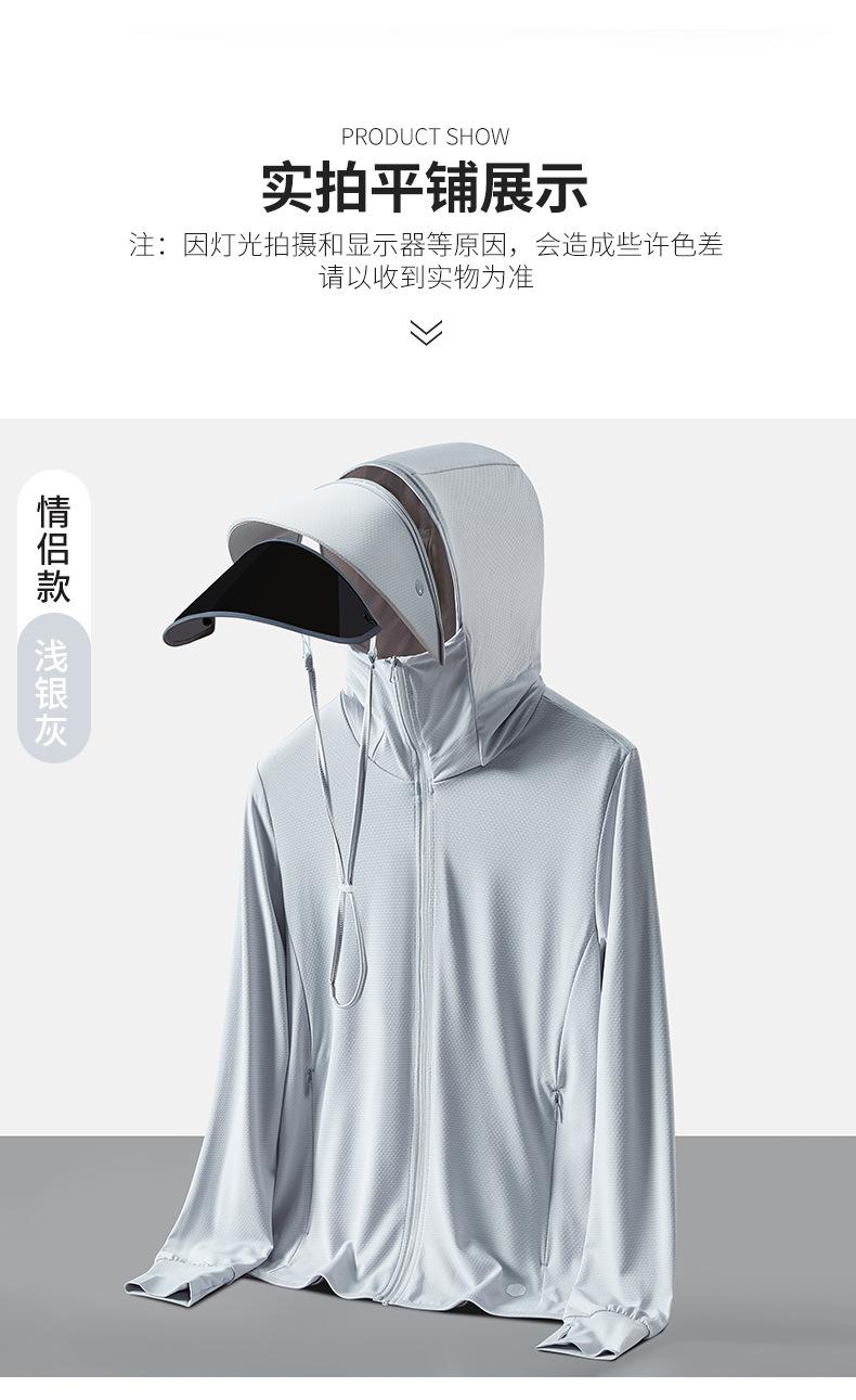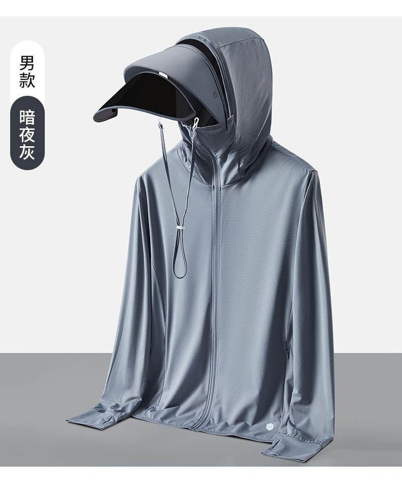 Ropa de Protección Solar para Mujer, Ropa de Protección Solar de Seda de Hielo para Hombre, Ala de Goma Negra Desmontable, Protección UV Upf50+, Ropa de Pesca Transpirable