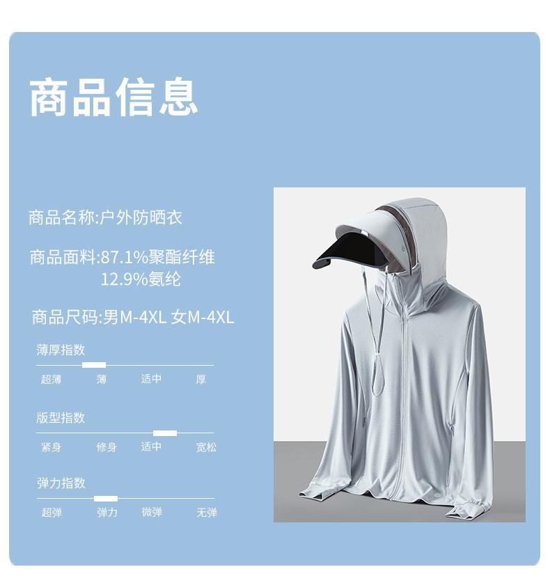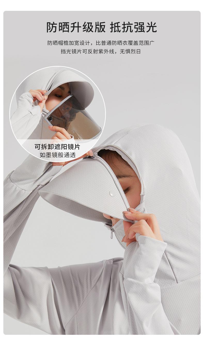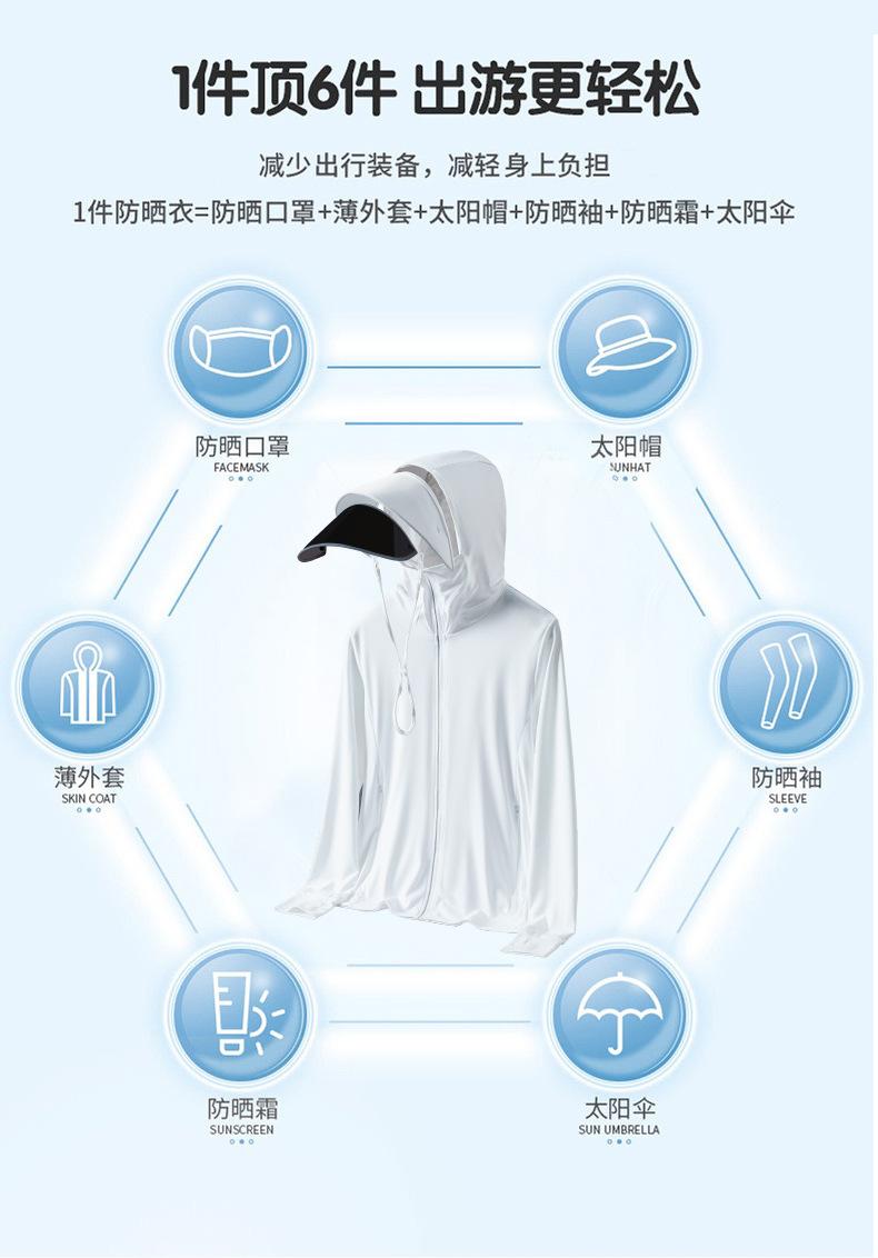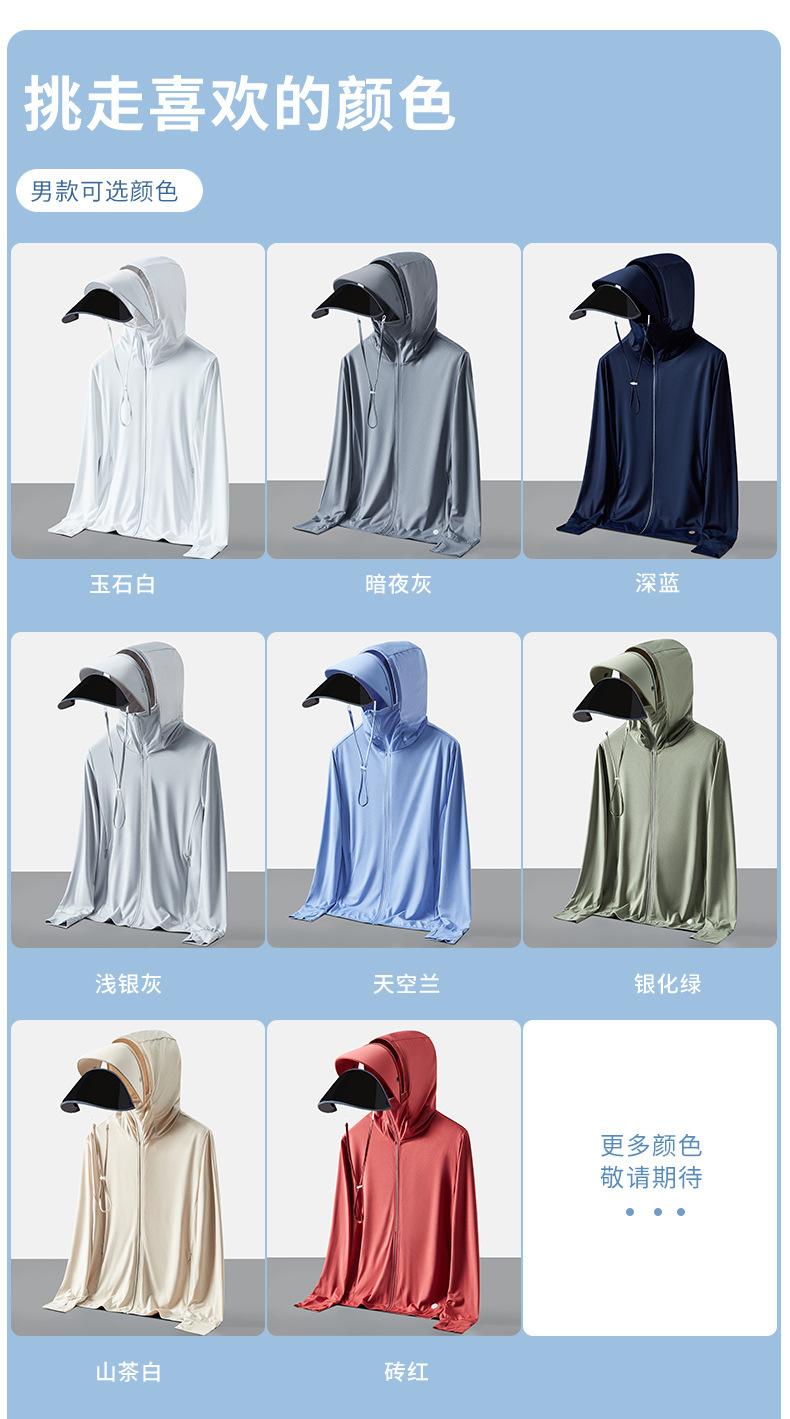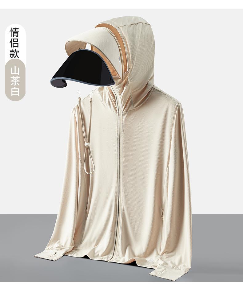 Ropa de Protección Solar para Mujer, Ropa de Protección Solar de Seda de Hielo para Hombre, Ala de Goma Negra Desmontable, Protección UV Upf50+, Ropa de Pesca Transpirable