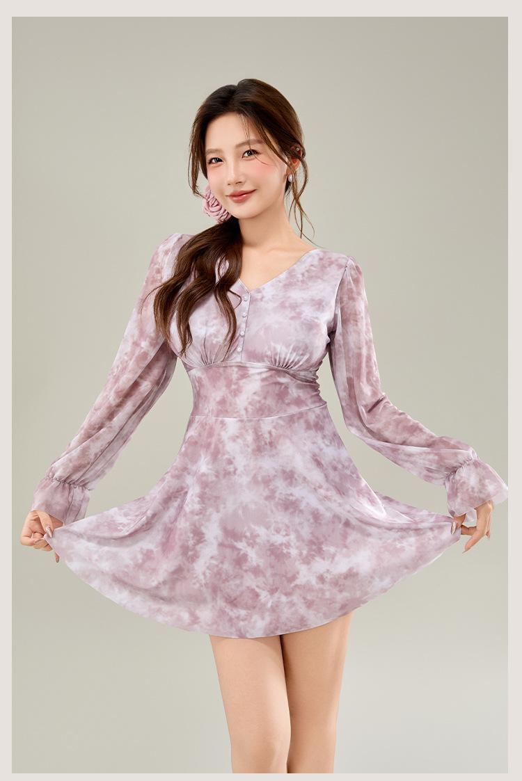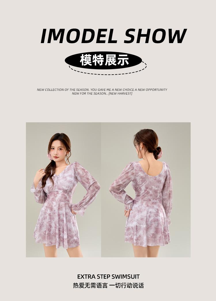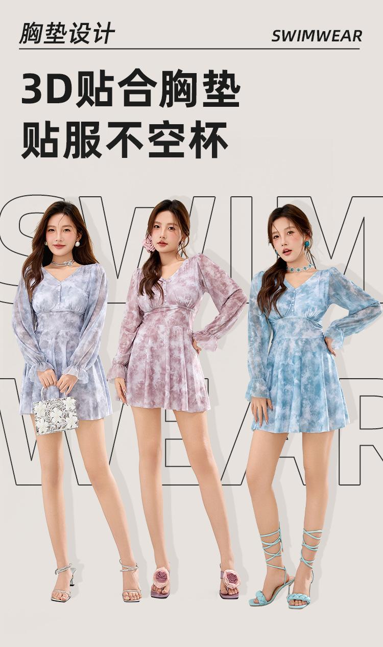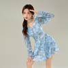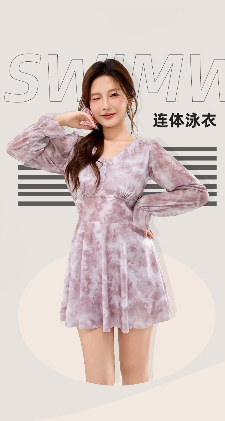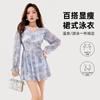 Traje de baño de manga larga para estudiante, falda de una pieza estilo ins, de alto nivel, que cubre el vientre, adelgazante, traje de baño para aguas termales al por mayor
