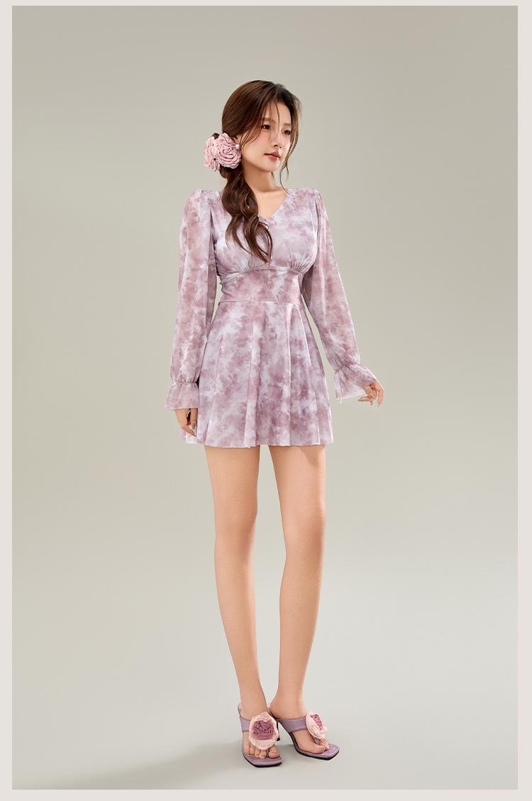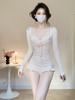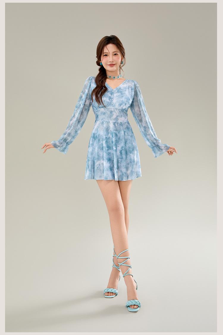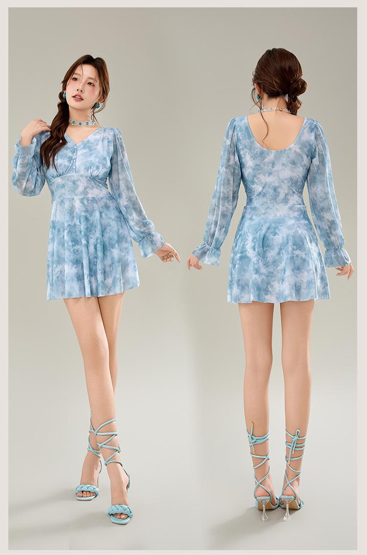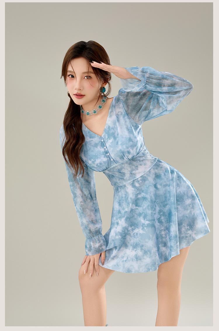 Traje de baño de manga larga para estudiante, falda de una pieza estilo ins, de alto nivel, que cubre el vientre, adelgazante, traje de baño para aguas termales al por mayor