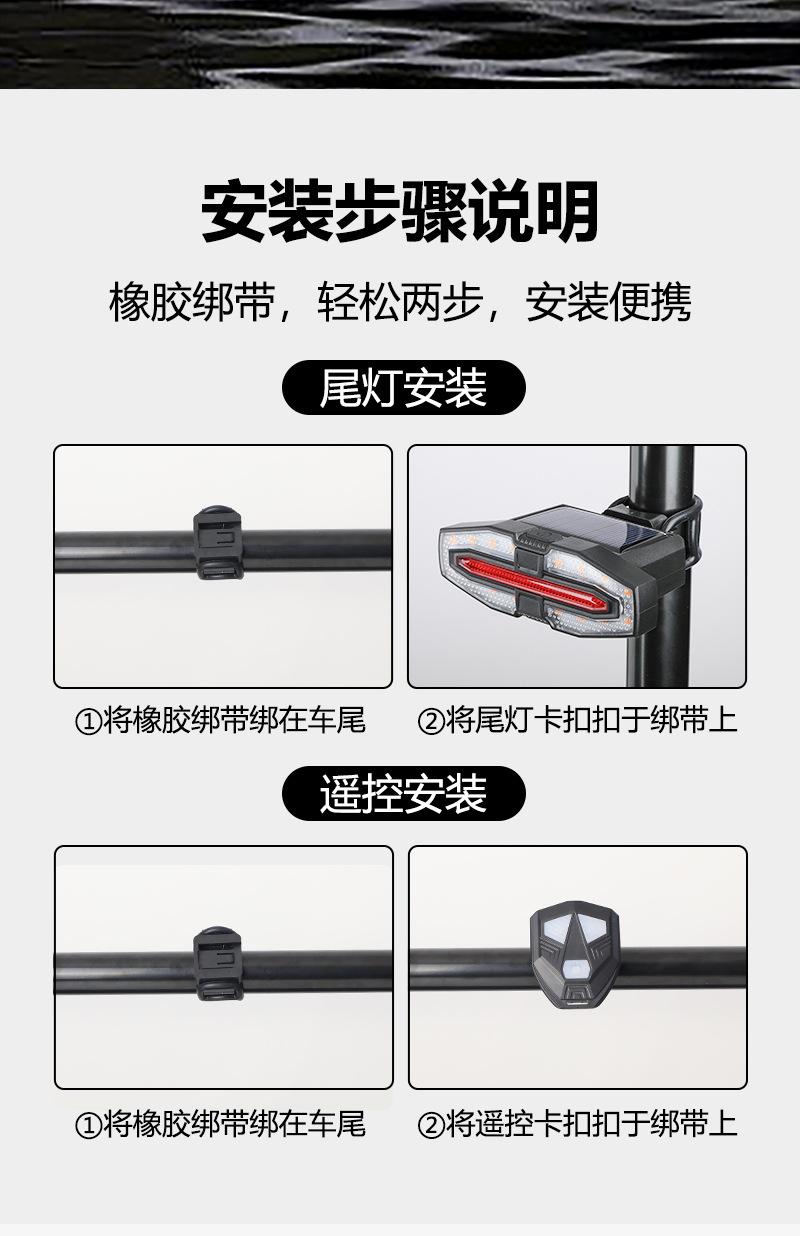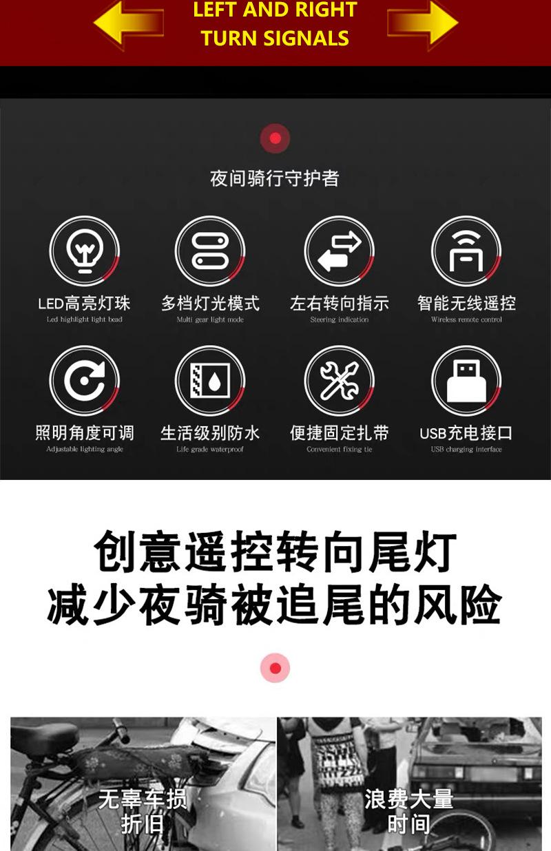 Luz trasera para bicicleta de montaña solar inalámbrica con control remoto, luz trasera direccional, luz de advertencia para ciclismo nocturno, equipo de ciclismo