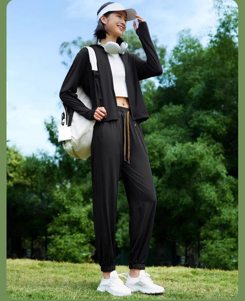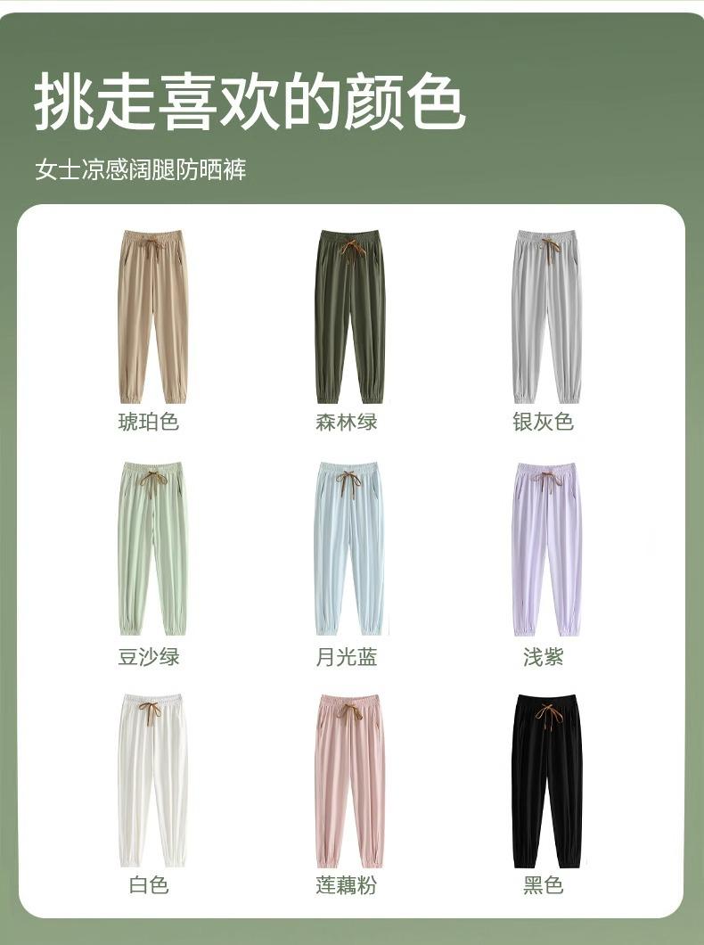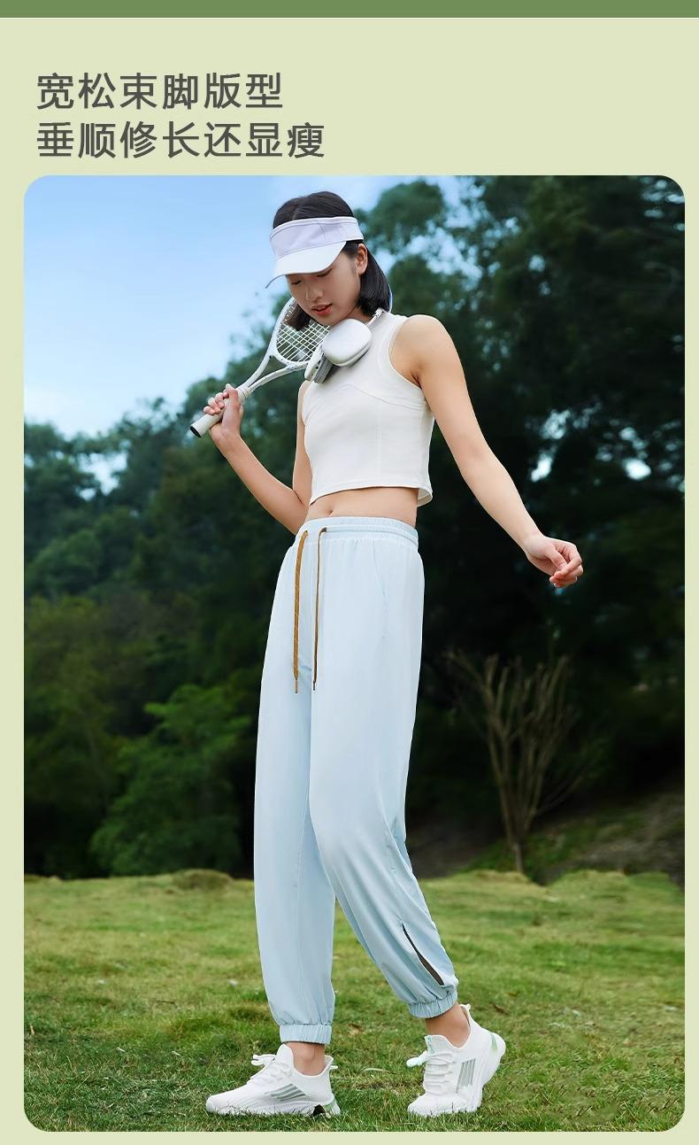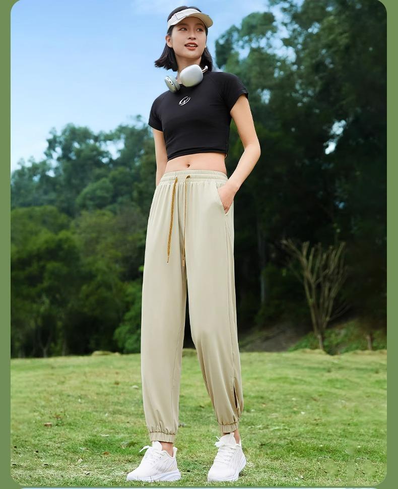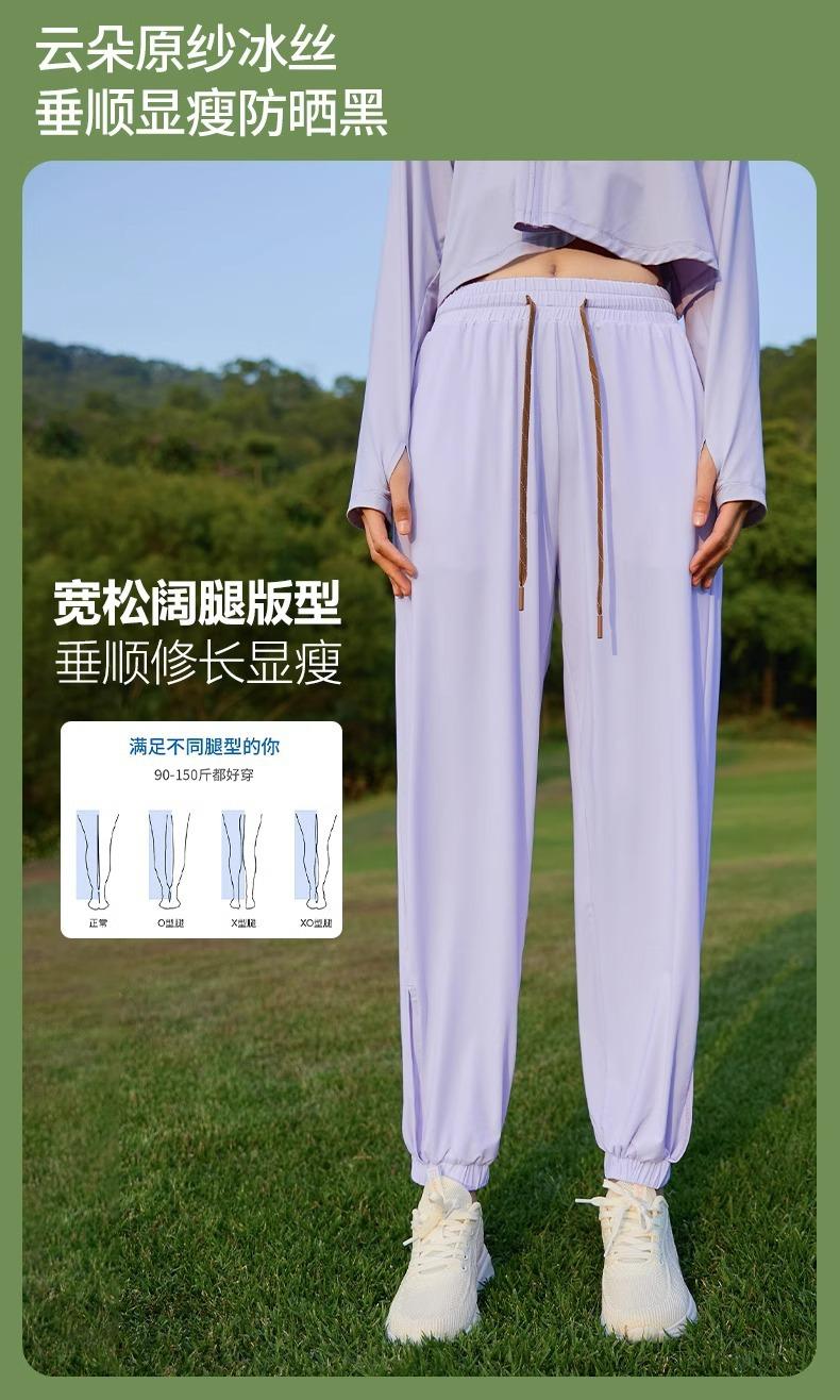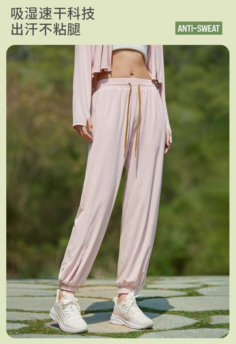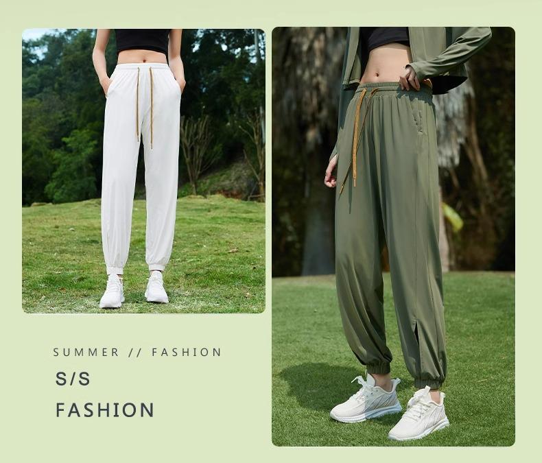 Pantalones largos deportivos de verano, finos, holgados e informales, de secado rápido, para exteriores, con protección solar UPF50, de hilo original de seda helada para mujer