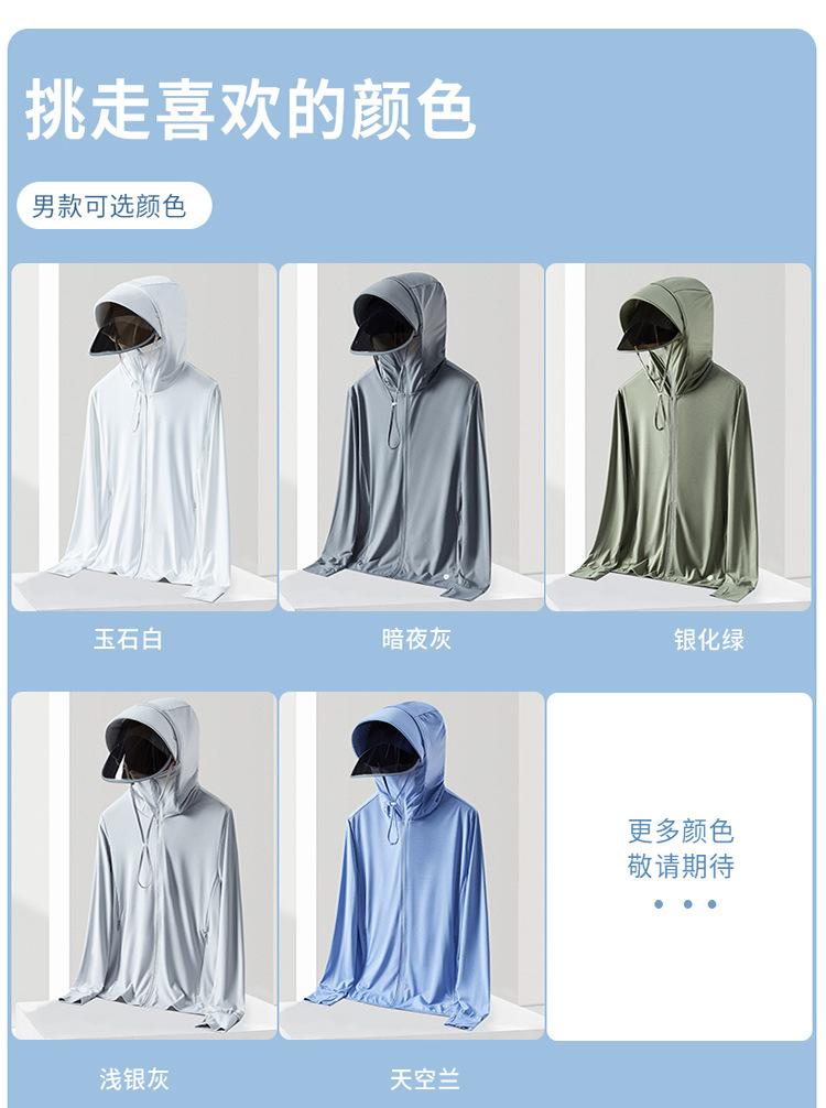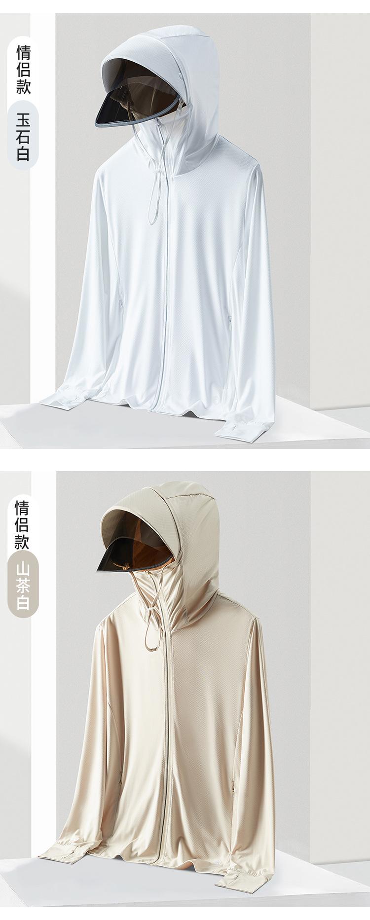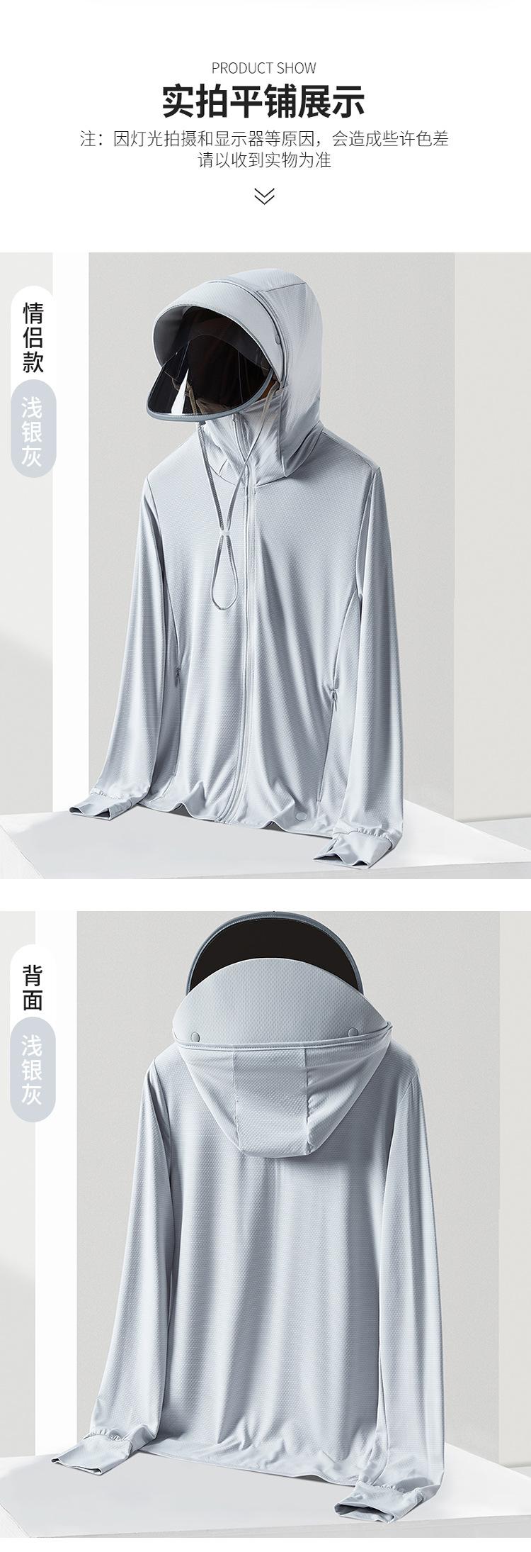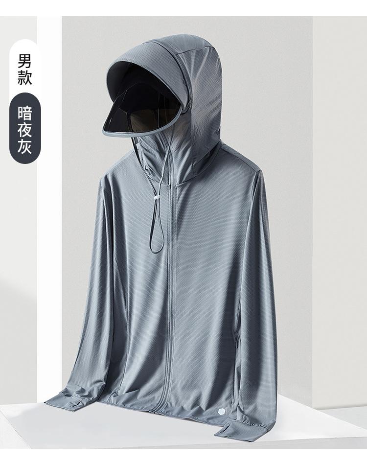 Ropa de Protección Solar UPF50 Ropa de Exterior para Hombre y Mujer Protección UV Seda de Hielo Ropa para la Piel Verano Capucha con Visera Desmontable