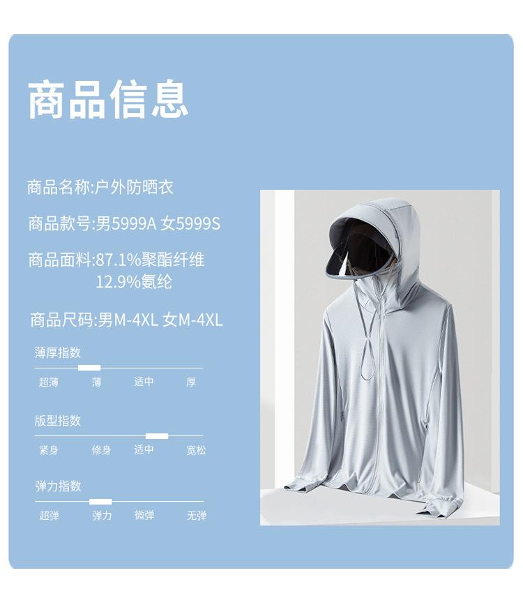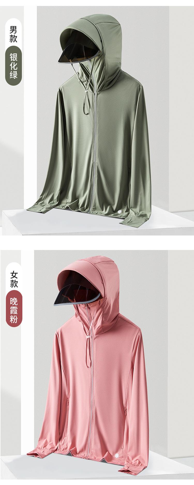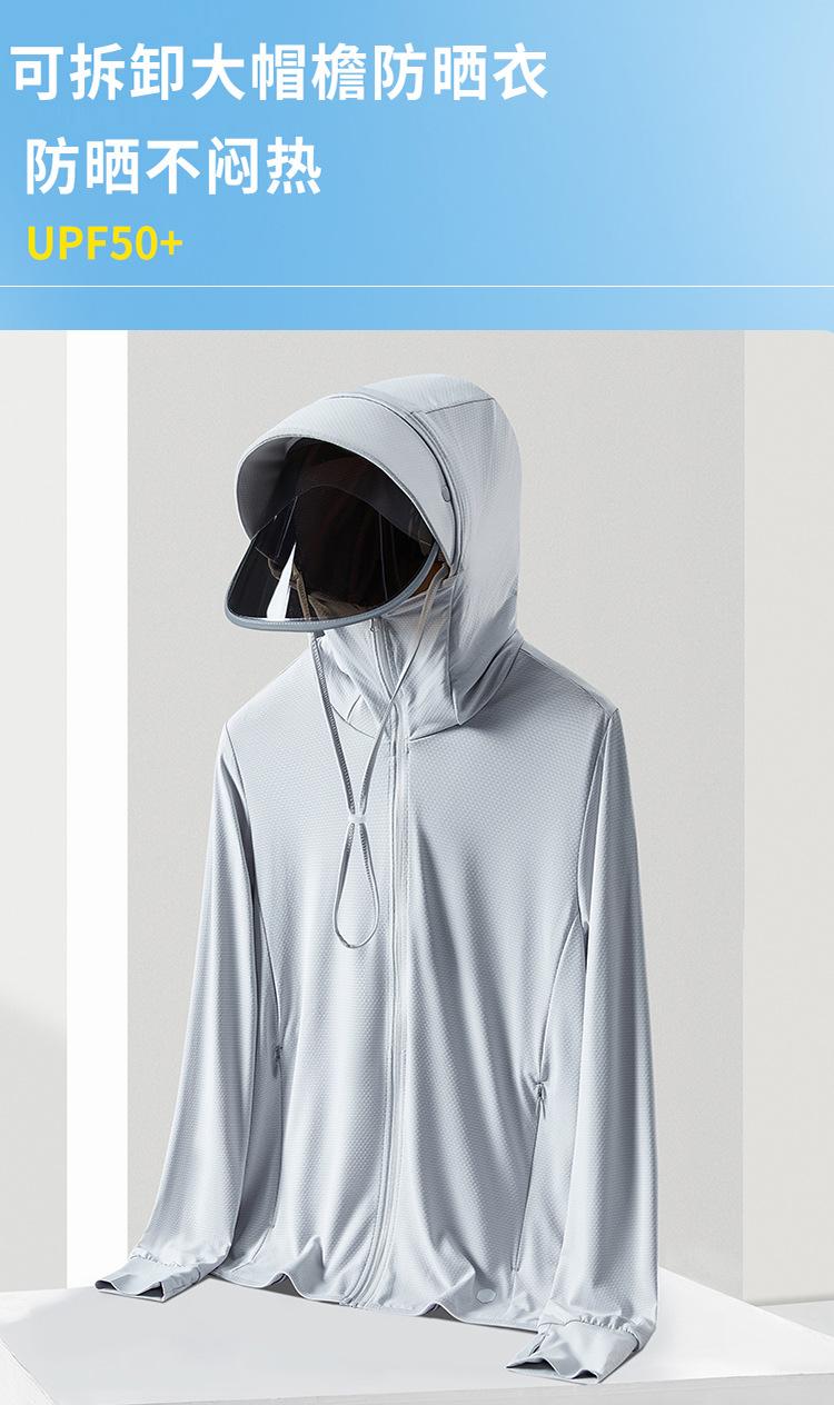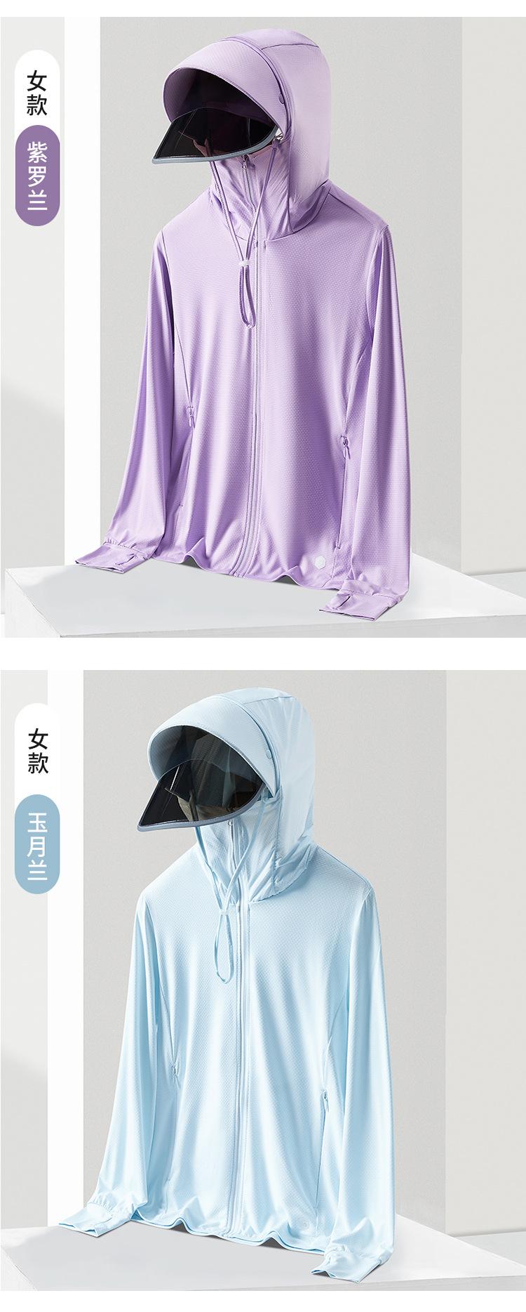 Ropa de Protección Solar UPF50 Ropa de Exterior para Hombre y Mujer Protección UV Seda de Hielo Ropa para la Piel Verano Capucha con Visera Desmontable