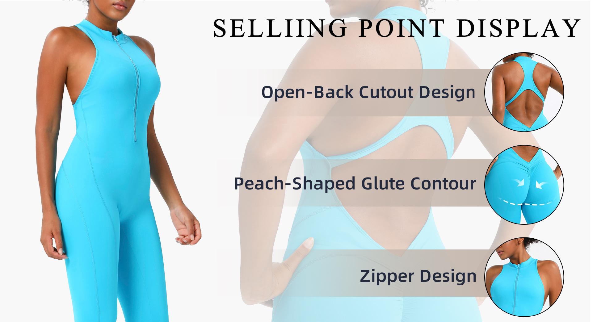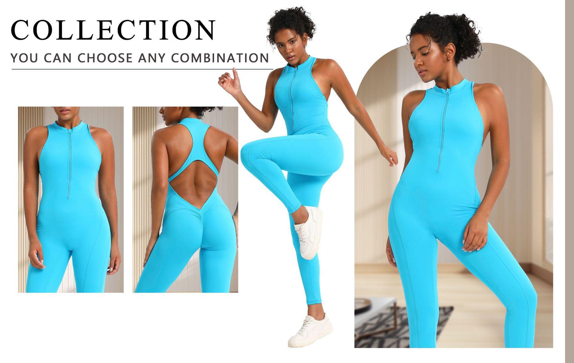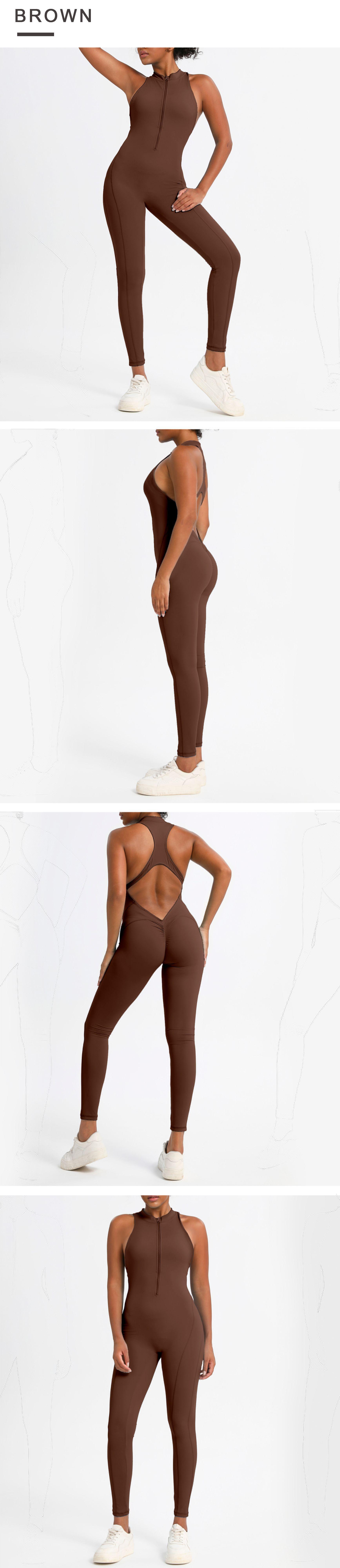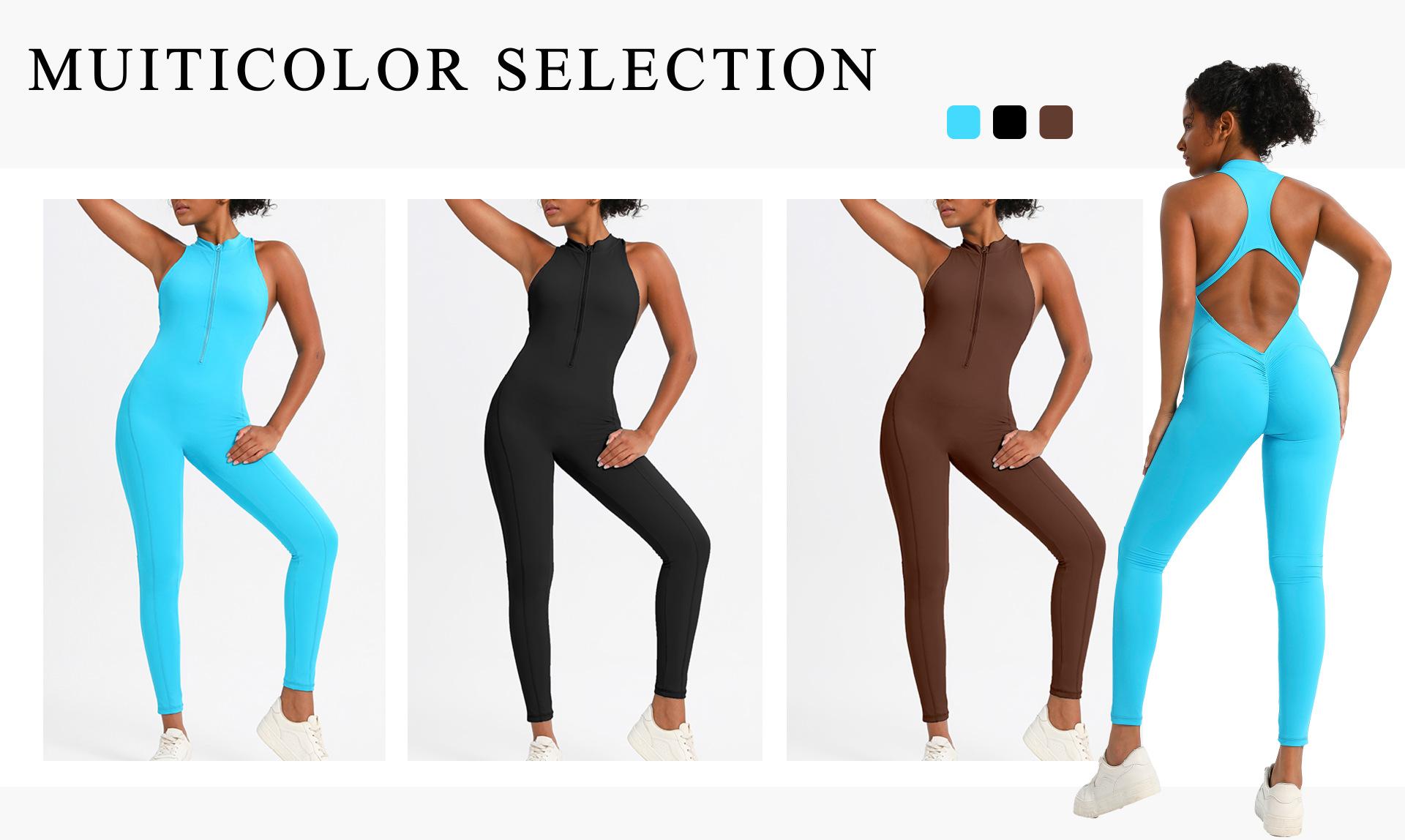 Traje de Yoga Deportivo Enterizo con Cremallera Nuevo Europeo y Americano, Mono Deportivo con Espalda Descubierta para Correr y Fitness, Pantalones de Yoga Enterizos
