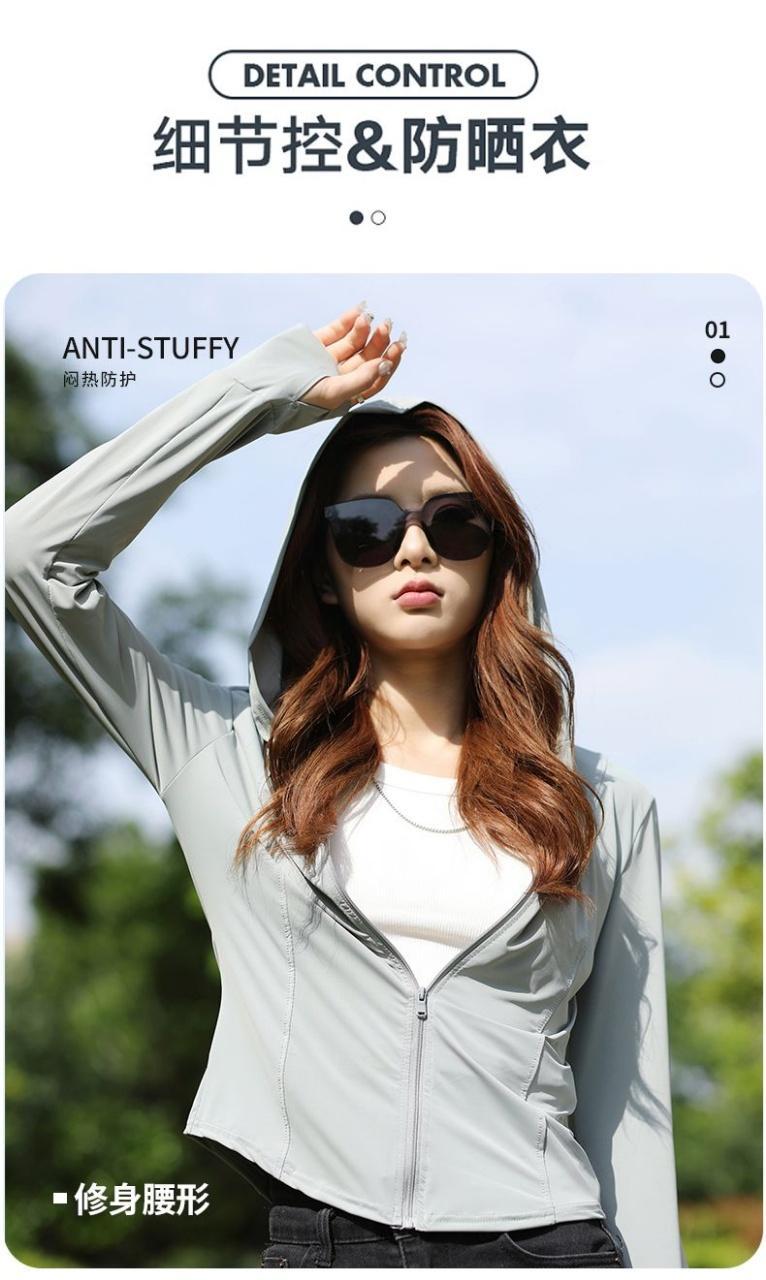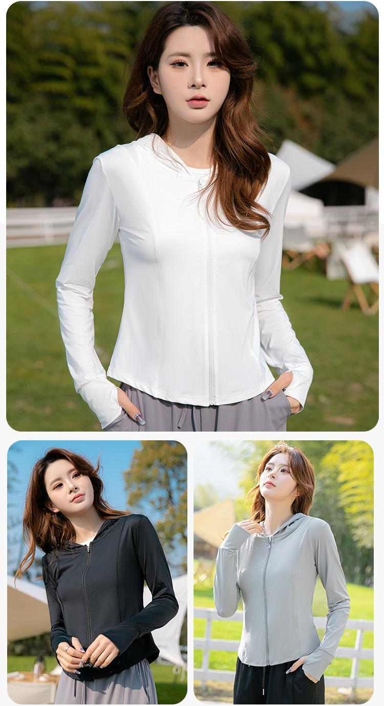 Ropa deportiva ligera de verano con capucha y corte ajustado para exteriores, protección solar, ropa de piel, ropa de protección solar, abrigo de protección UV para mujer, personalizado