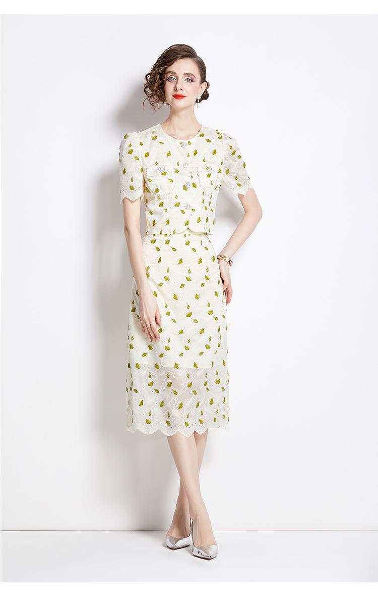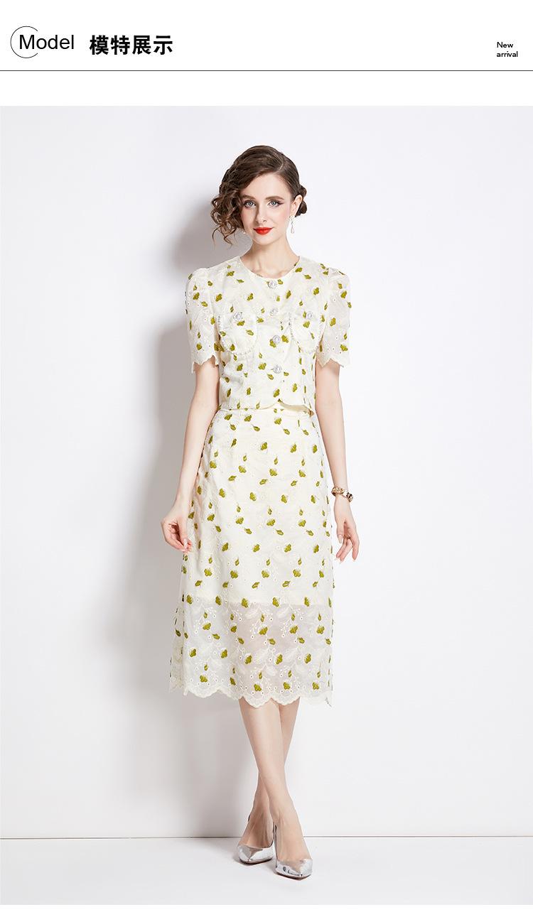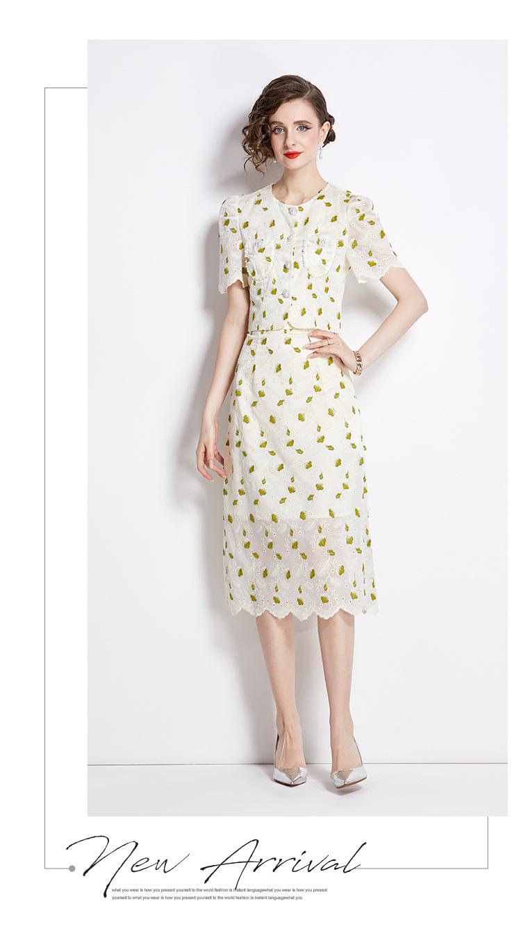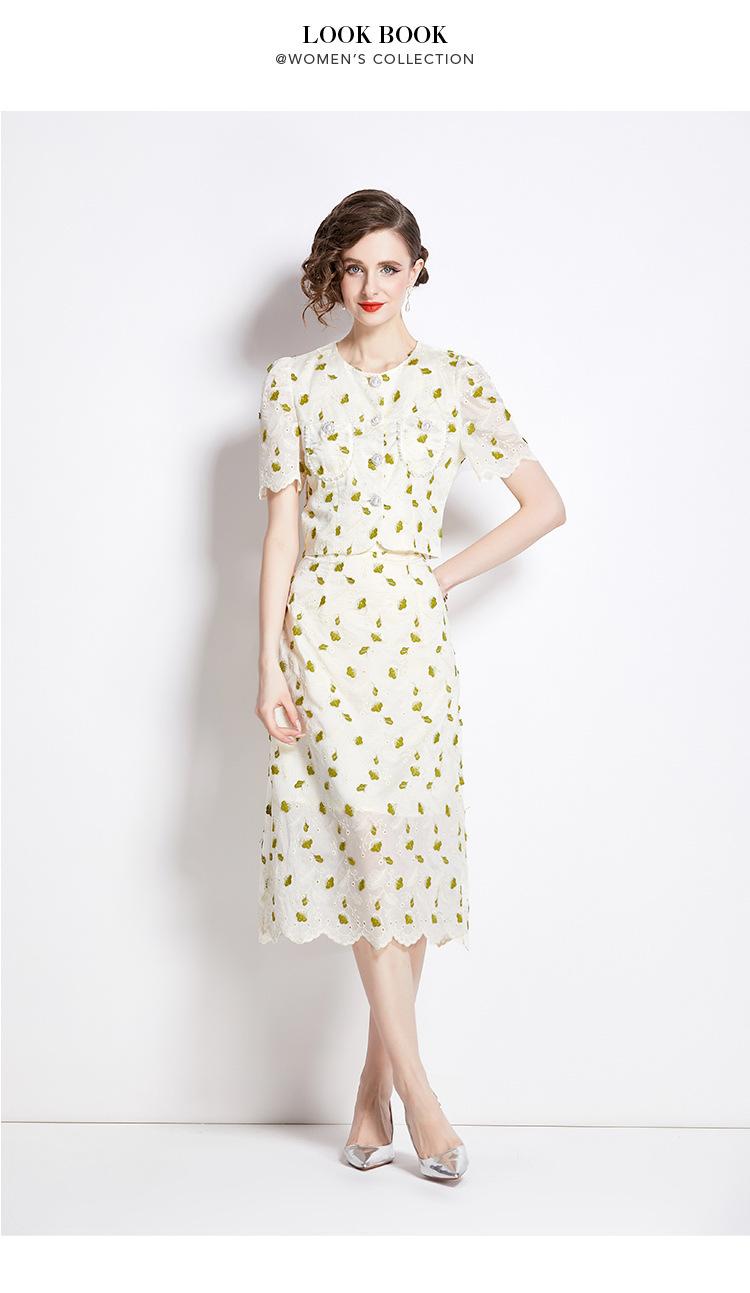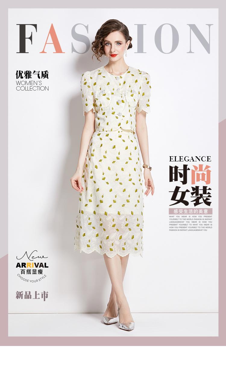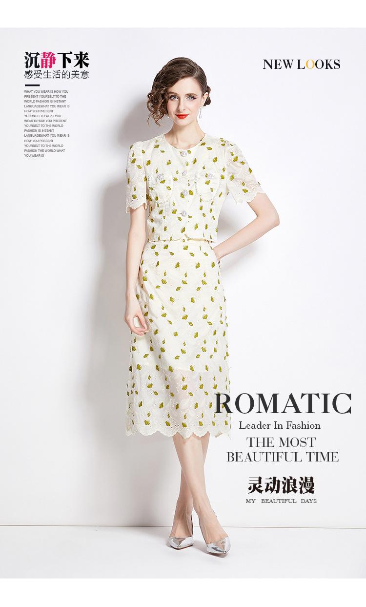Disparo real en stock 8580# nuevo temperamento de alta gama con falda traje de moda de dos piezas con pequeña fragancia