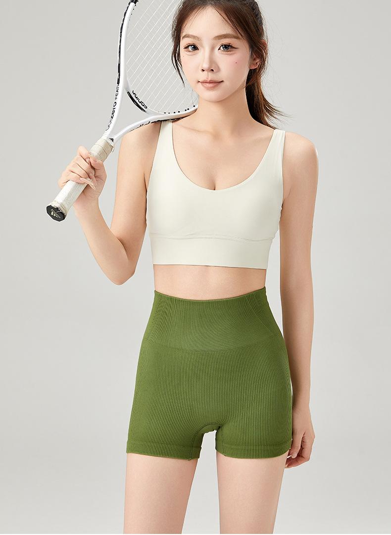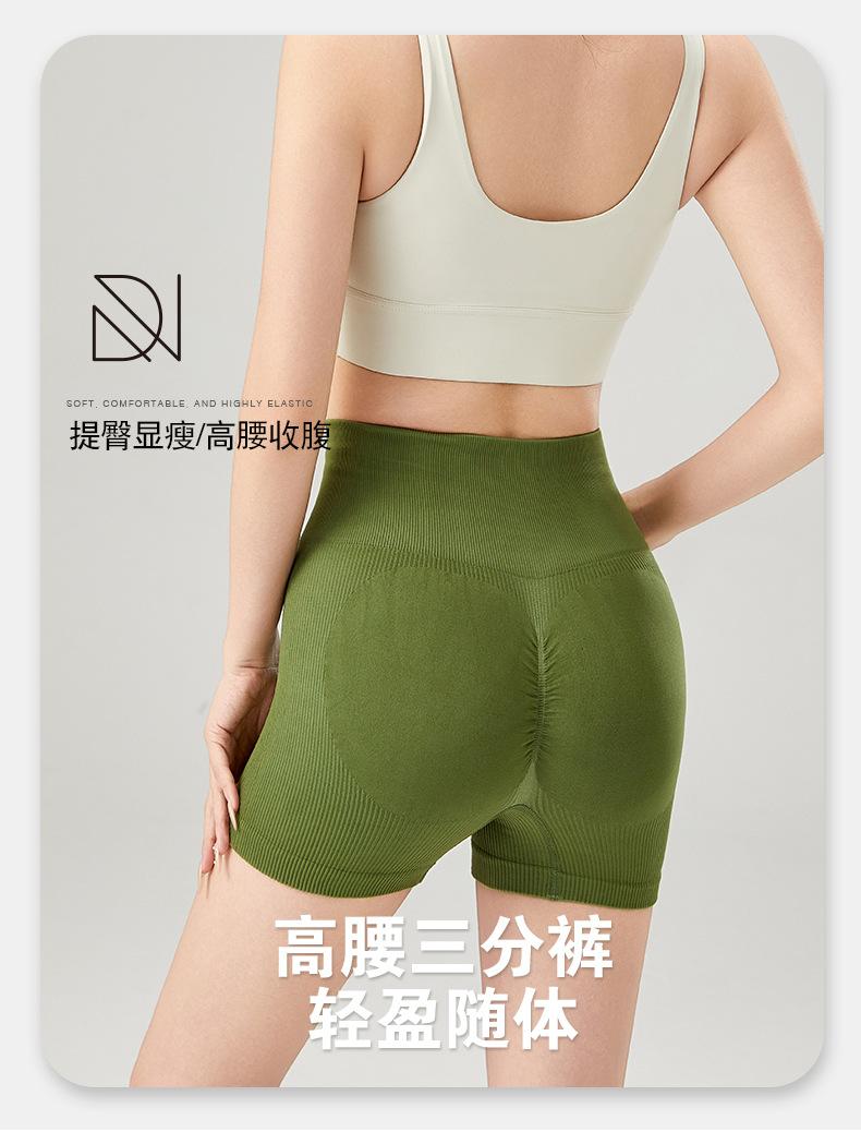 2025 Primavera/Verano Shorts de Yoga de Moda Acanalados Deportes Correr Fitness Pantalones de Yoga Control de Abdomen Levantamiento de Cadera Shorts Tres Cuartos Venta al por Mayor