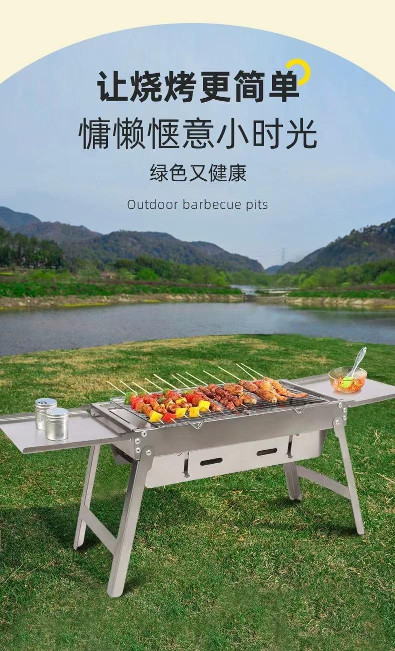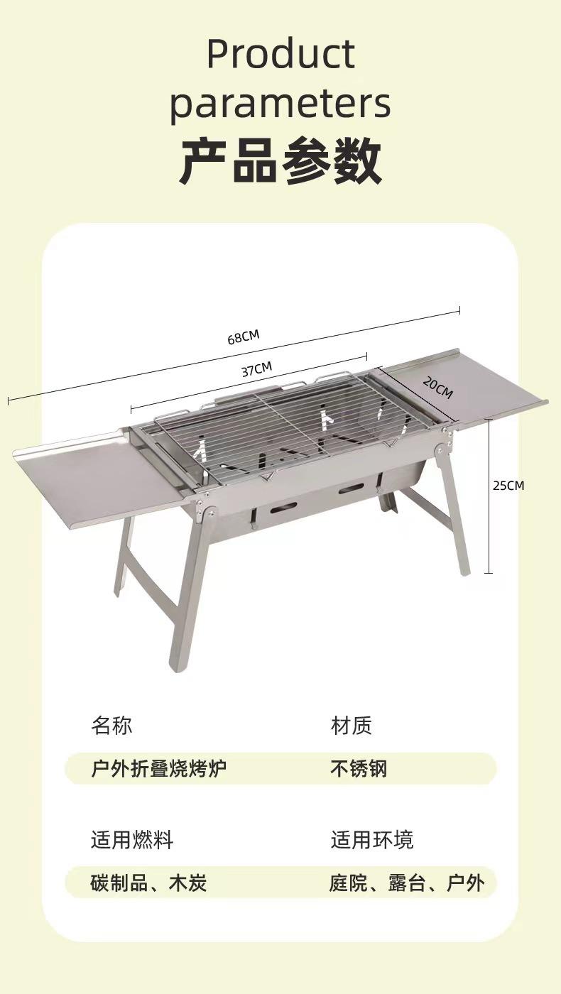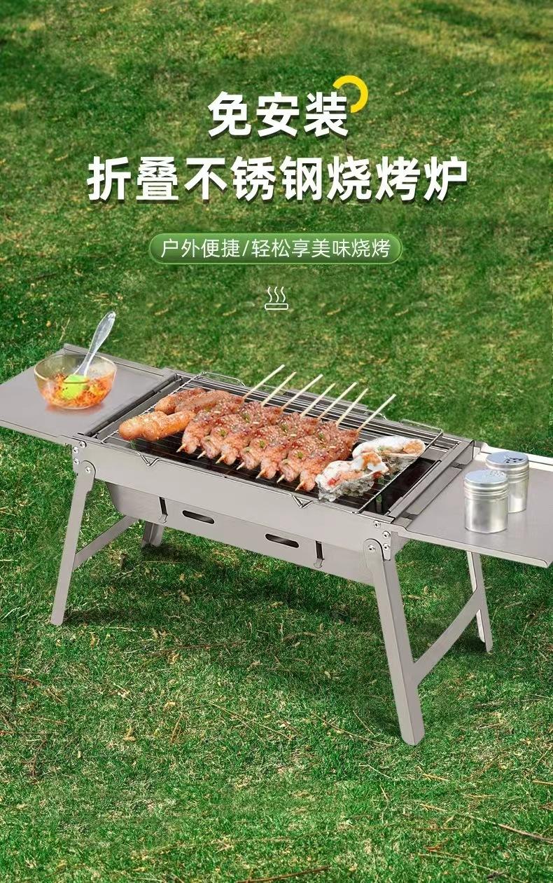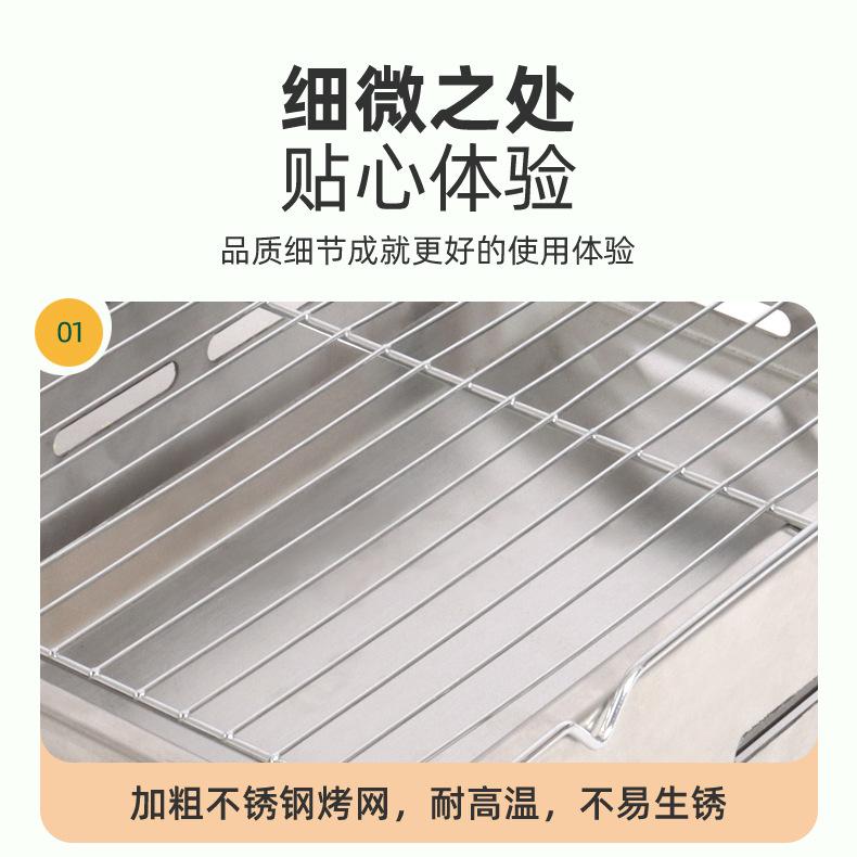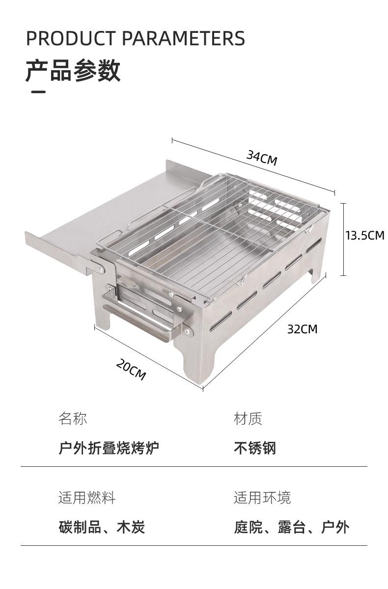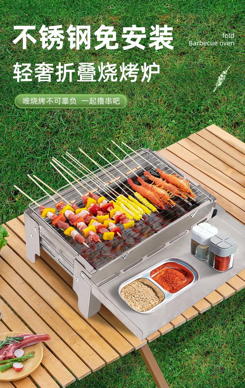 Parrilla de barbacoa de acero inoxidable engrosada para patio doméstico, horno de barbacoa al aire libre, parrilla de barbacoa portátil de carbón sin humo, horno de barbacoa plegable