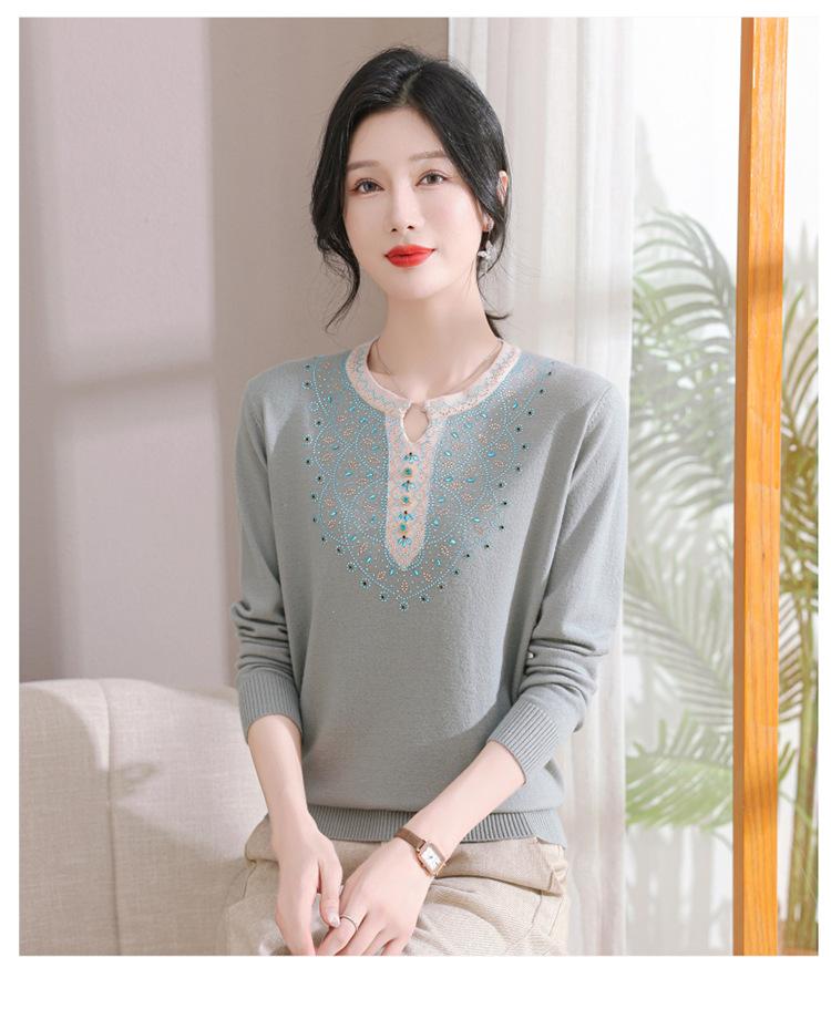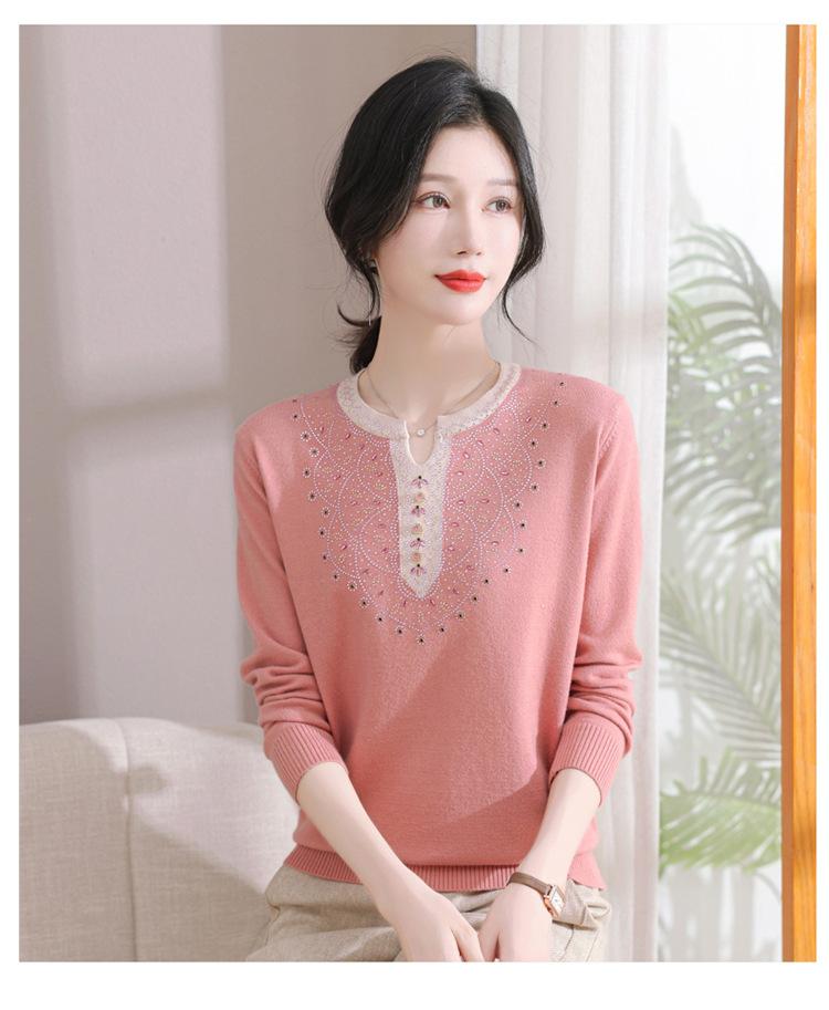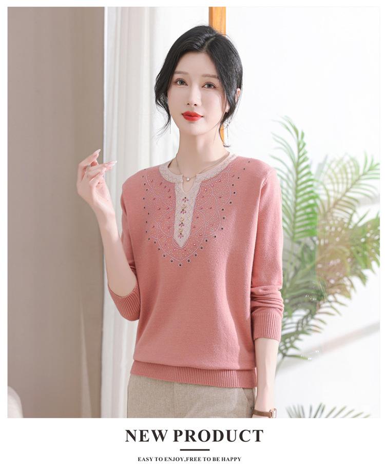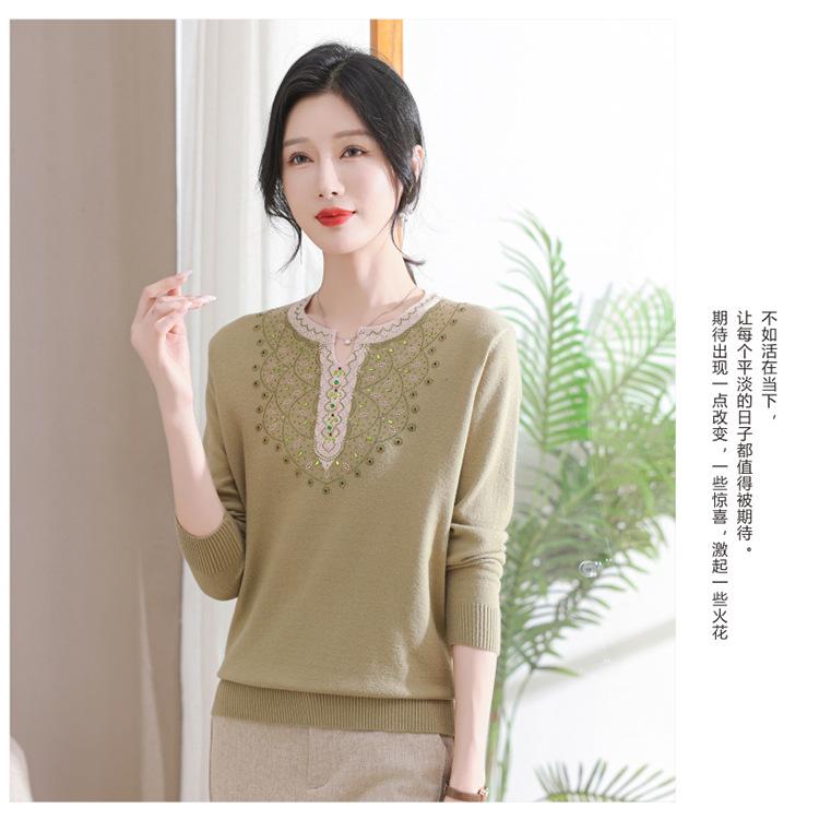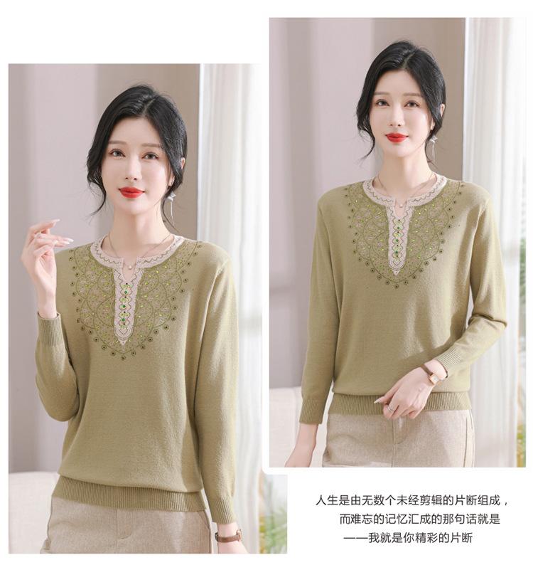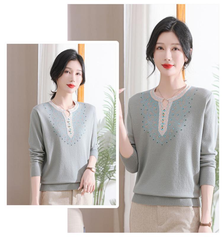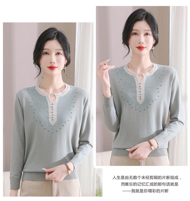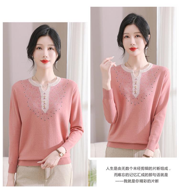 Suéter fino de manga larga de moda para madres, nueva camisa holgada de otoño para mujeres de mediana edad y mayores, elegante top de punto