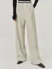 Pantalones de pierna recta informales de cintura alta con cinturón hueco para mujer, de comercio exterior europeo y americano, de primavera y otoño, holgados, de color sólido, de pierna ancha