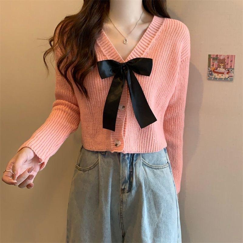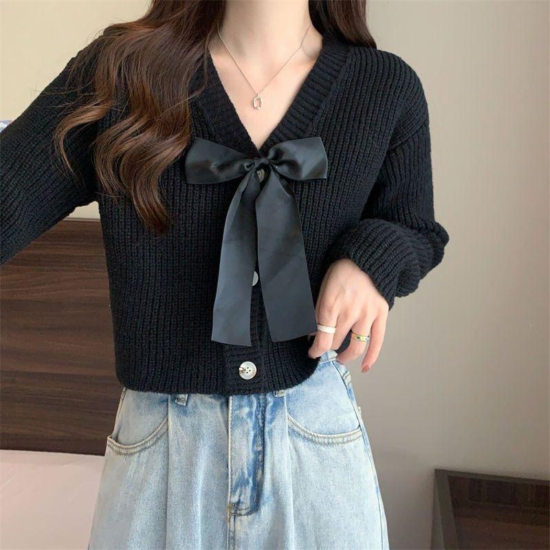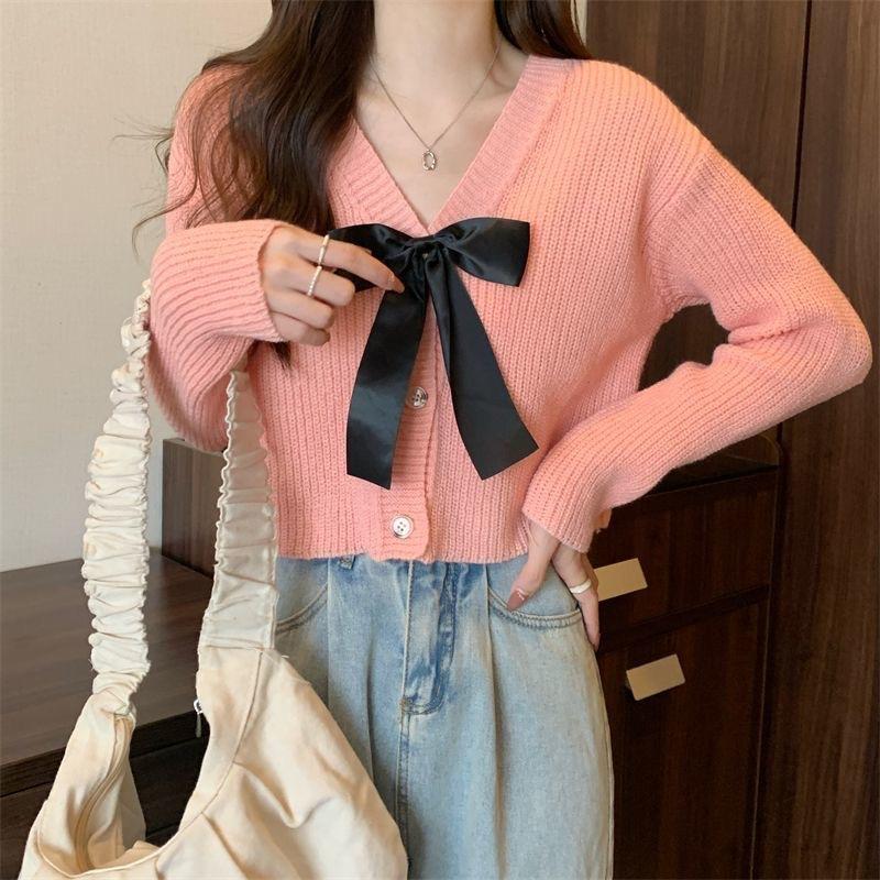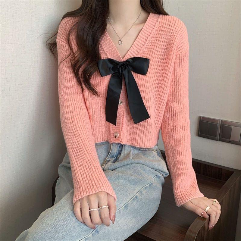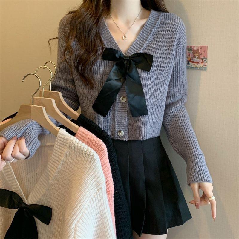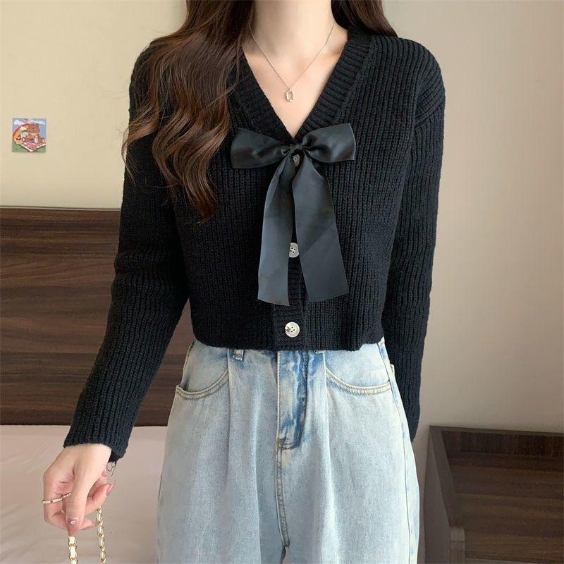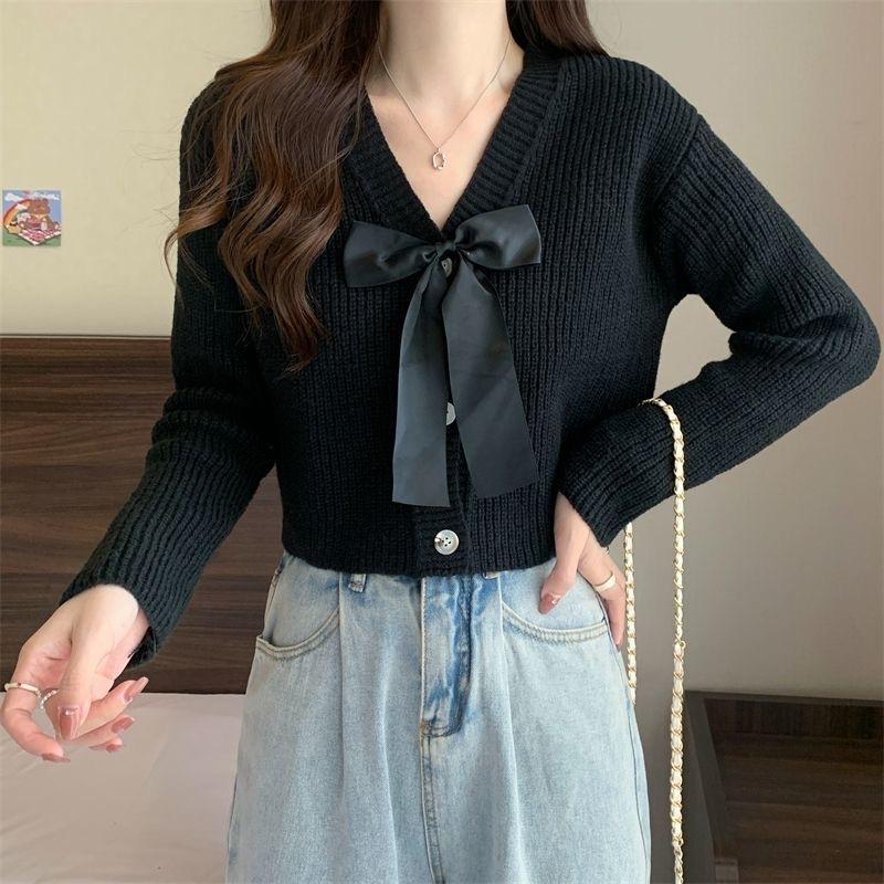 Suéter Cárdigan de Punto Popular de Celebridad de Internet de Manga Larga para Mujer Diseño de Primavera y Otoño Nicho Cuello en V Corto Ajustado Top Exterior
