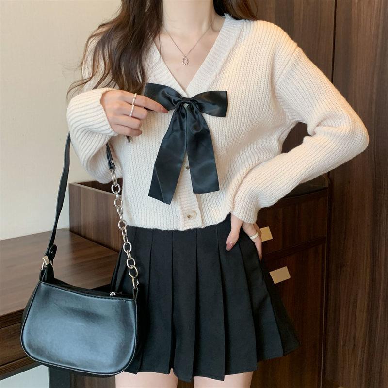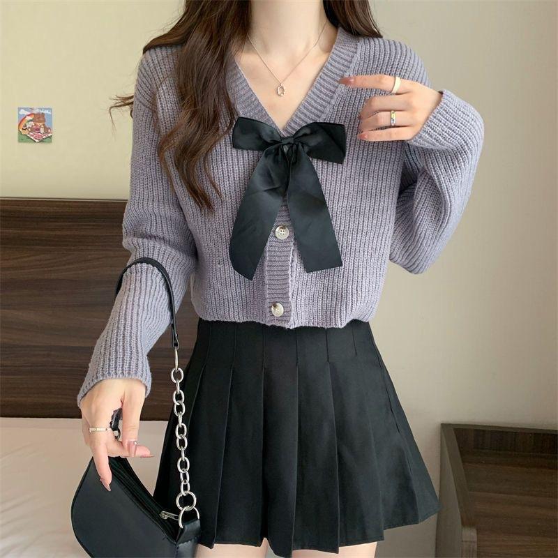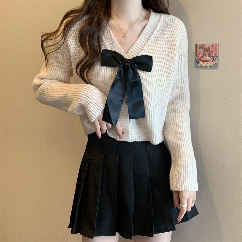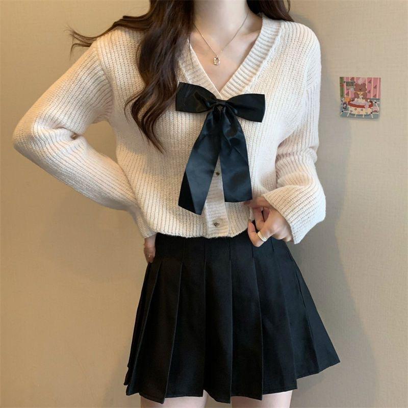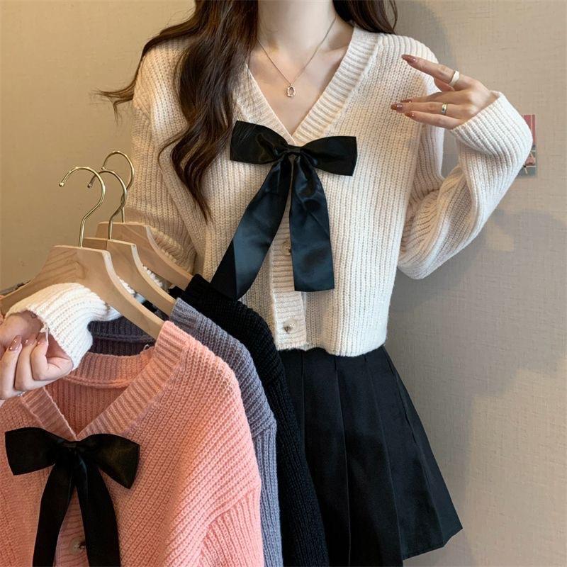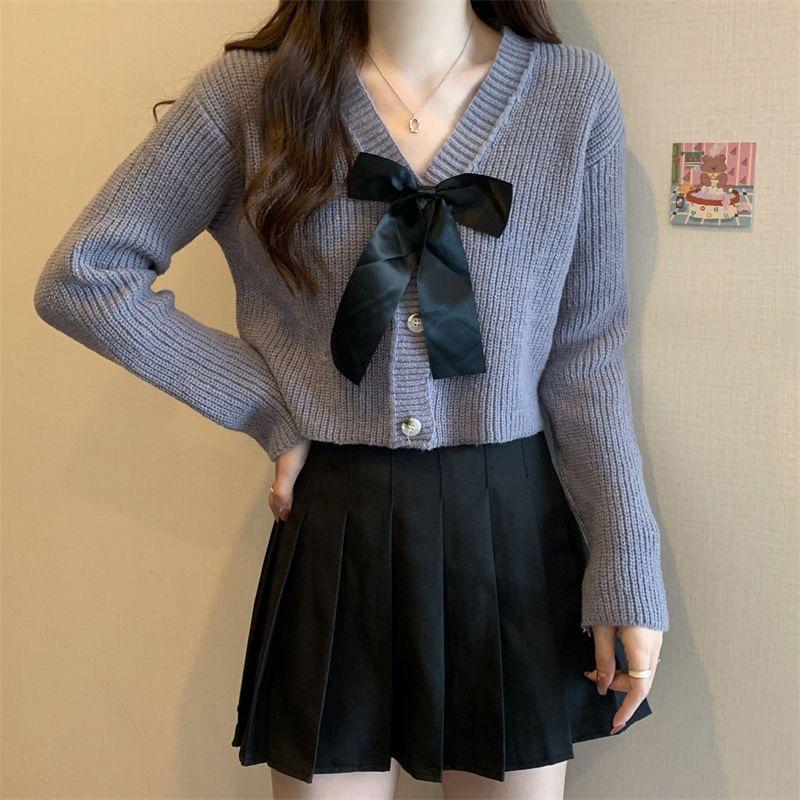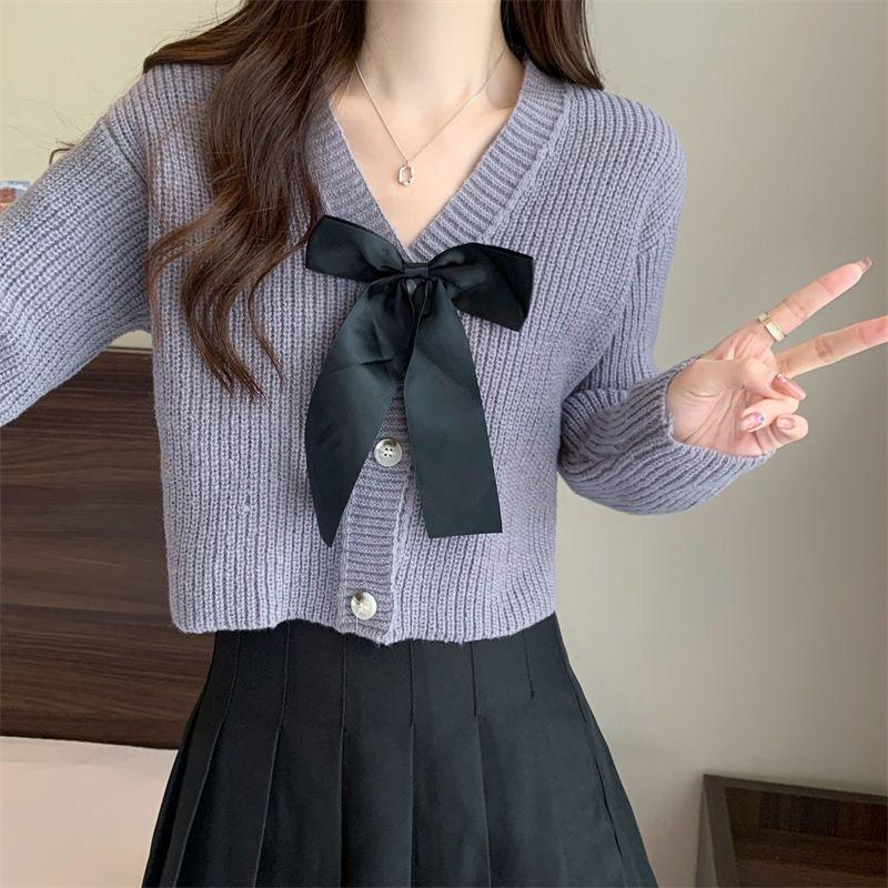 Suéter Cárdigan de Punto Popular de Celebridad de Internet de Manga Larga para Mujer Diseño de Primavera y Otoño Nicho Cuello en V Corto Ajustado Top Exterior