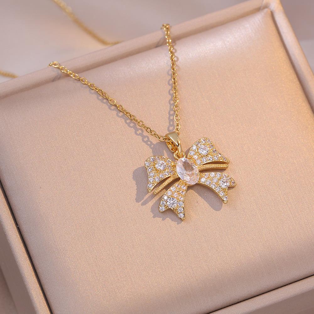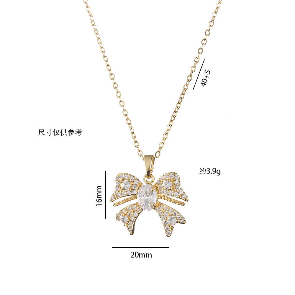 Collar para Mujer, Collar Simple de Lazo con Zirconia, Cadena para Clavícula con Diseño de Nicho, Collar para Mujer de Nuevo Estilo Japonés y Coreano