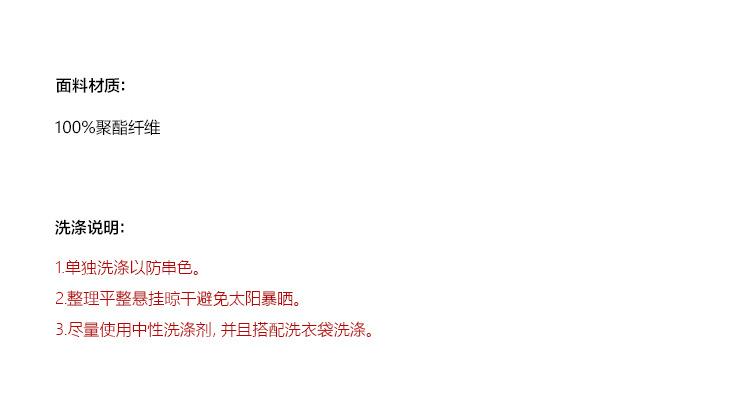 1. Normalmente, la ropa se puede lavar a mano o a máquina. Tanto si es de colores contrastantes como de un solo color, no debe dejarse en remojo durante mucho tiempo. Lávela en cuanto esté en remojo para evitar manchas o decoloración.