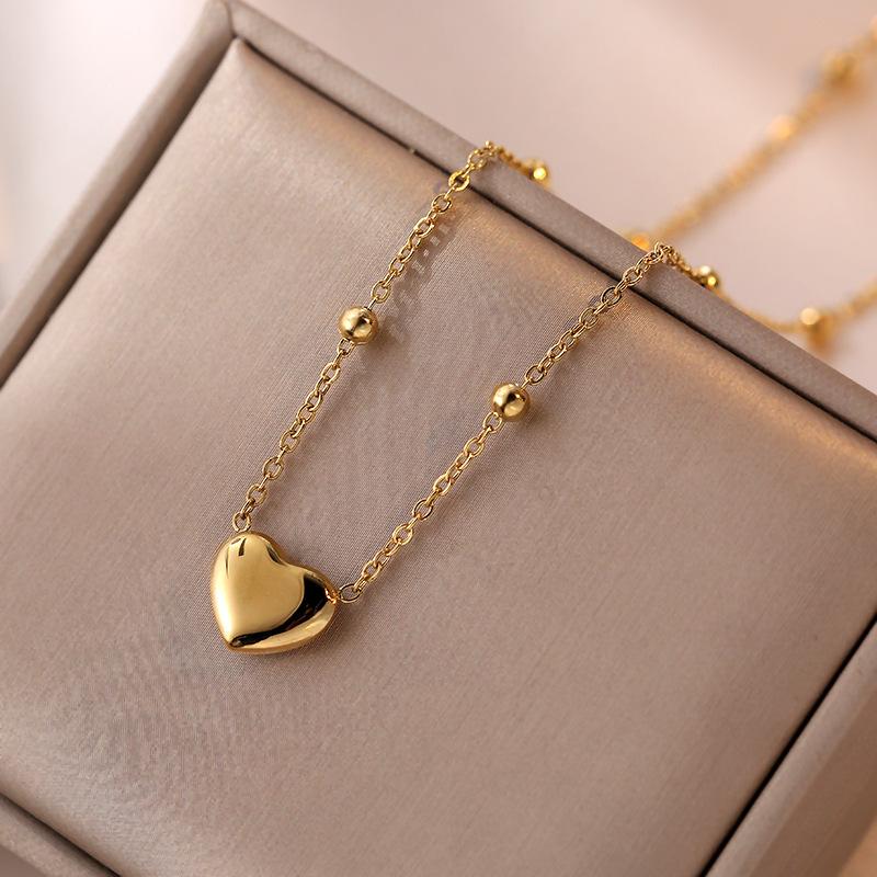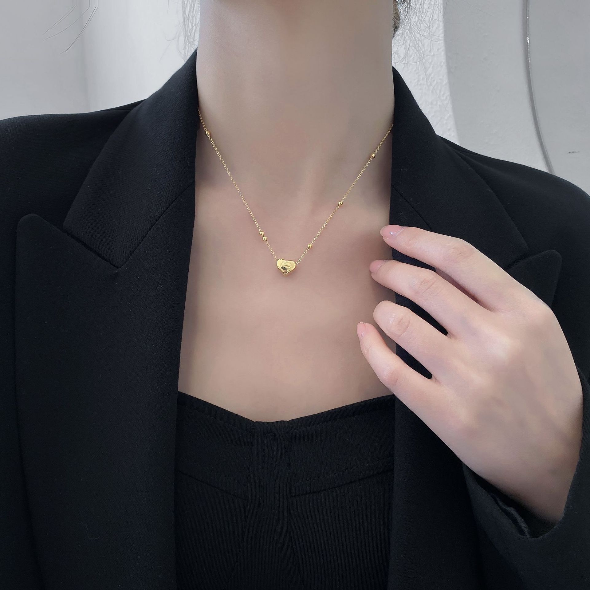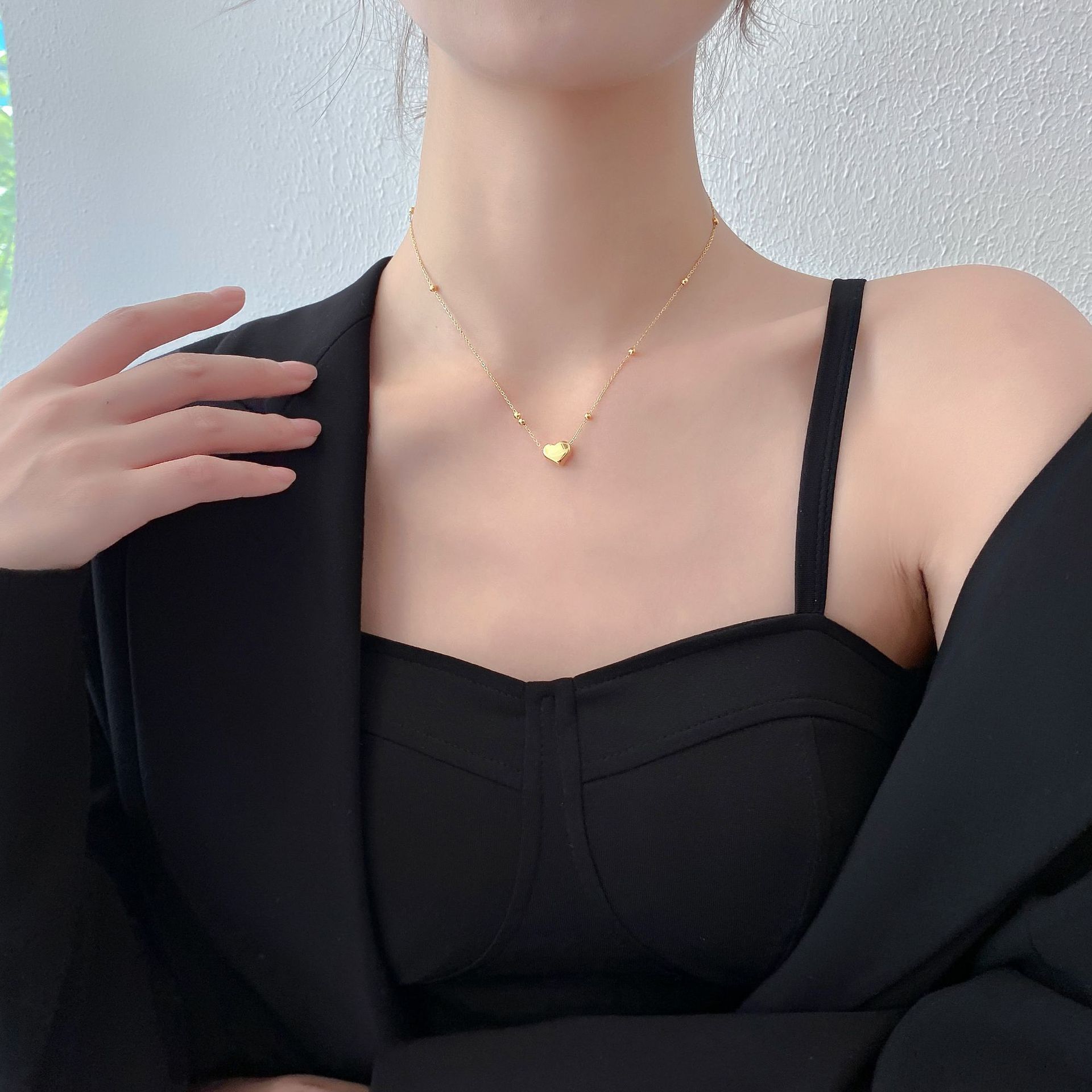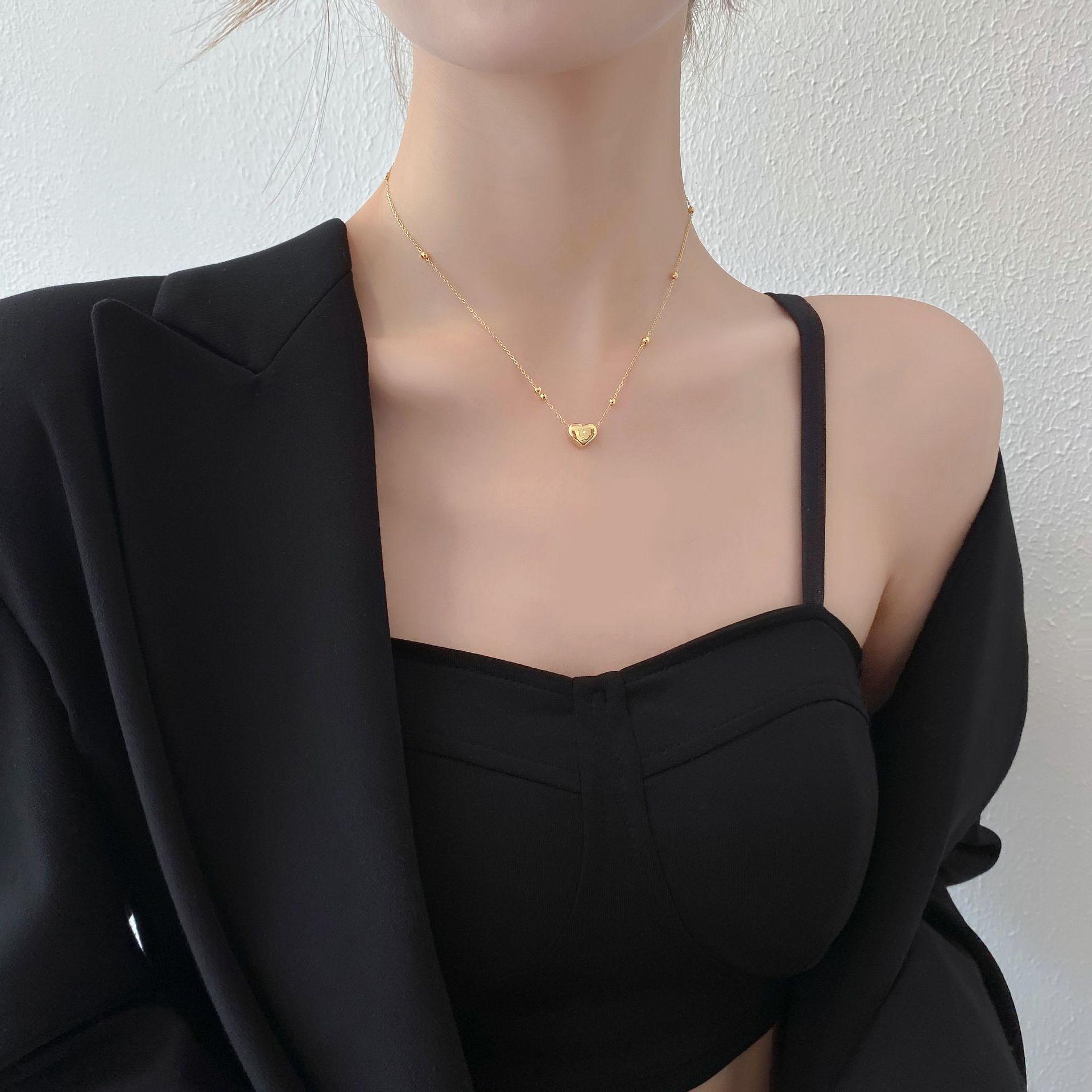 Collar de Acero de Titanio para Mujer Sencillo Corazón Borla Diseño Nicho Cadena Clavícula Oro 18K Nuevo Collar de Cuello Accesorios Colgante