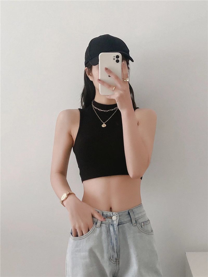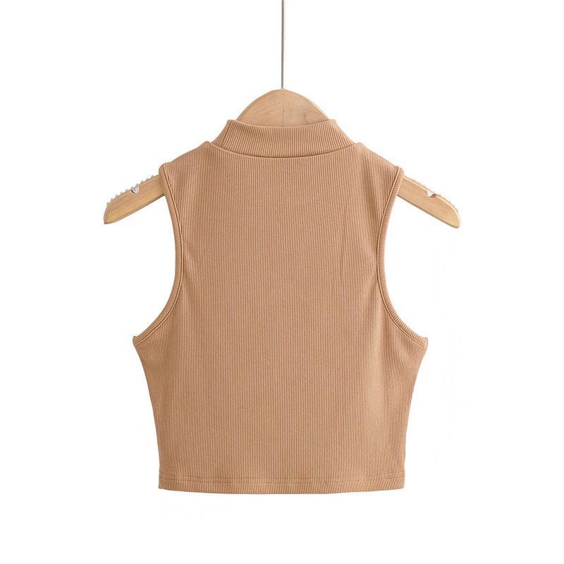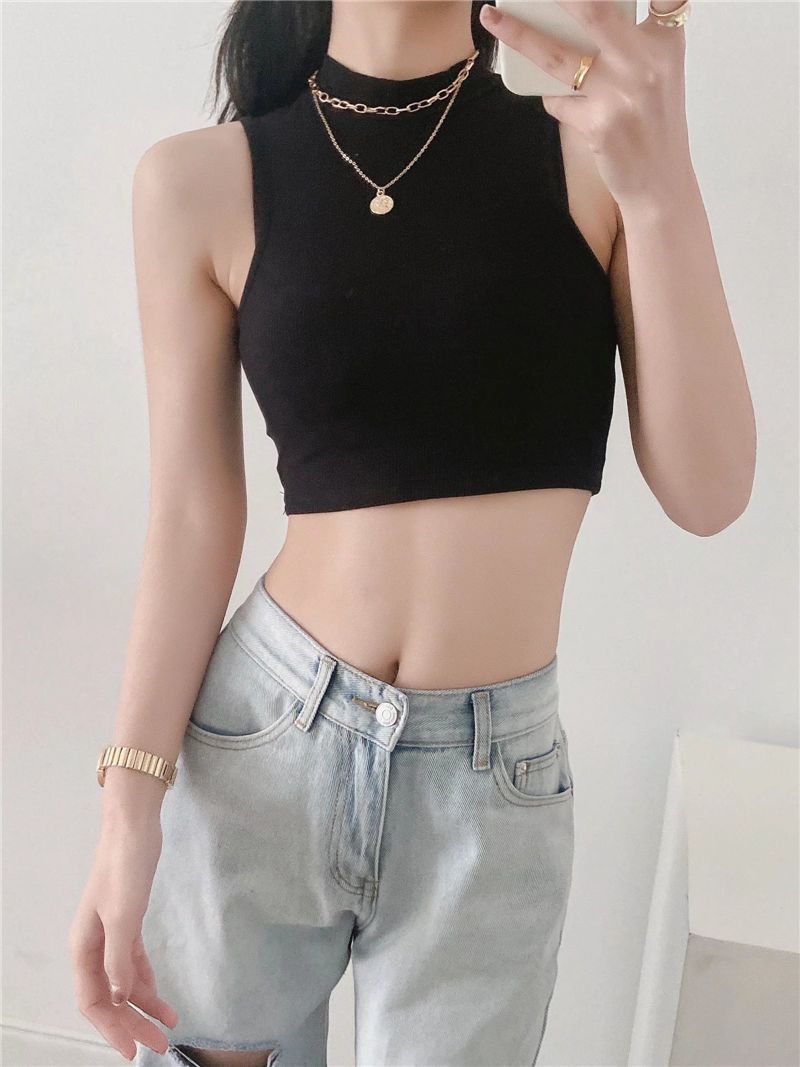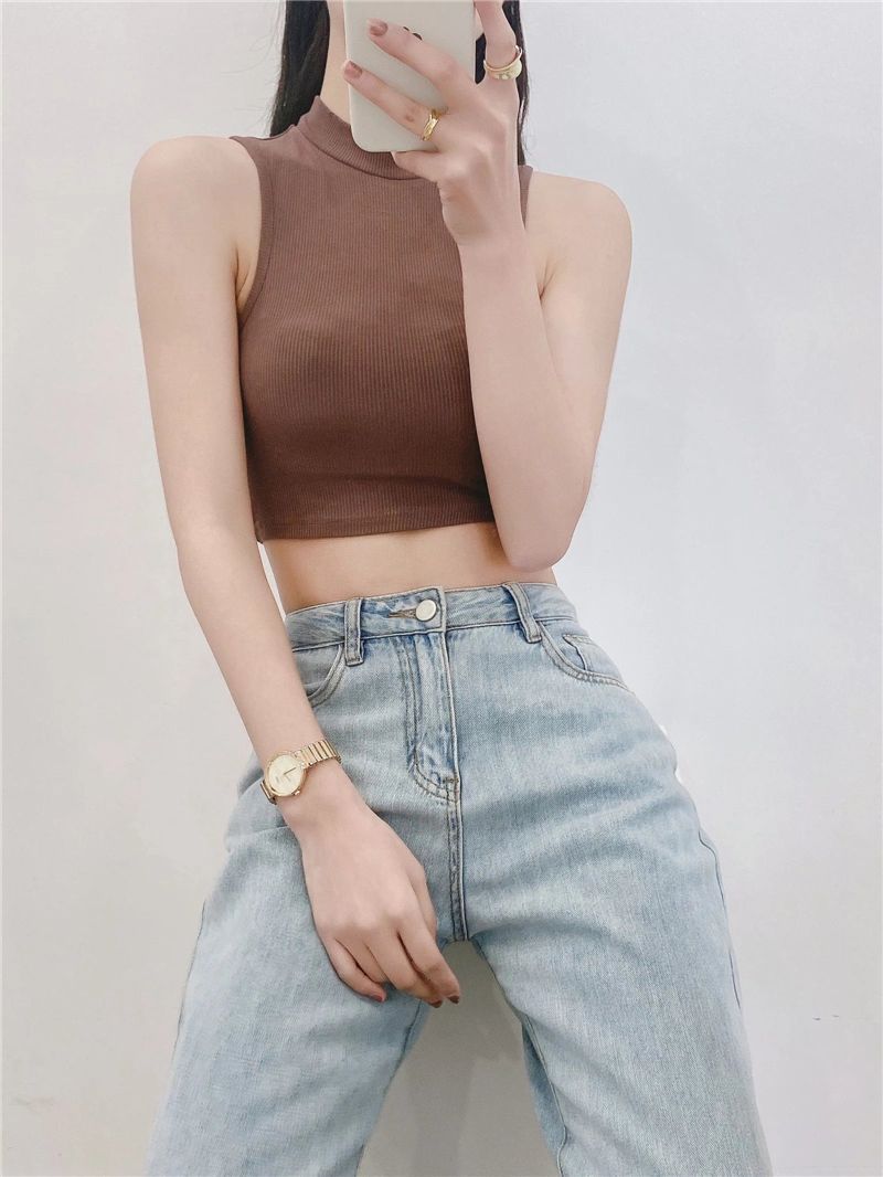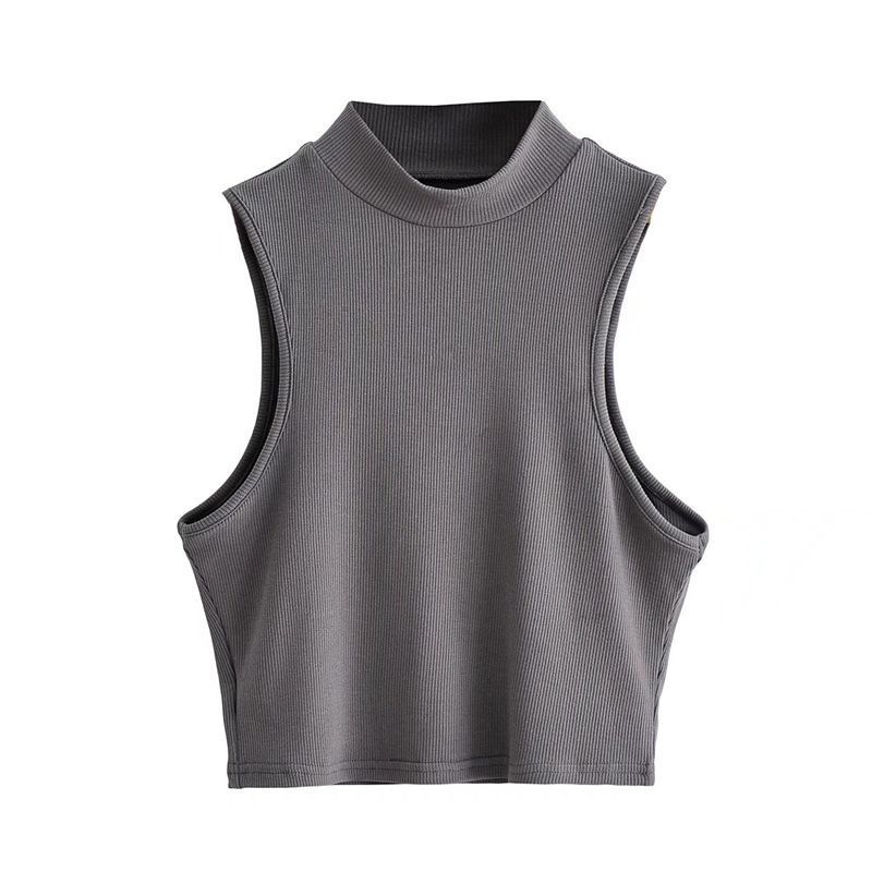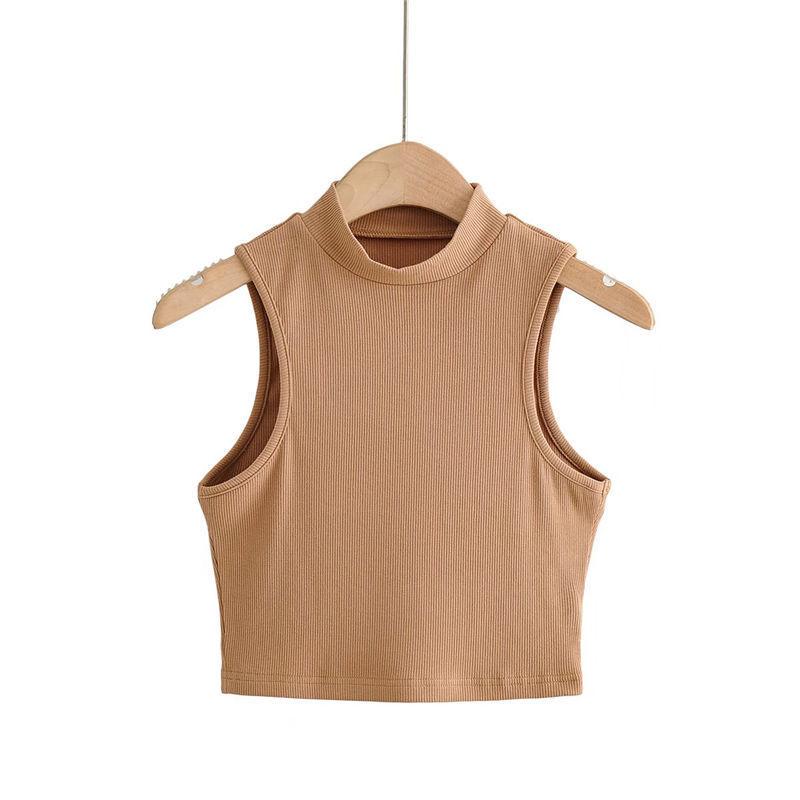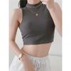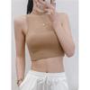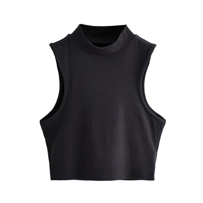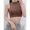 Chaleco de cuello medio alto estilo Spice Girl de estilo europeo y americano para mujer, prenda exterior de verano, sin mangas, con parte superior interior hasta el ombligo, camisa básica