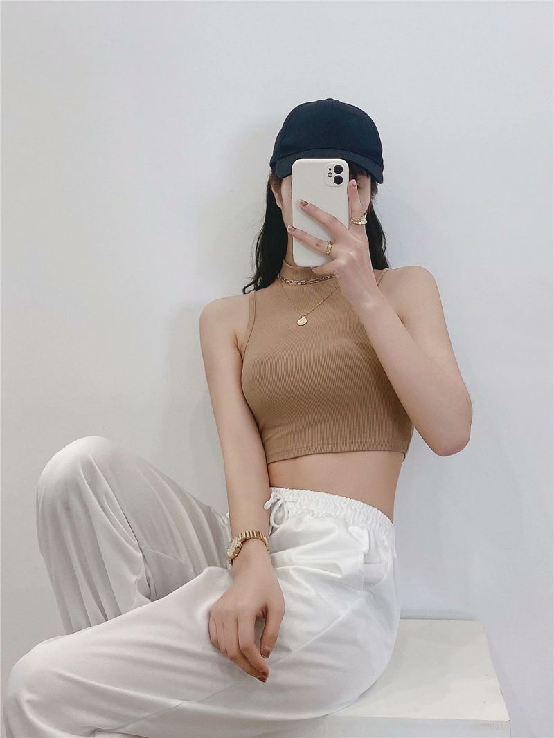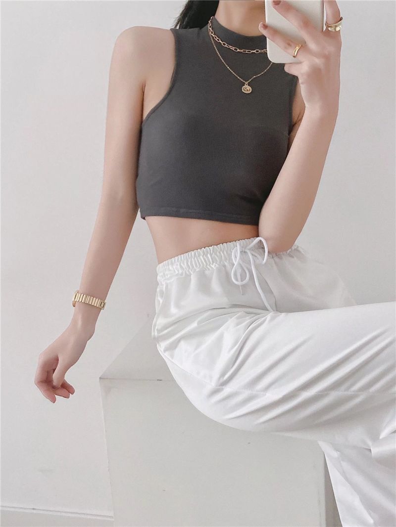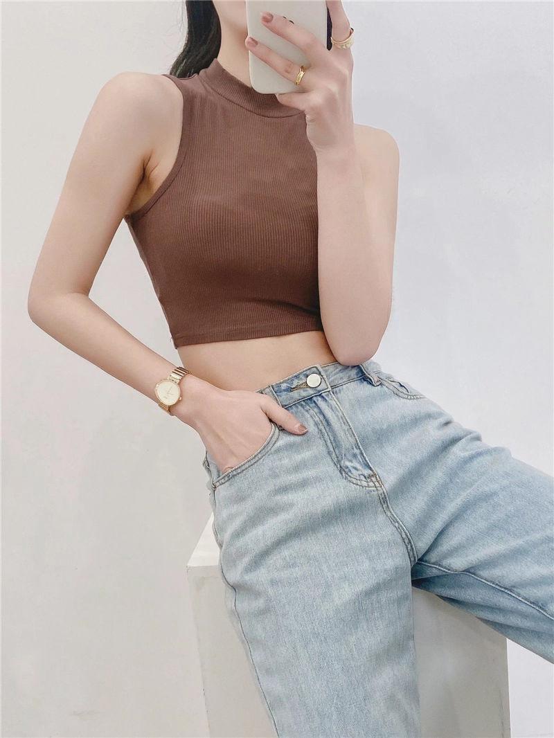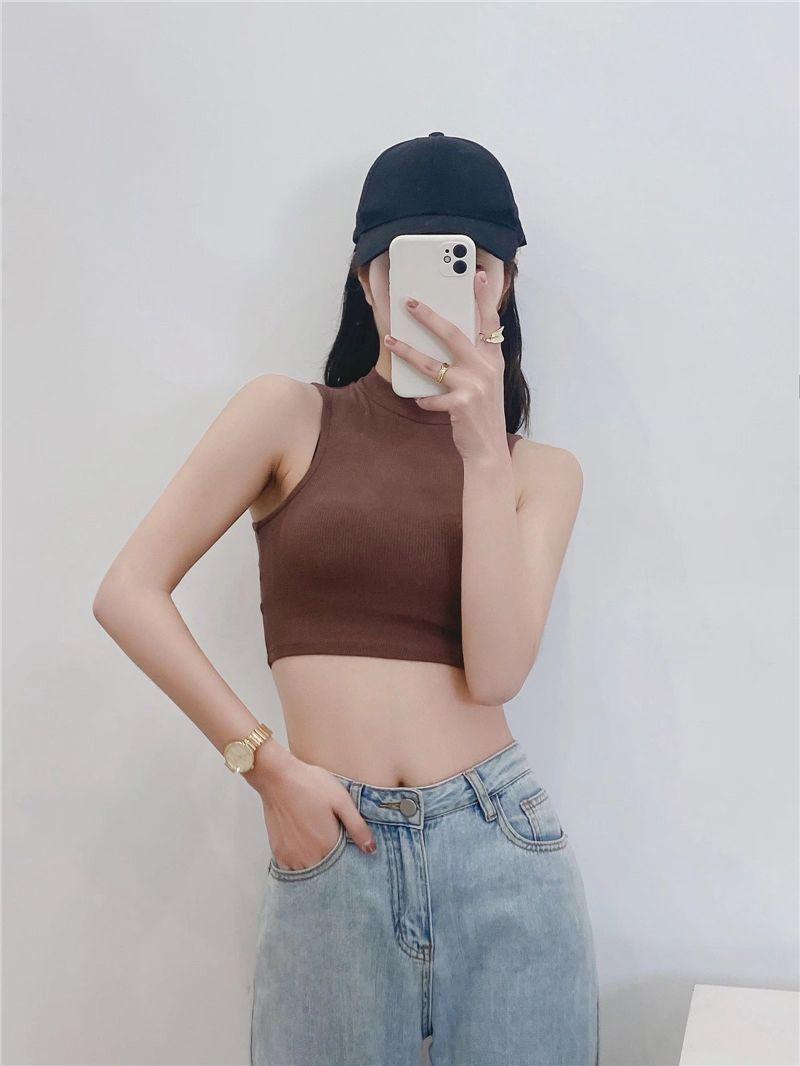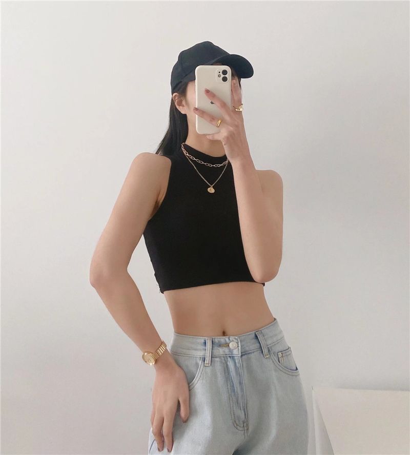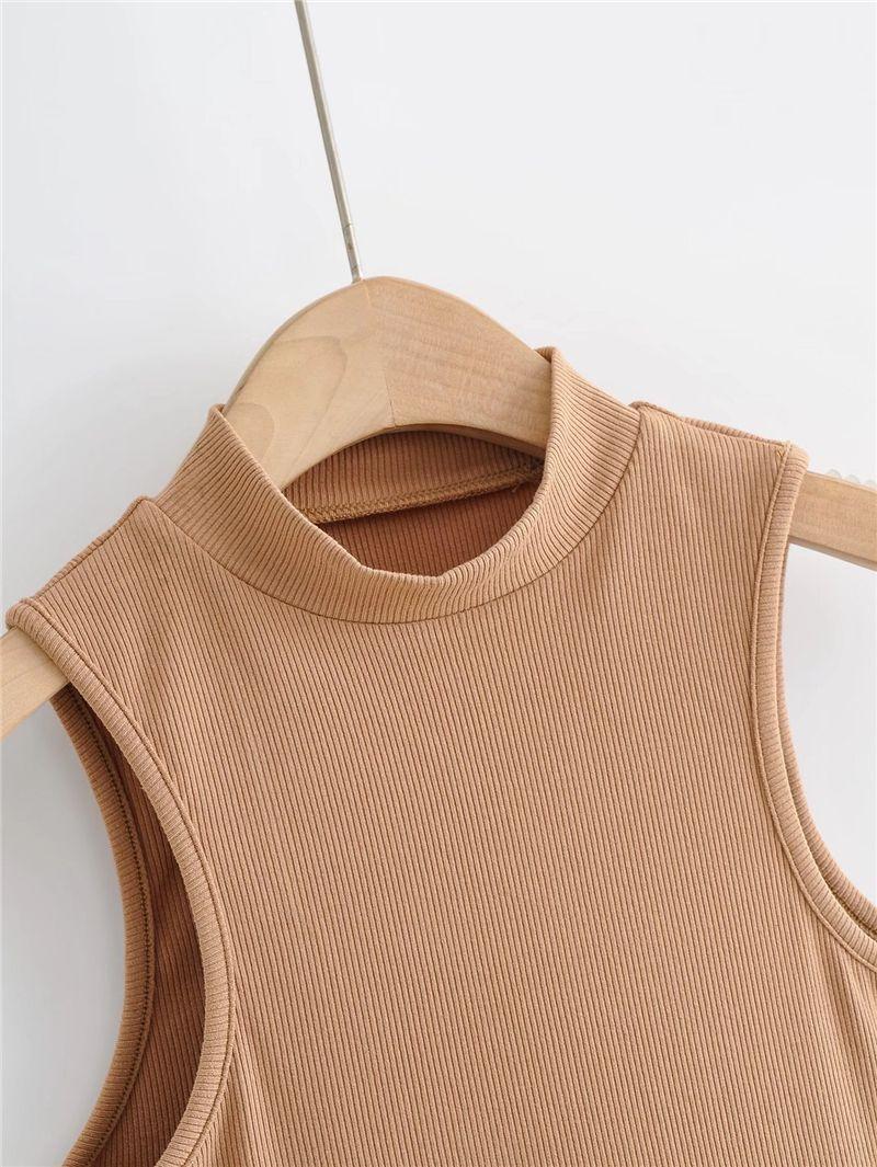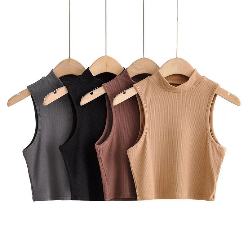 Chaleco de cuello medio alto estilo Spice Girl de estilo europeo y americano para mujer, prenda exterior de verano, sin mangas, con parte superior interior hasta el ombligo, camisa básica