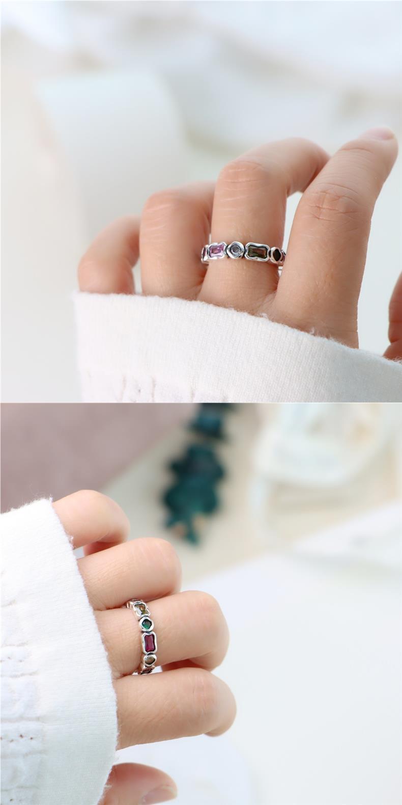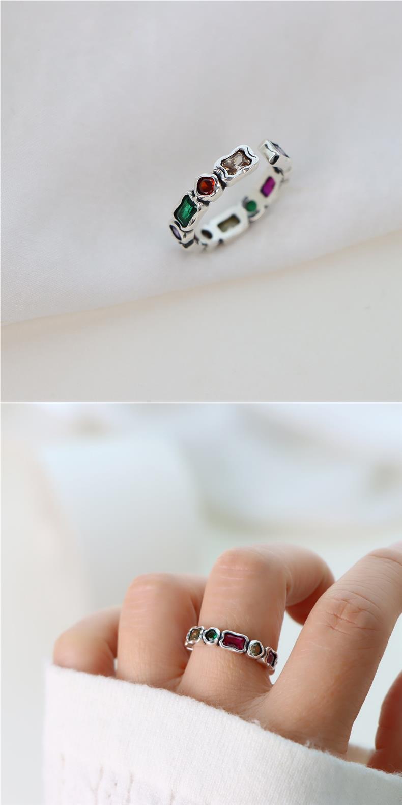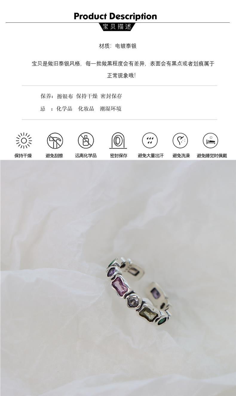 Anillo con microincrustaciones de circonita de color geométrico para mujer, estilo francés, retro, ligero, de lujo, elegante, de plata S925, anillo abierto para dedo, anillo de comida, moda.