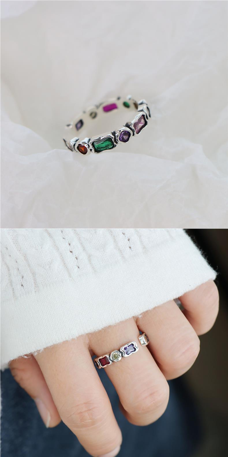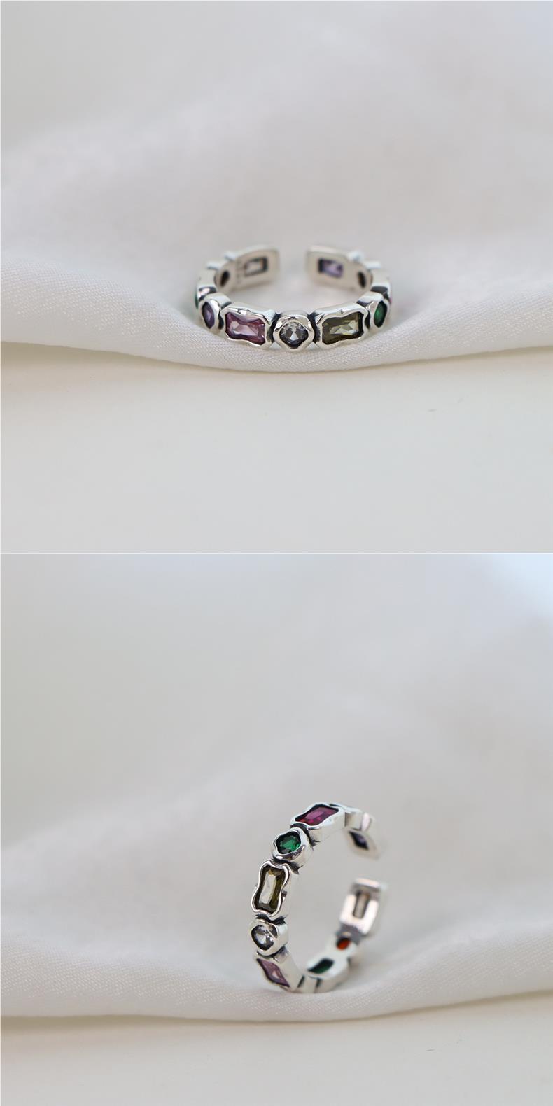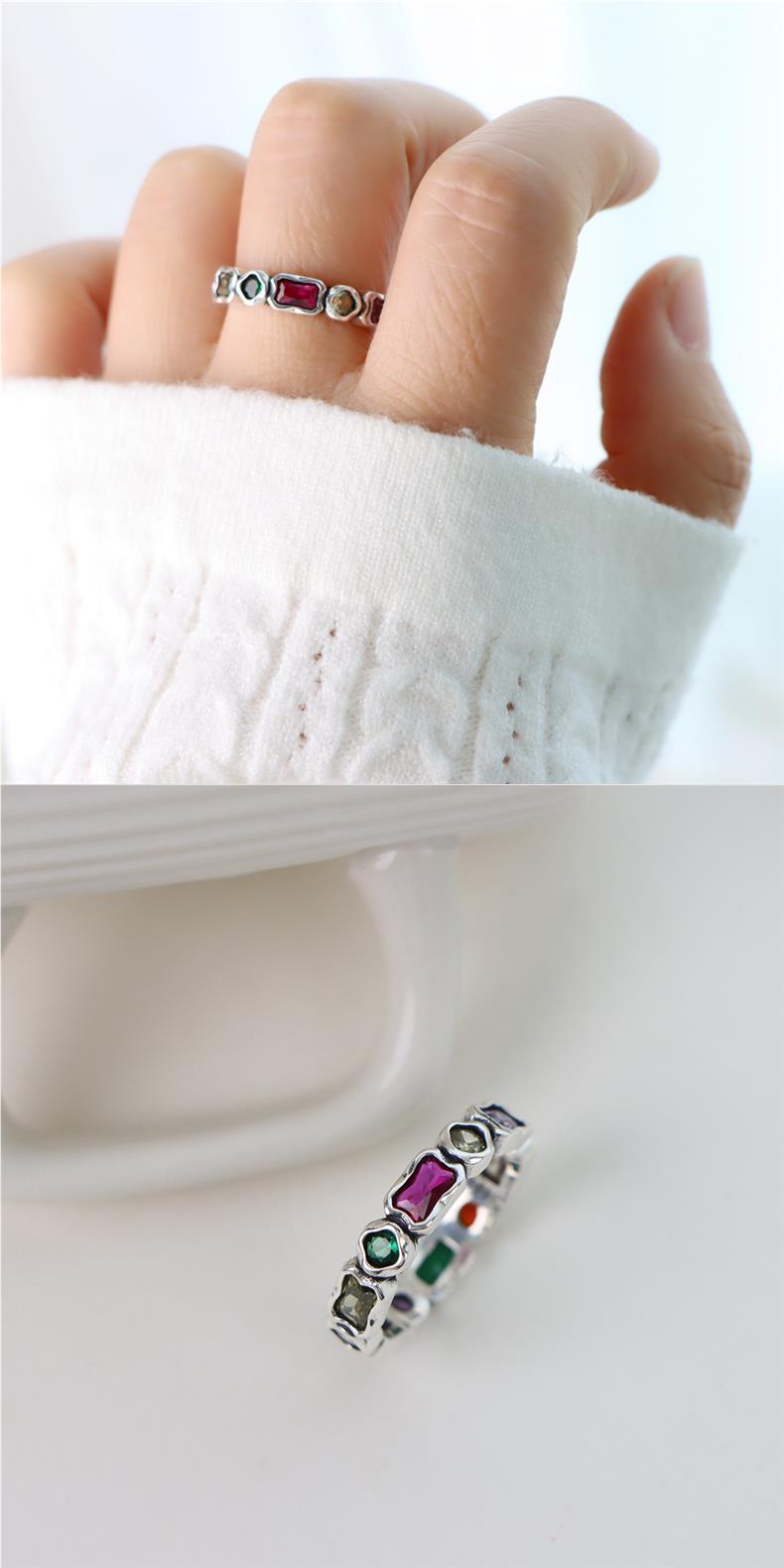 Anillo con microincrustaciones de circonita de color geométrico para mujer, estilo francés, retro, ligero, de lujo, elegante, de plata S925, anillo abierto para dedo, anillo de comida, moda.