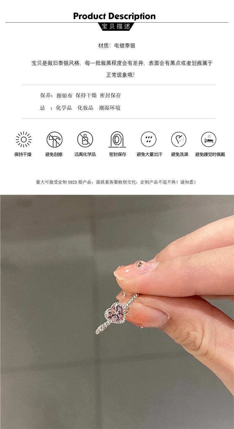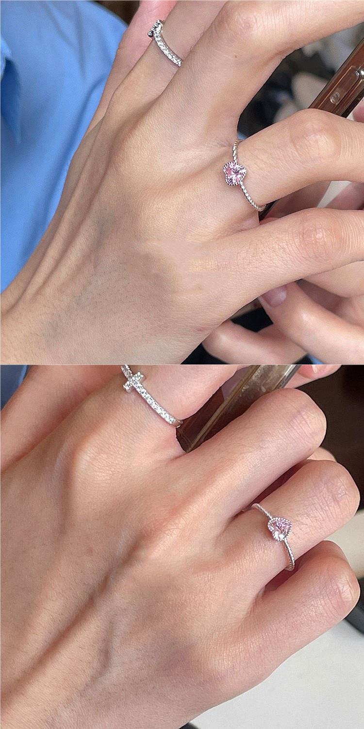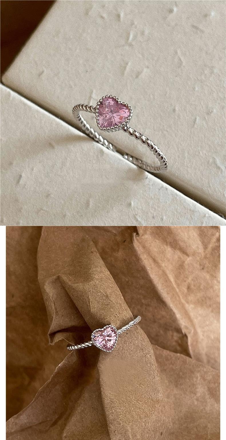 Anillo de circonita rosa exquisito para mujer, diseño geométrico de amor, elegante, abierto, combinable, personalizado, creativo, para celebrar en Internet.