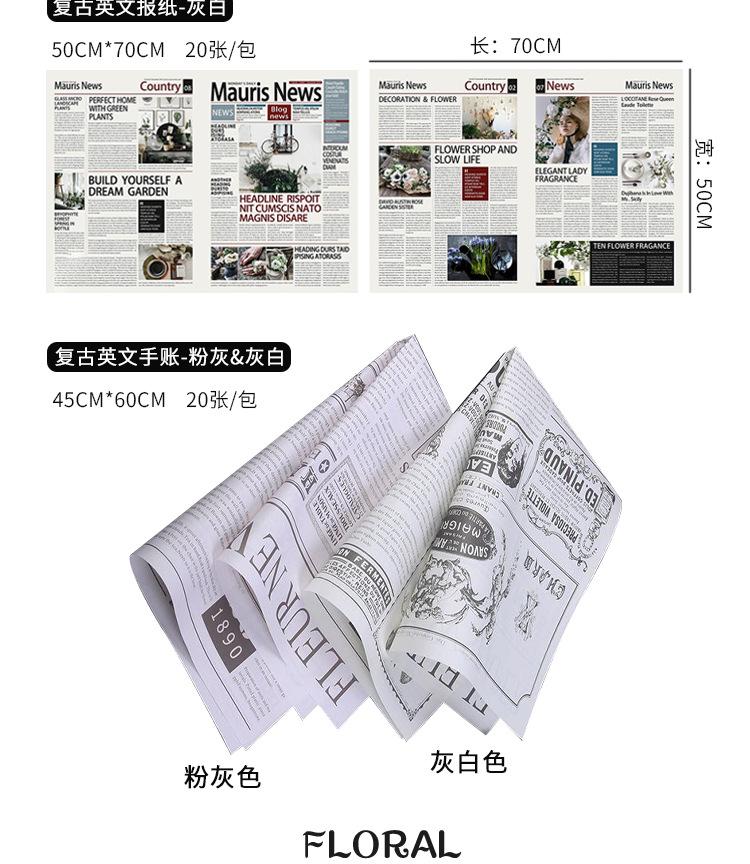 Papel de regalo para carteles de periódicos ingleses, papel kraft, papel de regalo vintage para flores, papel floral, papel para ramos de flores de floristería.