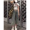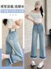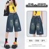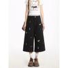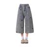 Talla grande Nostálgico Azul Cachorro Bordado Shorts de mezclilla para mujer Primavera y Verano Cintura alta Rectos Adelgazantes Pierna ancha Pantalones medianos de siete puntos