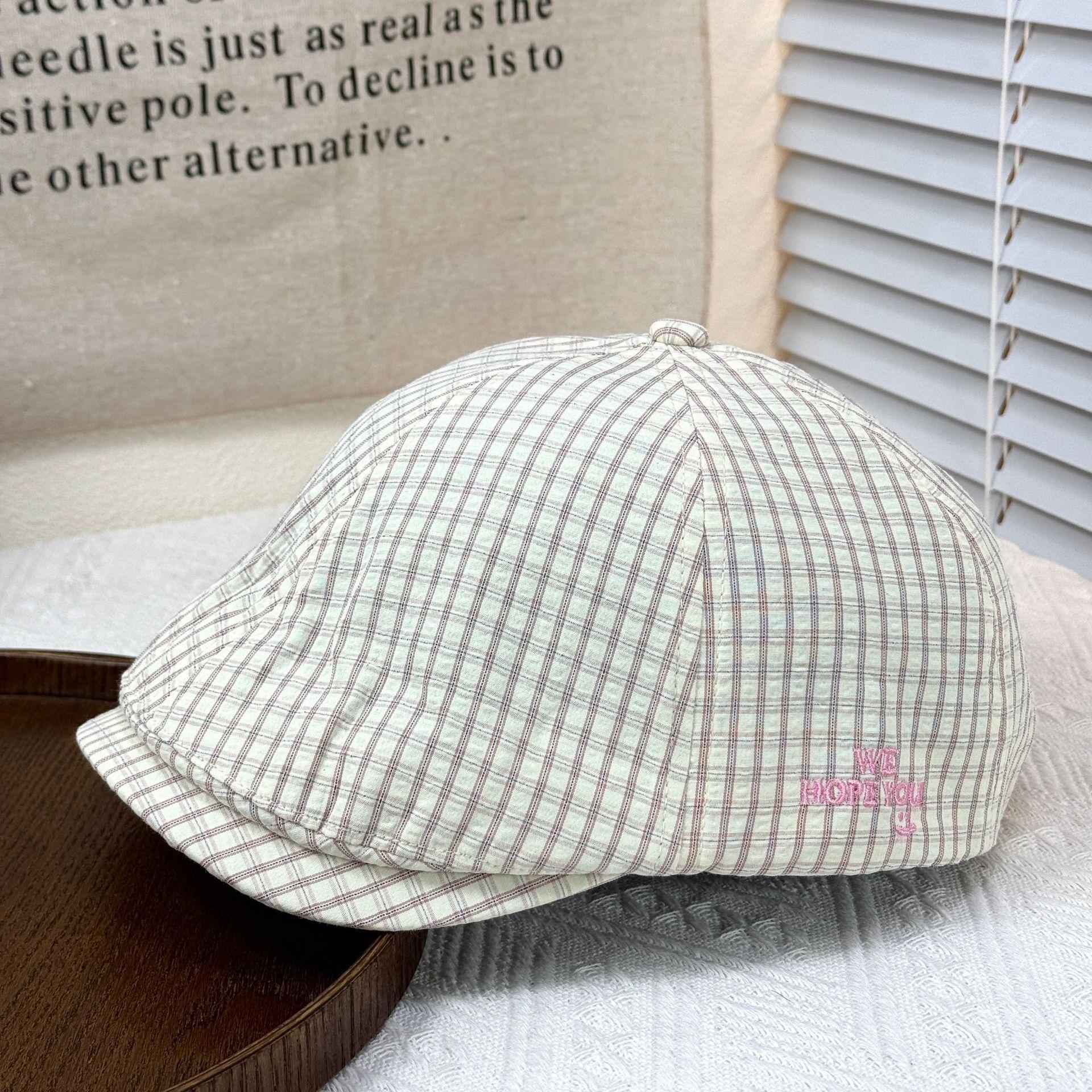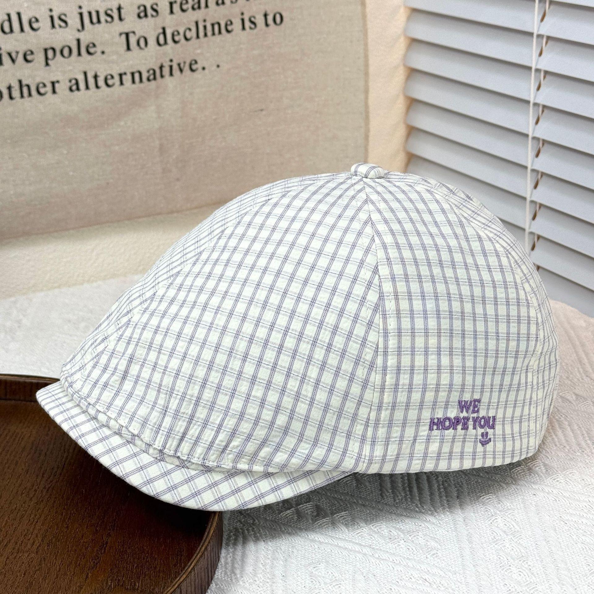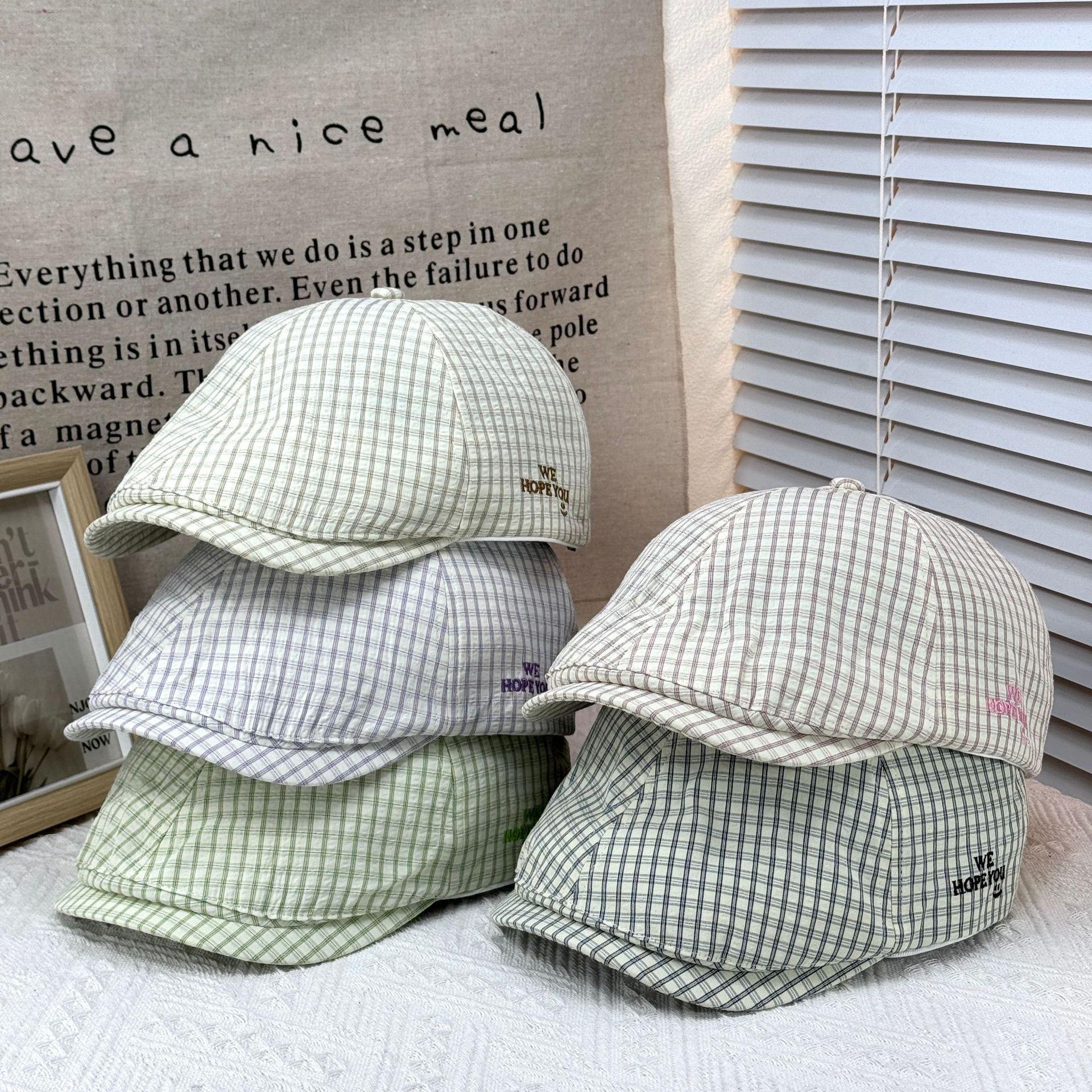 2025 Sombrero Nuevo Gorra de Béisbol con Letra Bordada Boina de Cuadros para Mujer Casual Versátil Adelgazante de Rostro Gorra Delantera Moderna