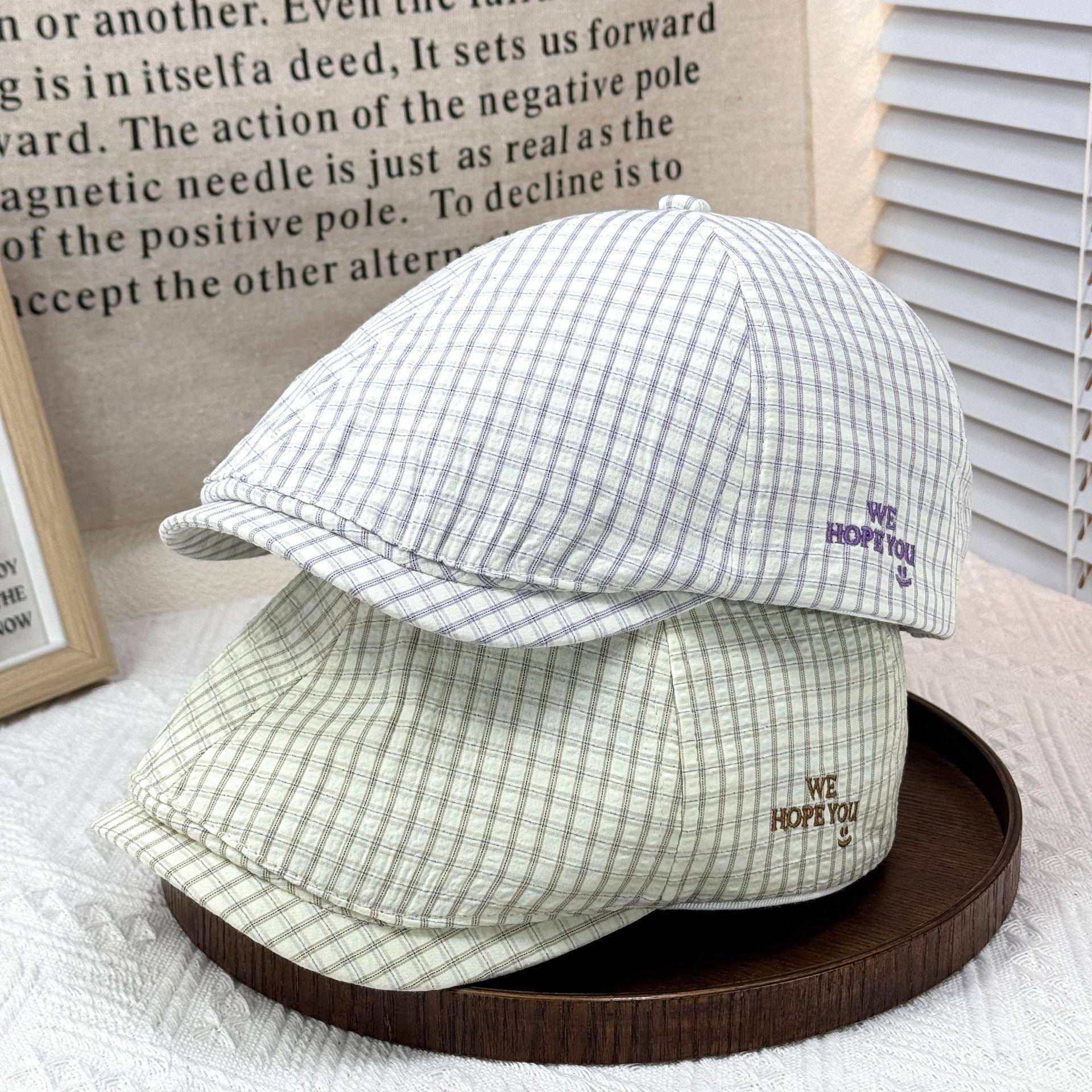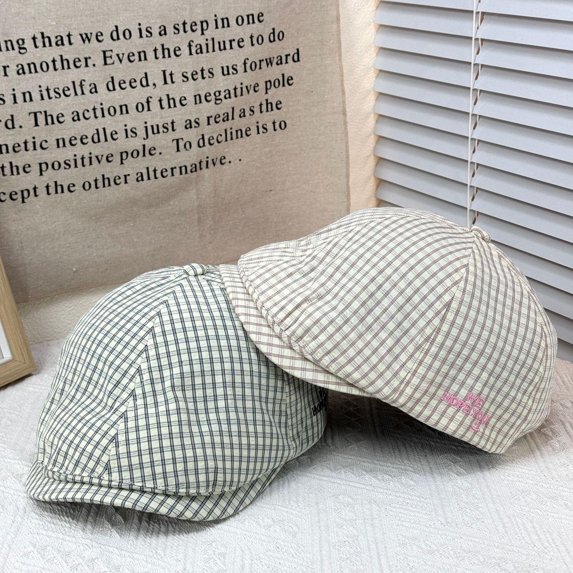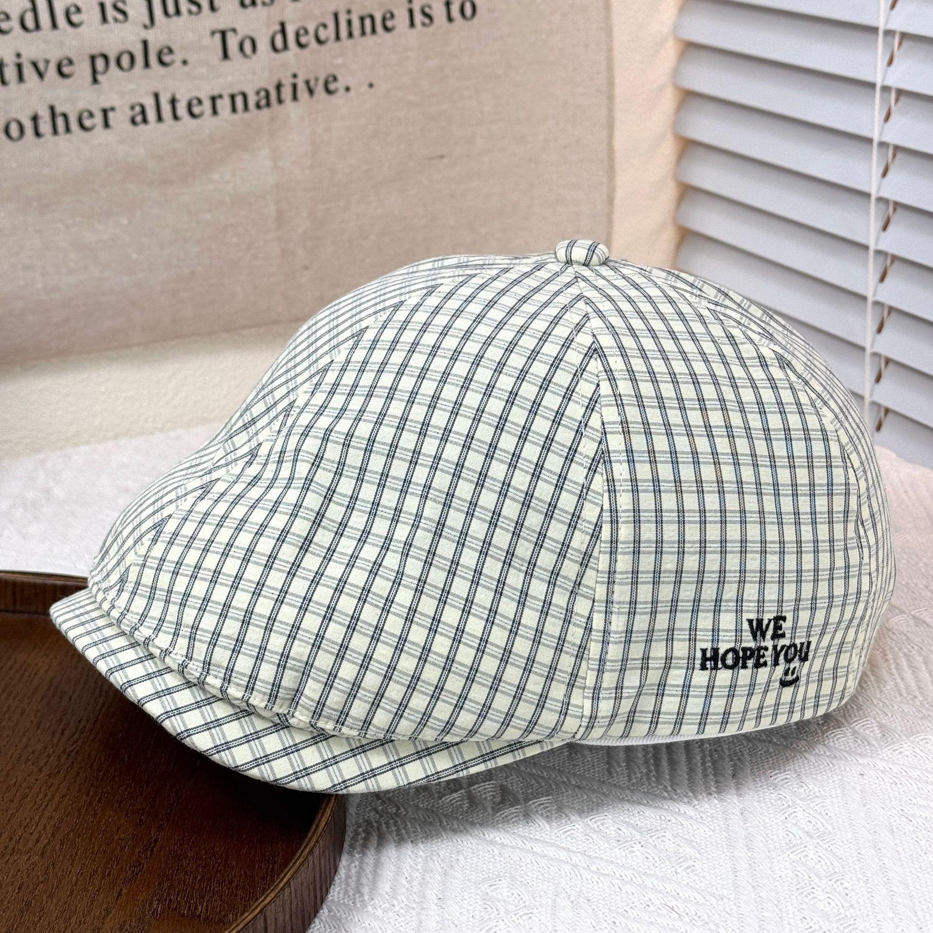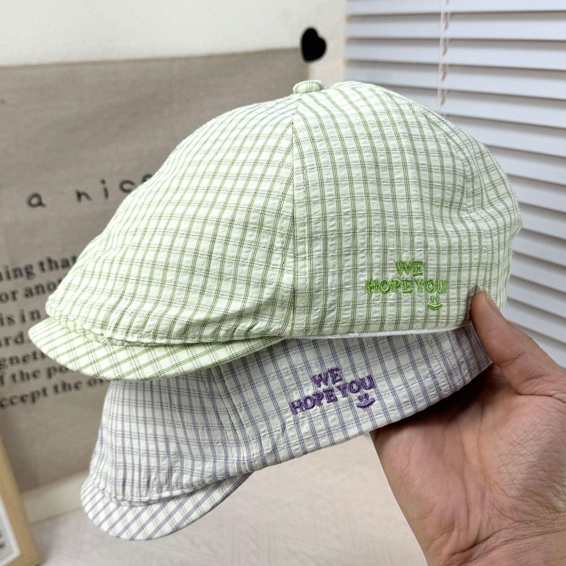 2025 Sombrero Nuevo Gorra de Béisbol con Letra Bordada Boina de Cuadros para Mujer Casual Versátil Adelgazante de Rostro Gorra Delantera Moderna