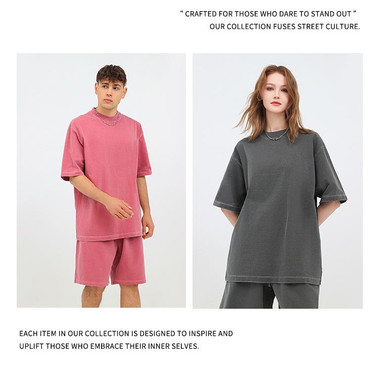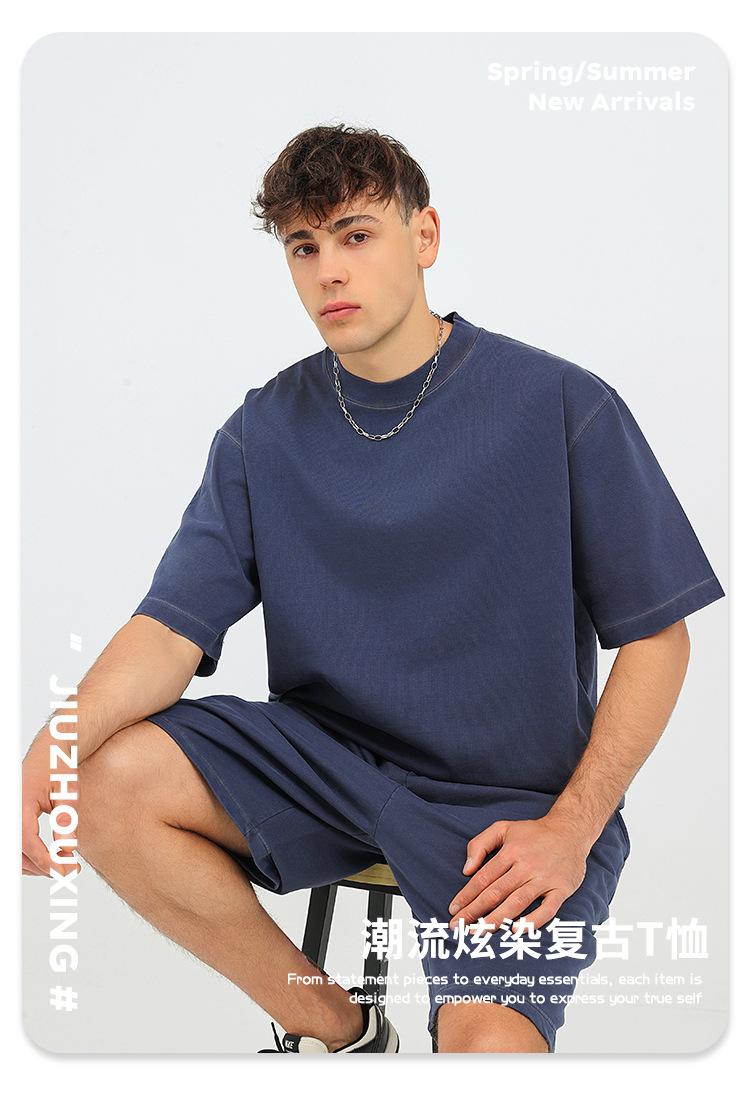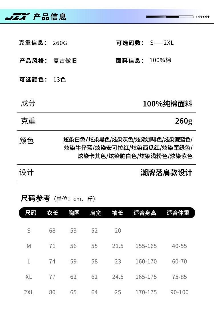 Camiseta de cuello redondo de 260 g con diseño de personalidad independiente y logotipo bordado, de la marca Tide, a juego con el color de la dopamina, manga corta personalizada.
