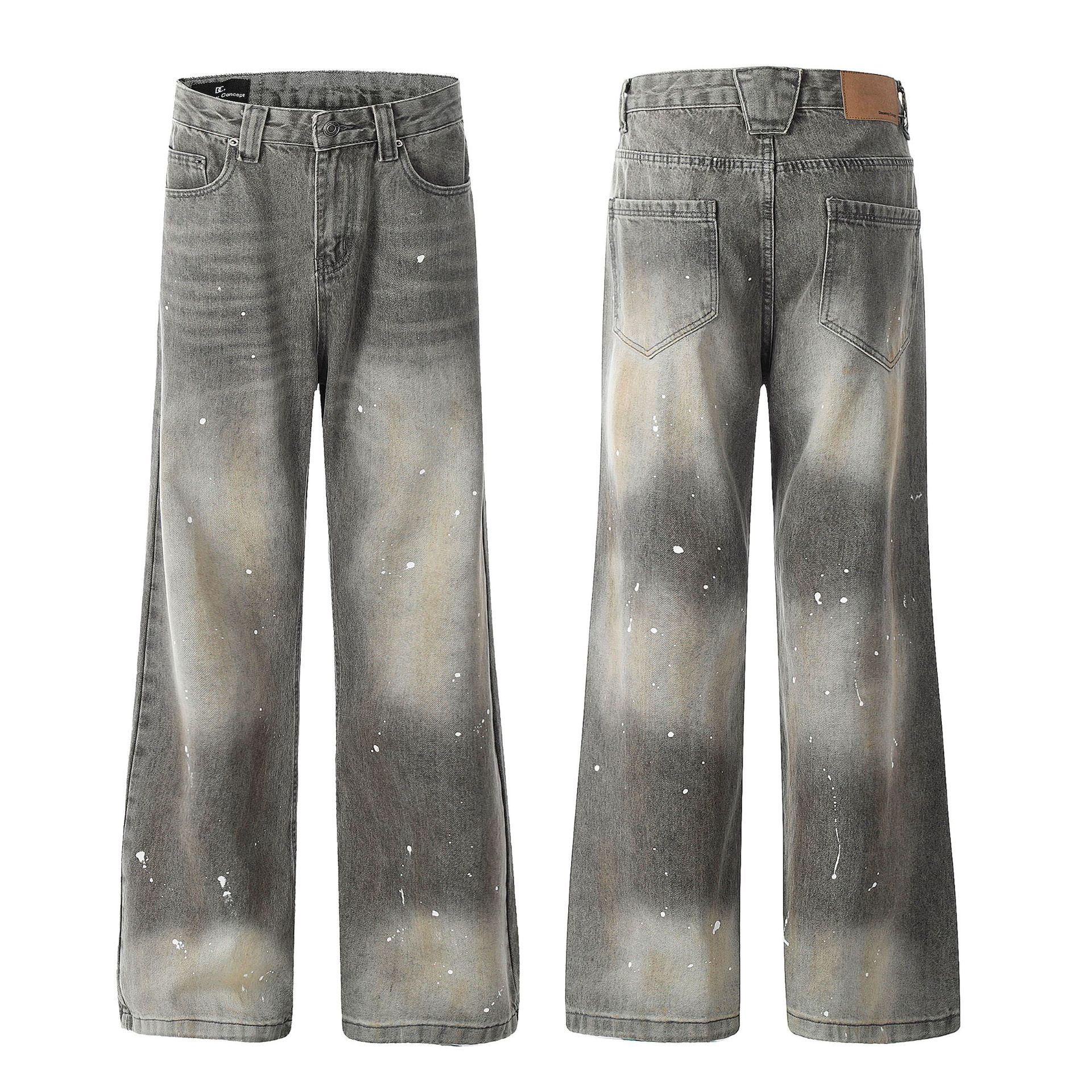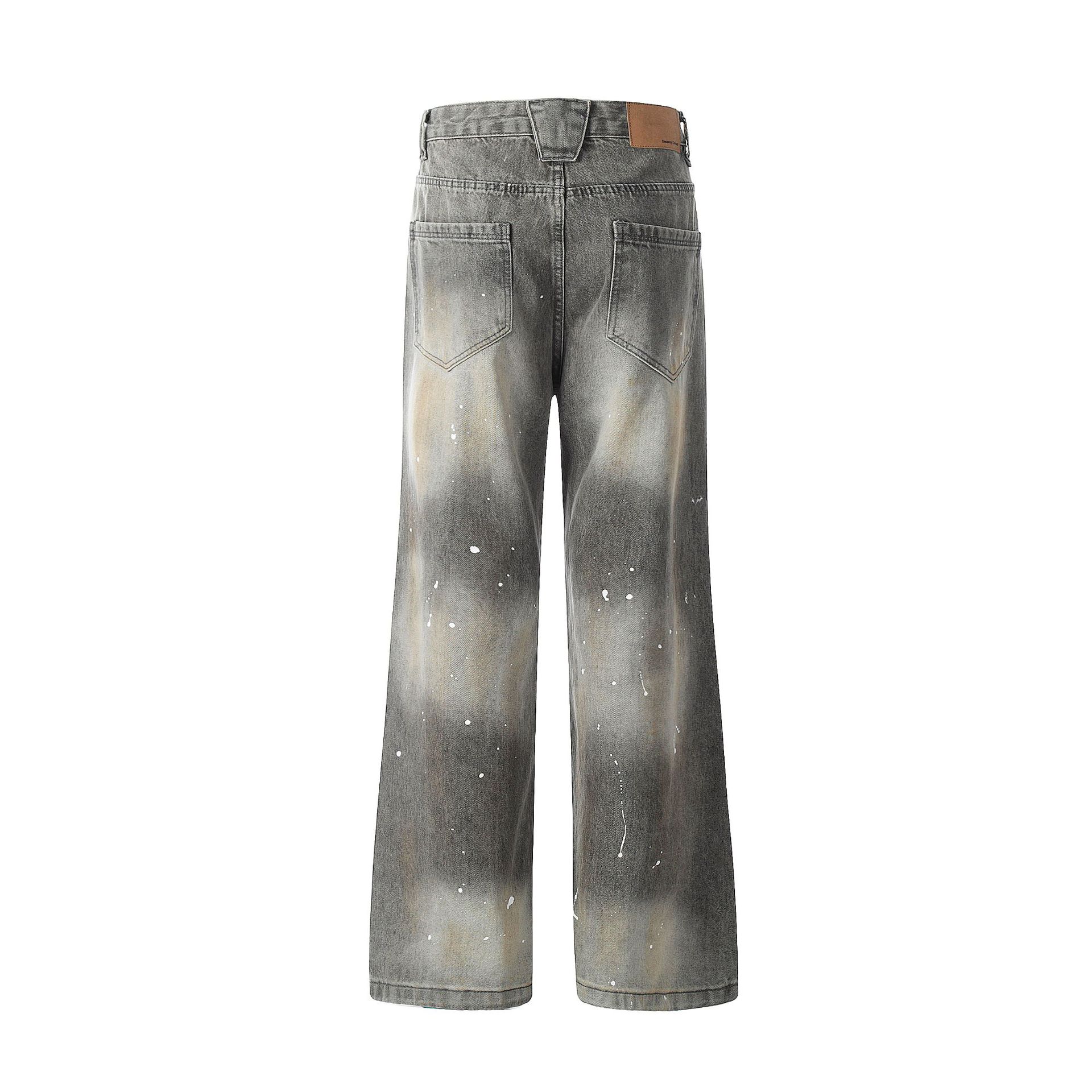 Jiayiiku Marca de Moda 2025 Otoño Americano Retro Inyección de Tinta Lavado Jeans Pierna Recta Pantalones Personalizados Cleanfit