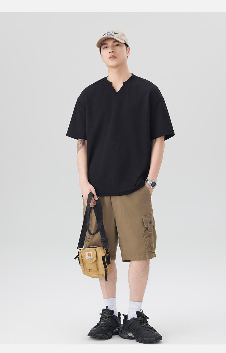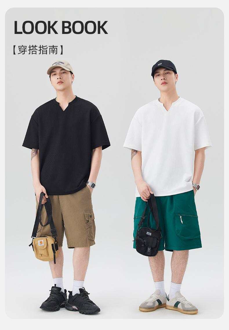Camiseta de manga corta para hombre, venta al por mayor, de verano, nueva, de talla grande, holgada, de manga corta, con cuello en V, para hombre