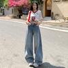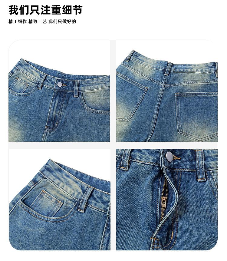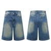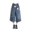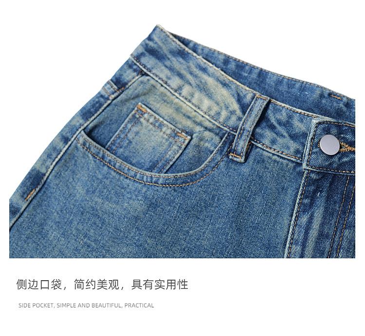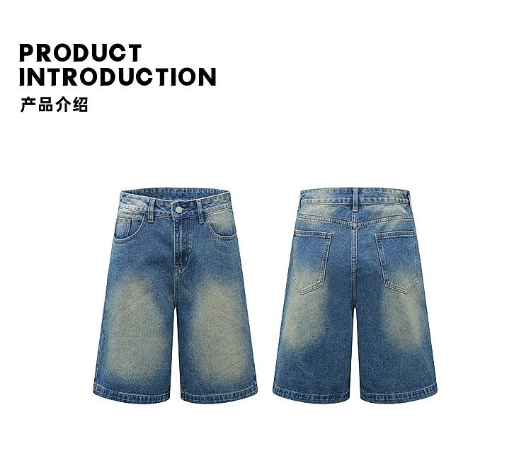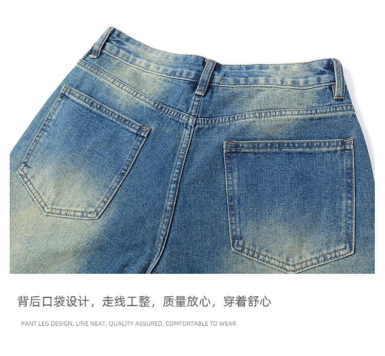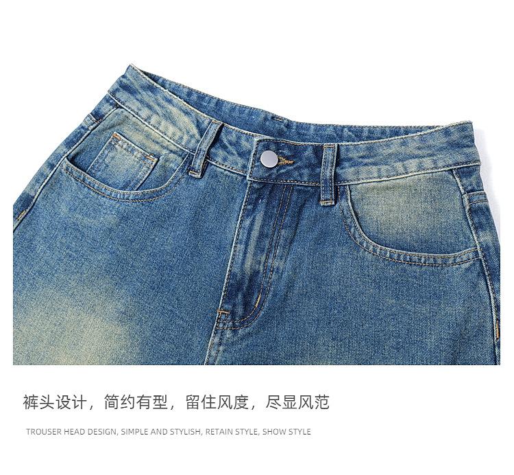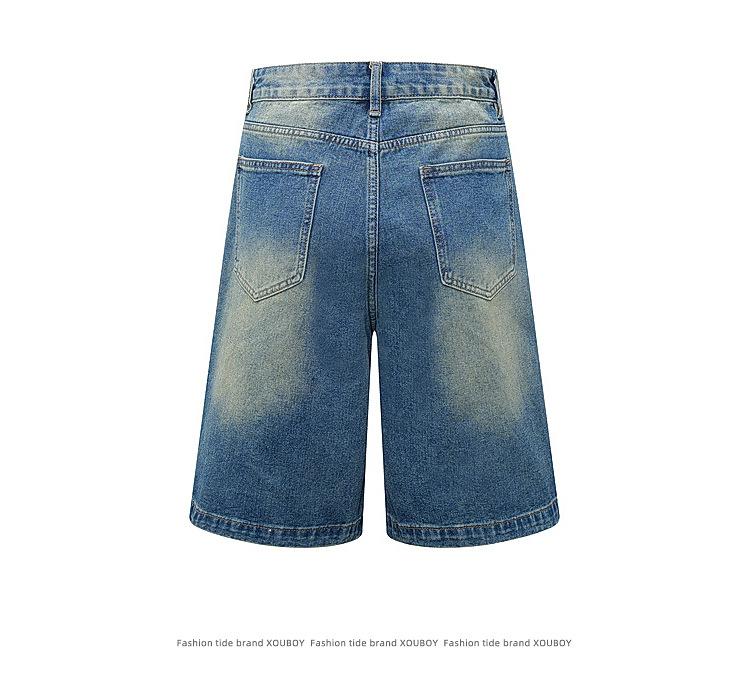 2025 Nuevo Jeans Retro Azules Lavados Desgastados Personalizados Sueltos Pantalones Cinco Puntos Americanos Rectos Denim Pantalones Medios Verano