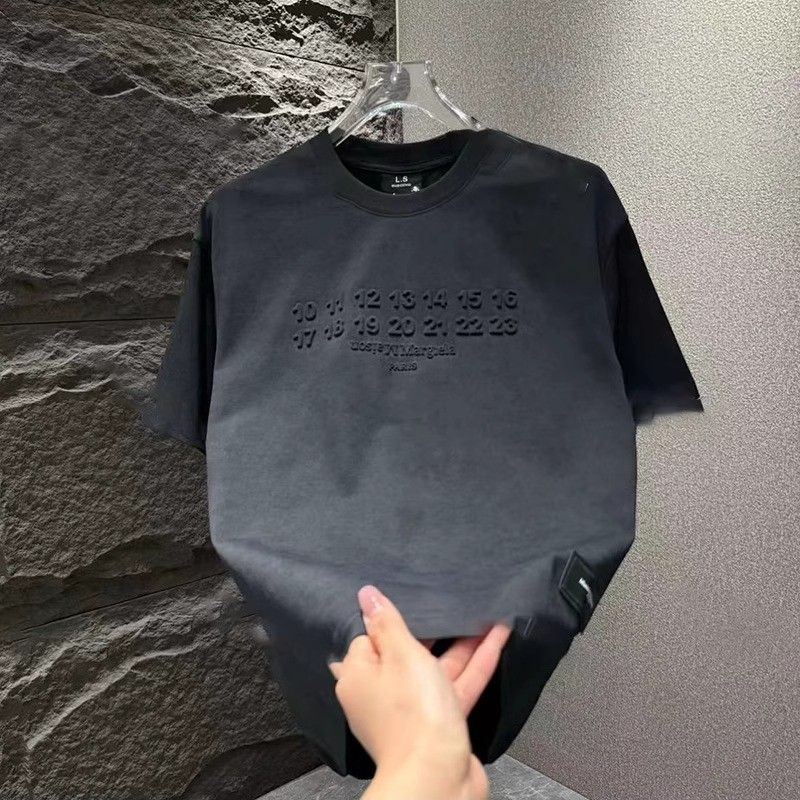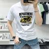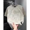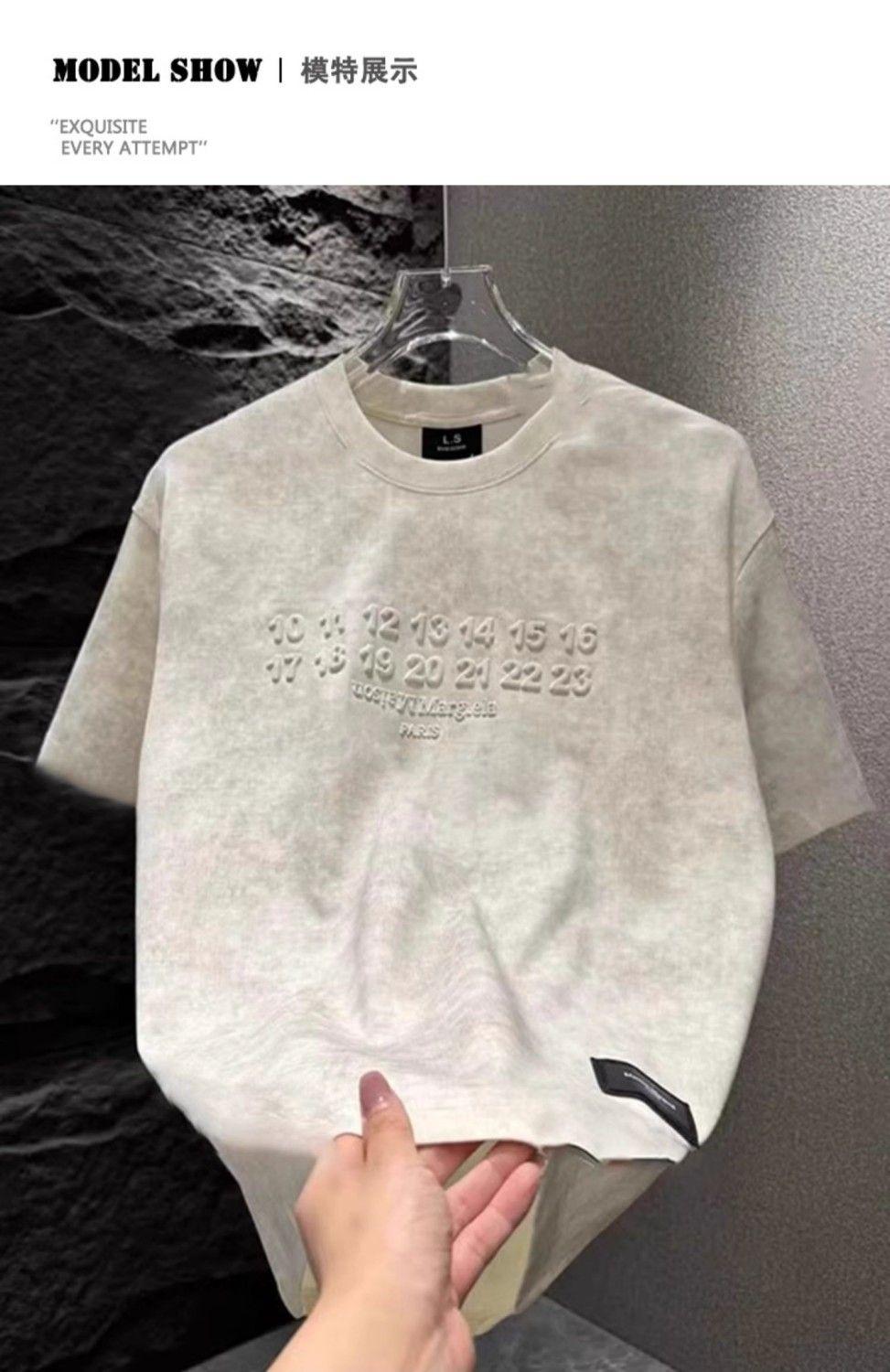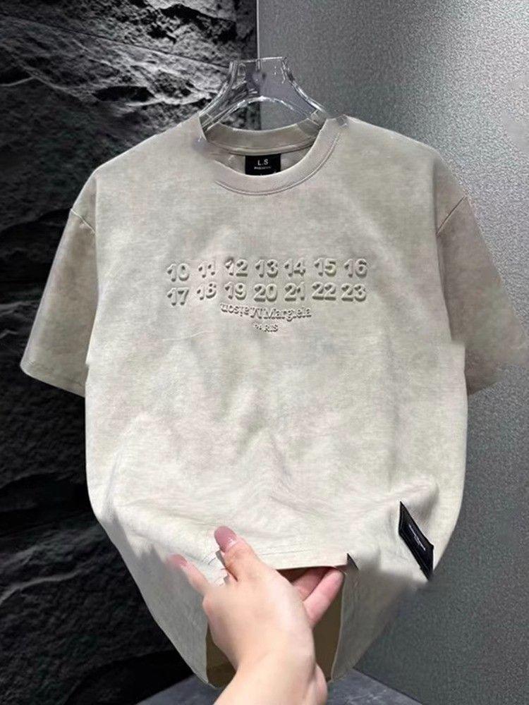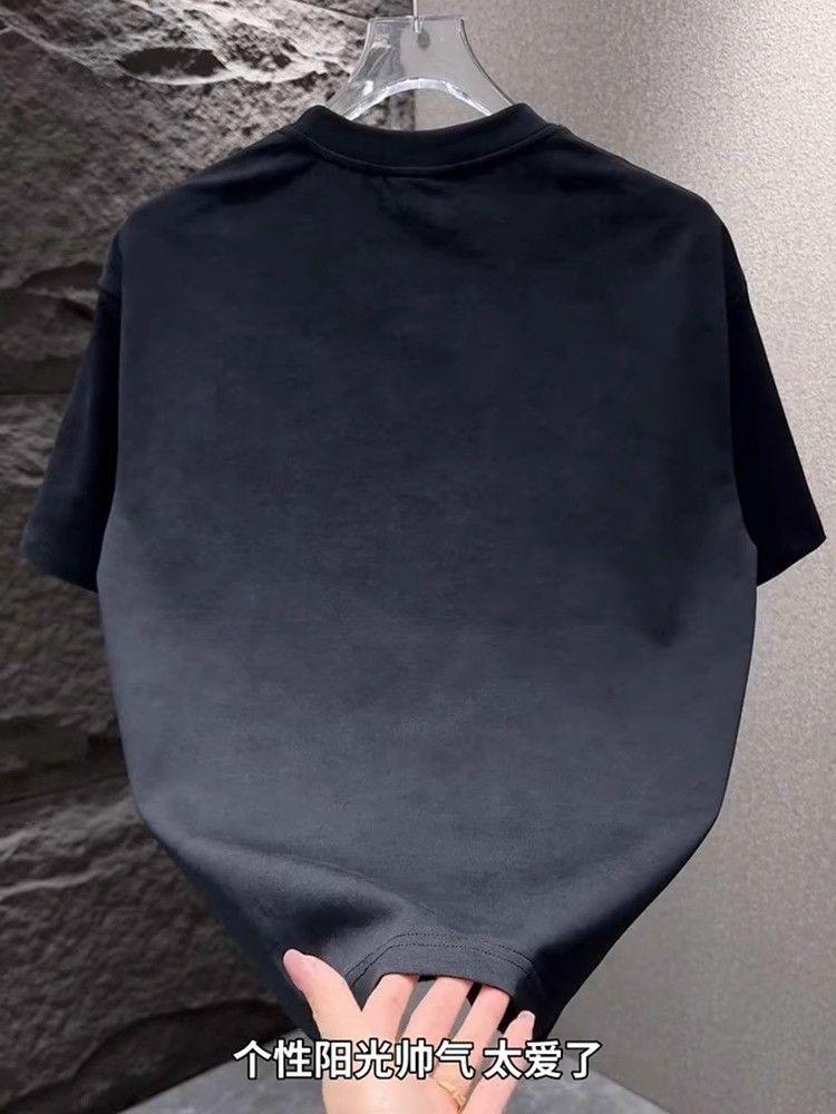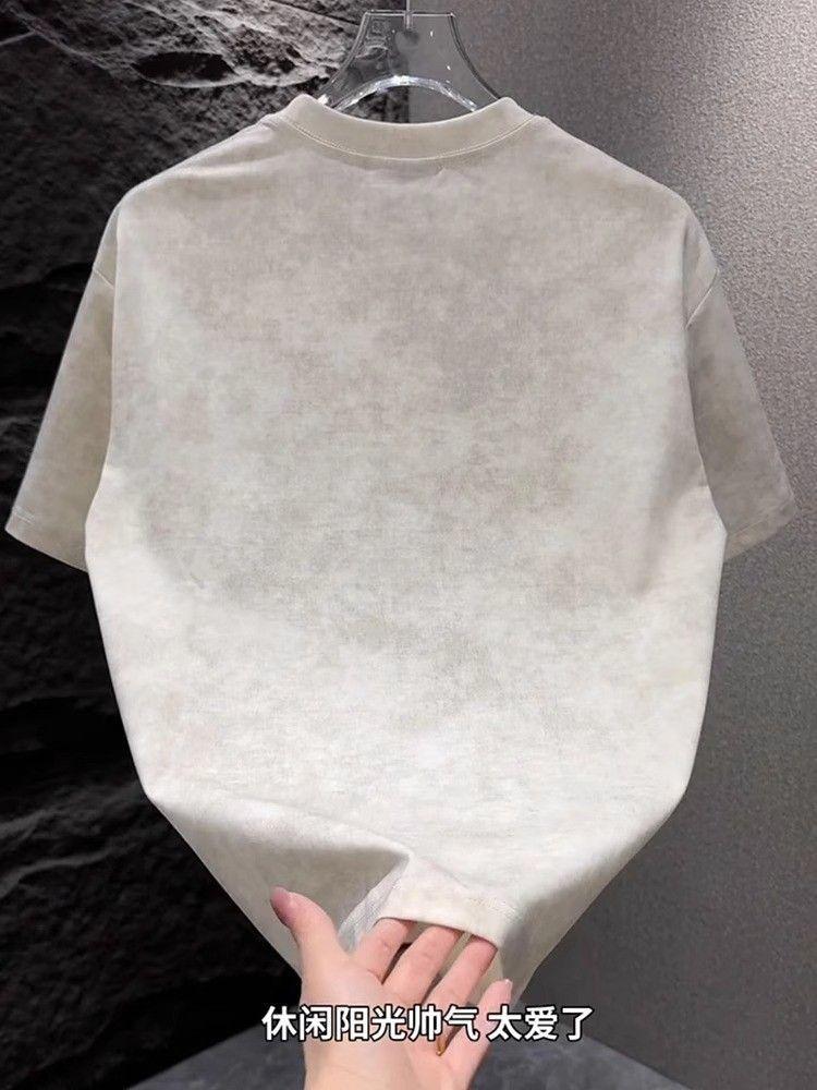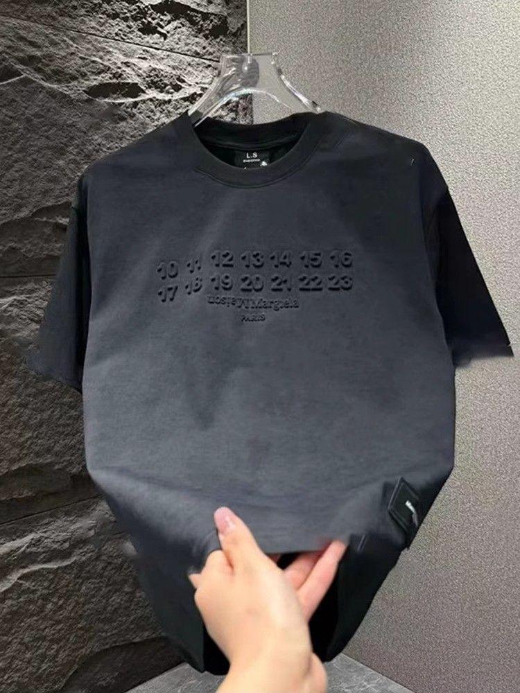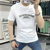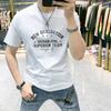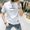 Camiseta de Manga Corta para Hombre Verano Nueva Moda Estampado de Acero Letra Manga Media Moda Sencilla Ajustada Versátil