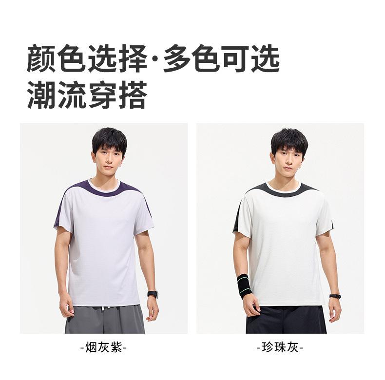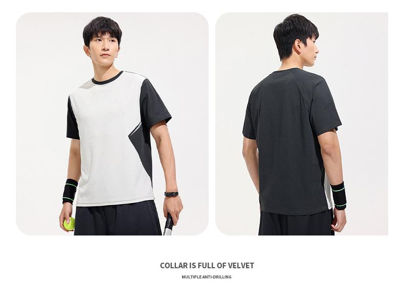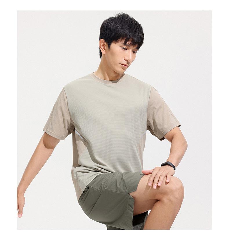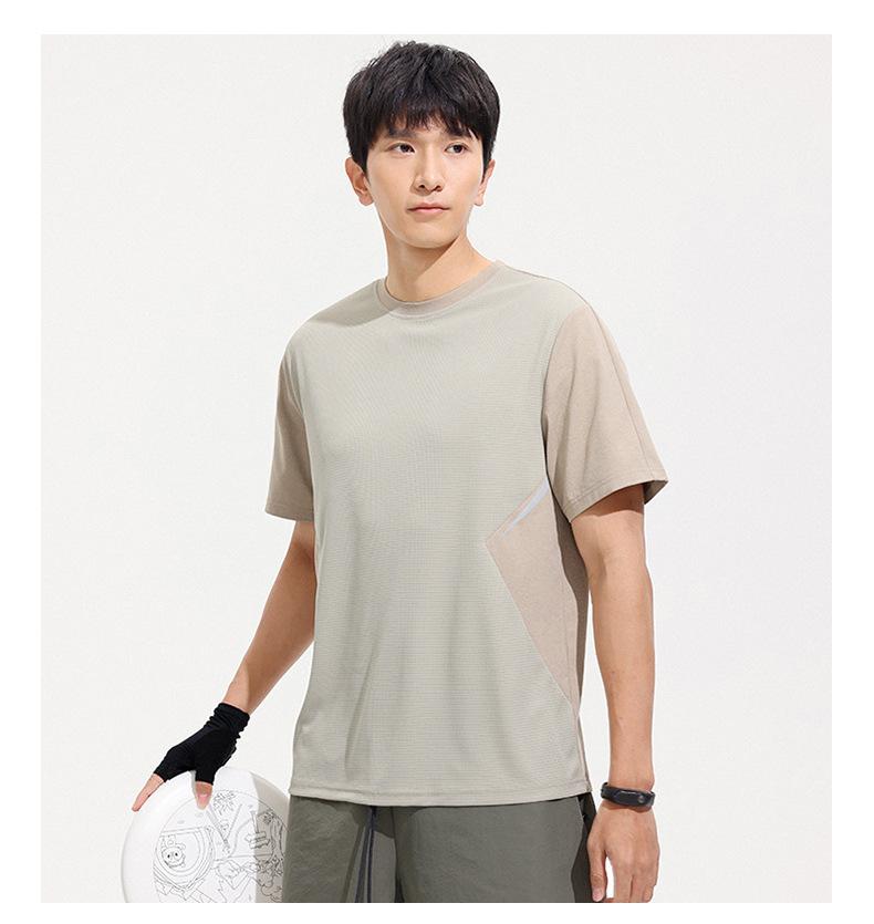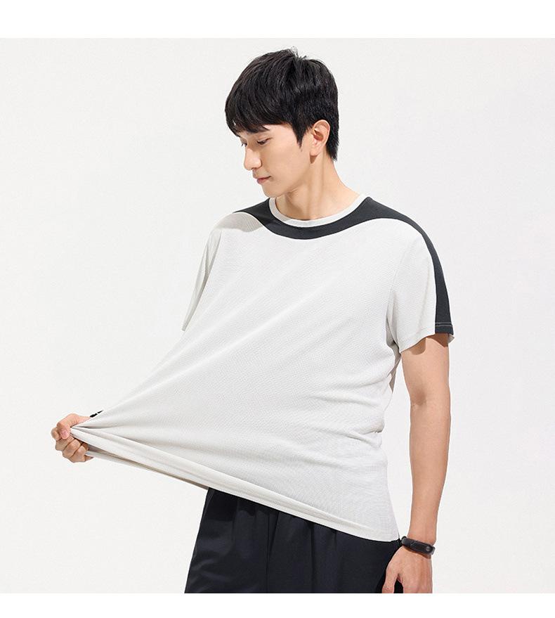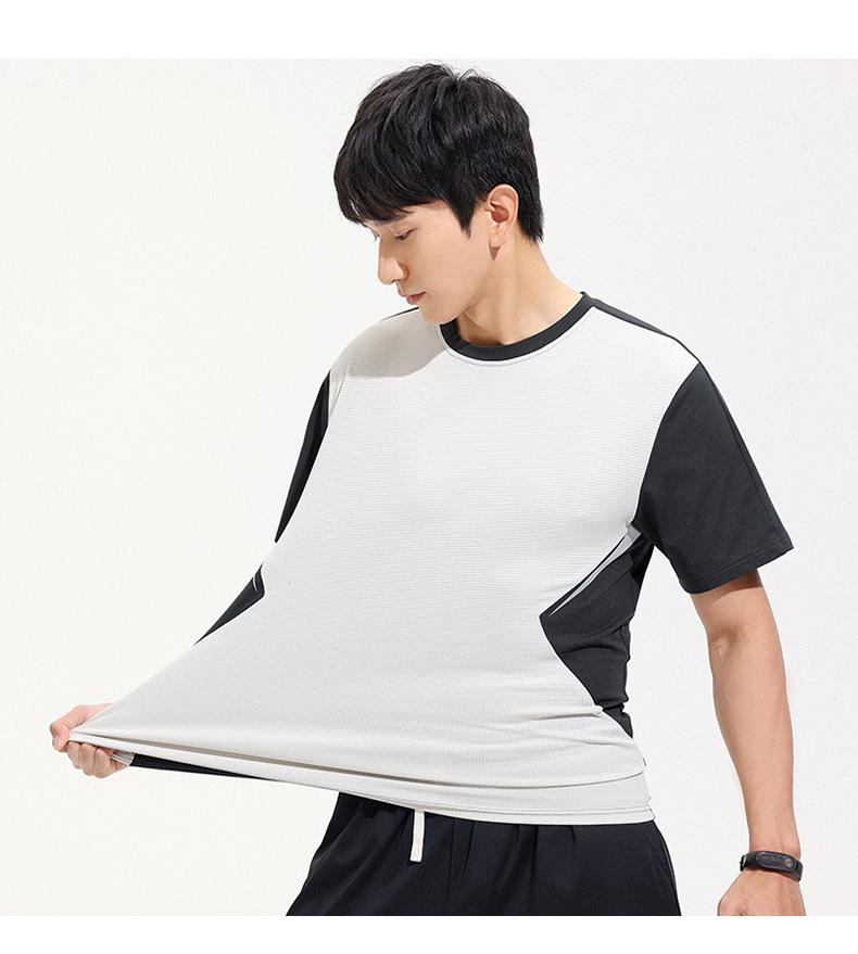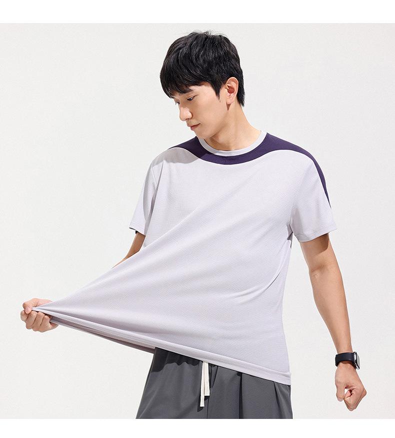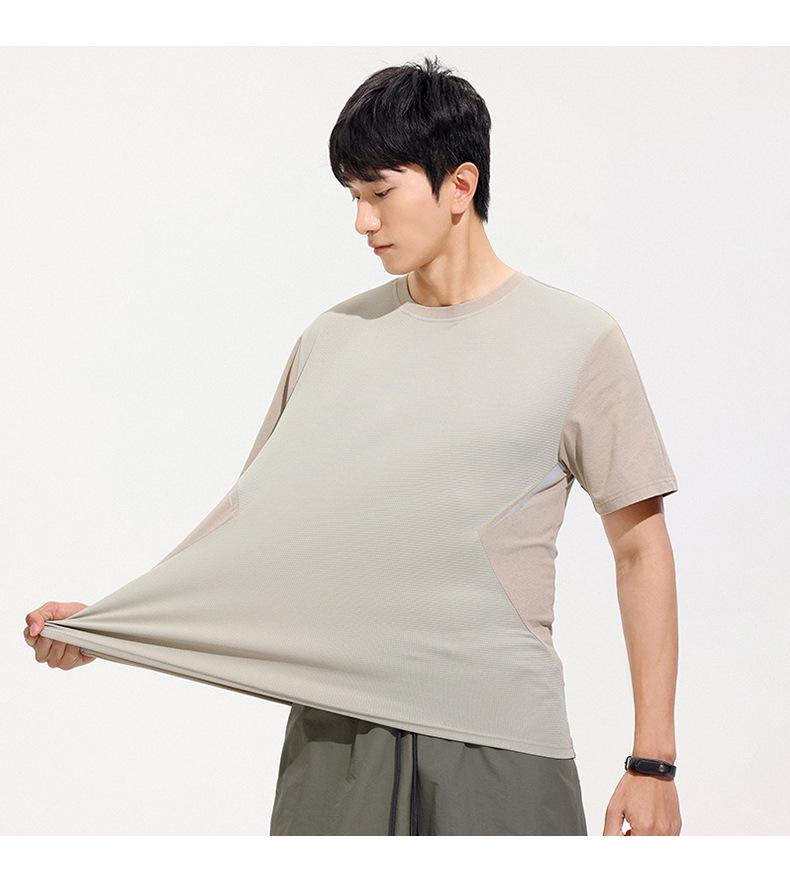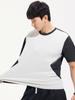 Camiseta de manga corta transpirable y elástica con bloques de color para hombre, ideal para deportes al aire libre, correr, fitness y secado rápido.