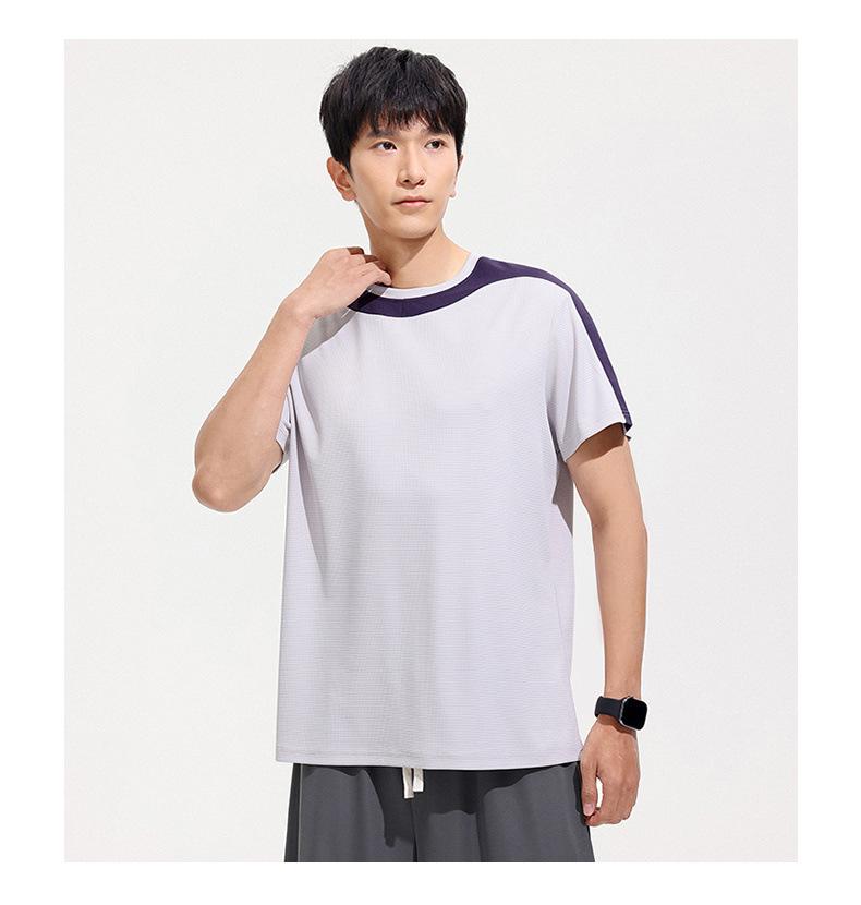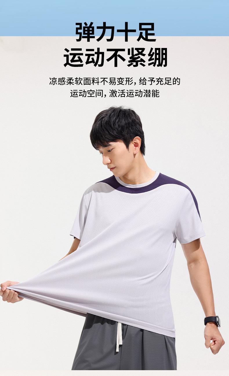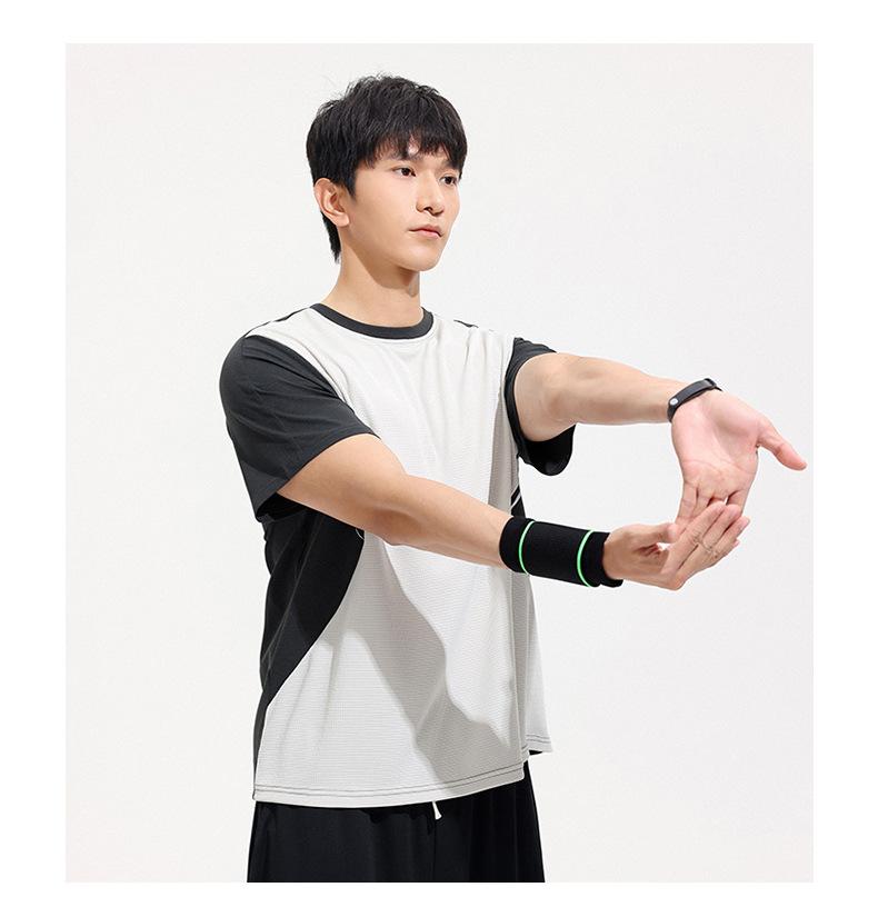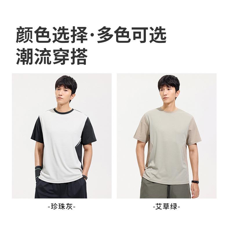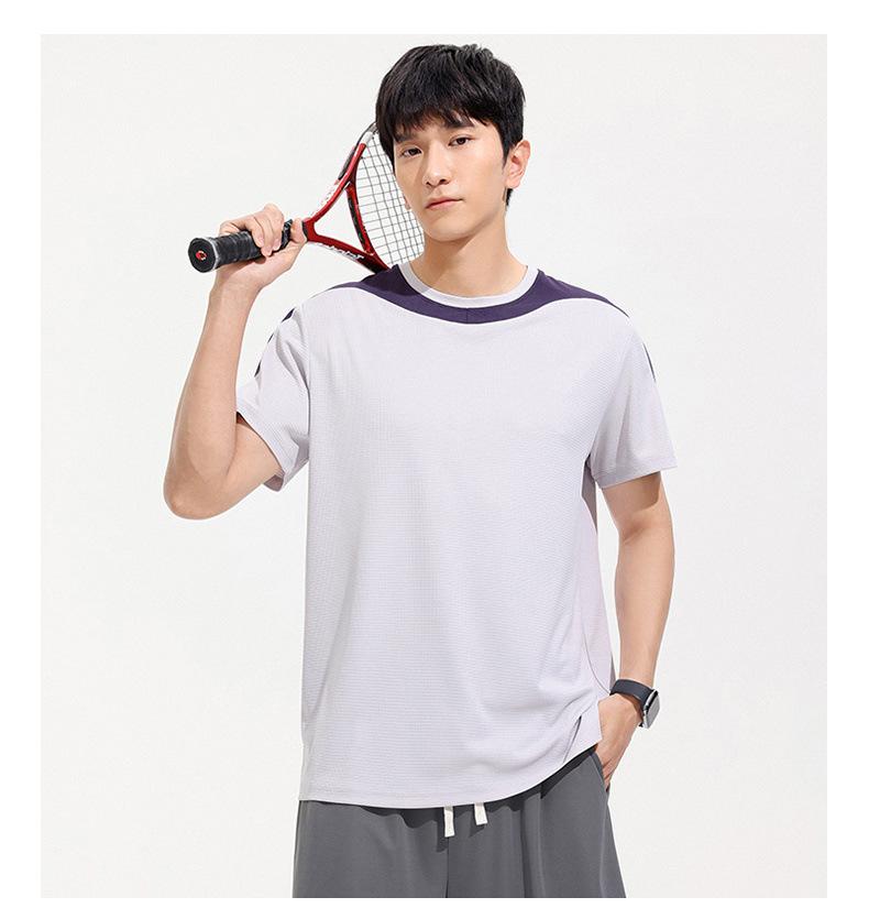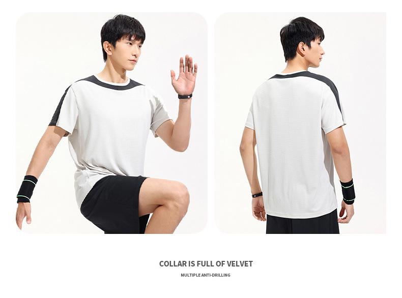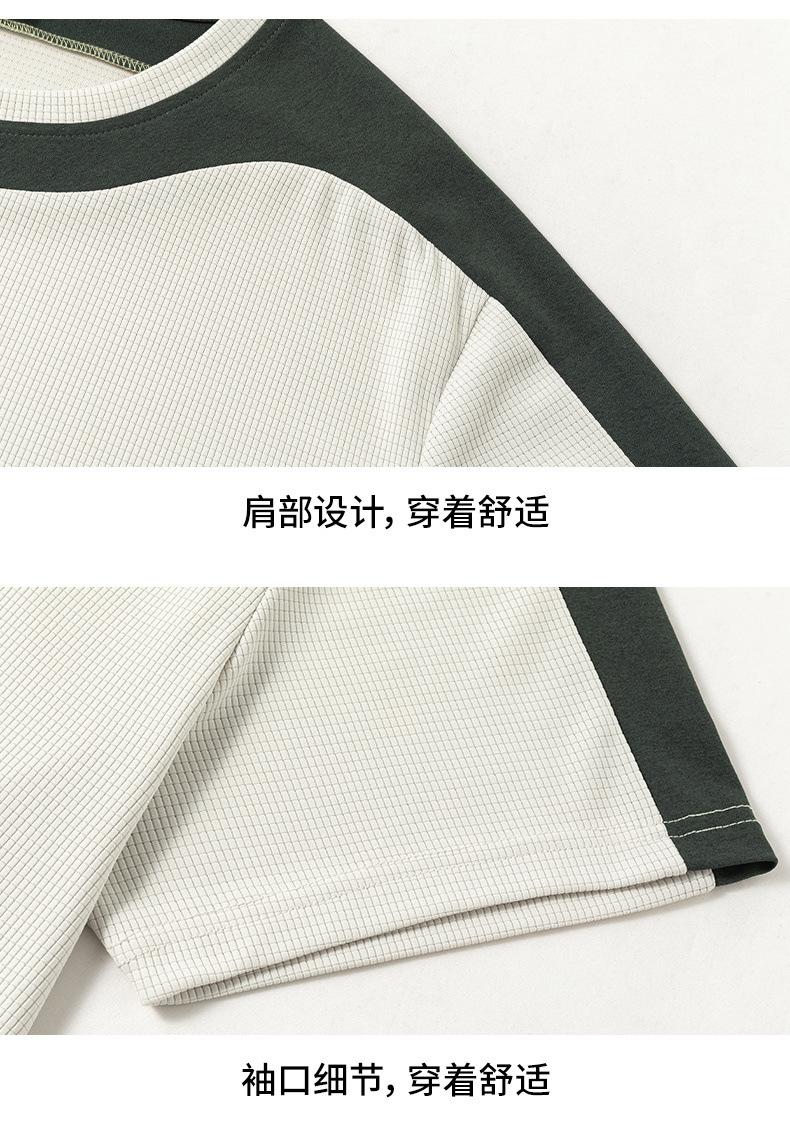 Camiseta de manga corta transpirable y elástica con bloques de color para hombre, ideal para deportes al aire libre, correr, fitness y secado rápido.