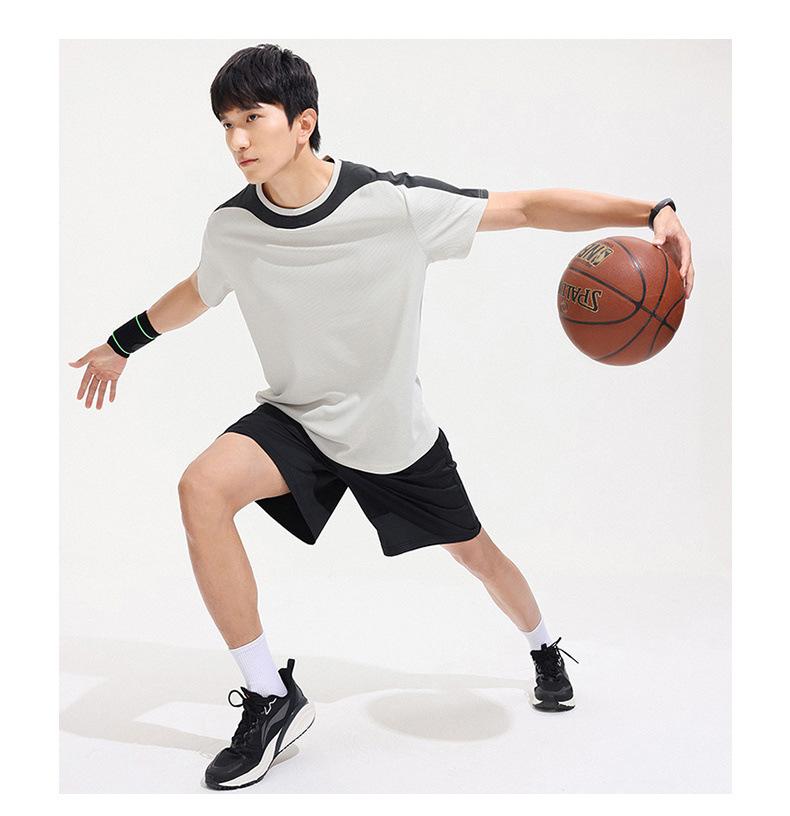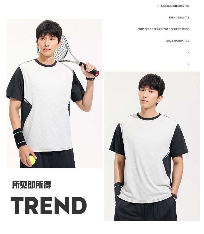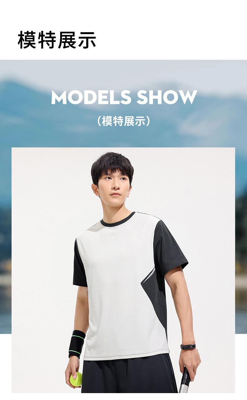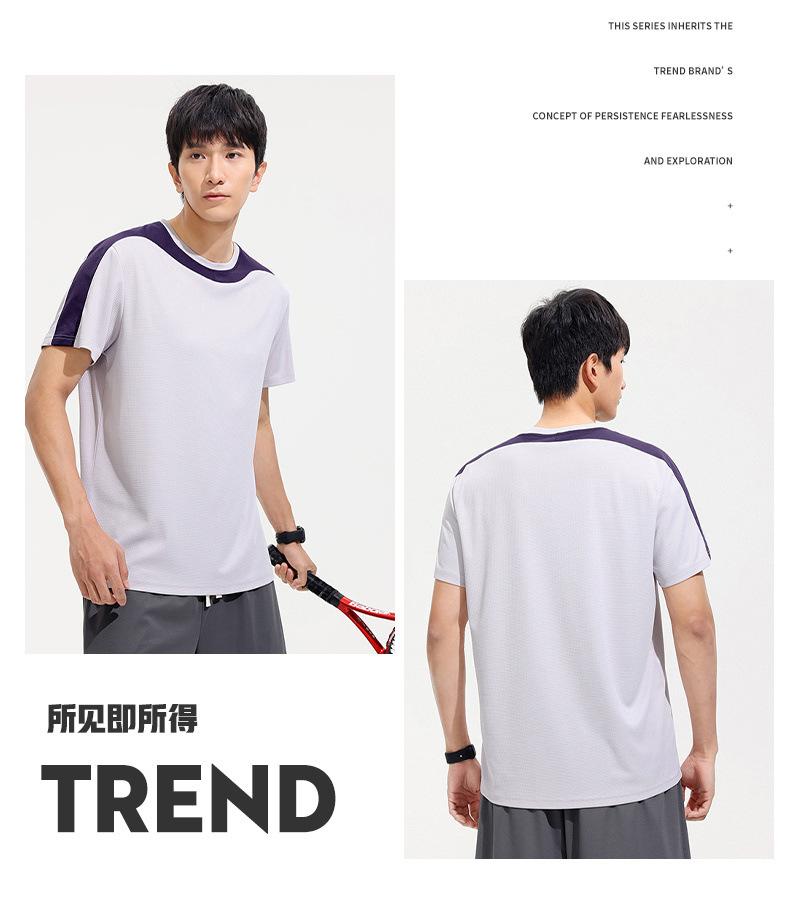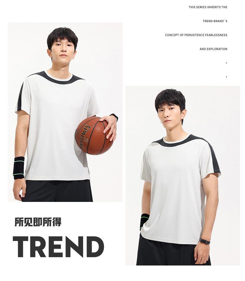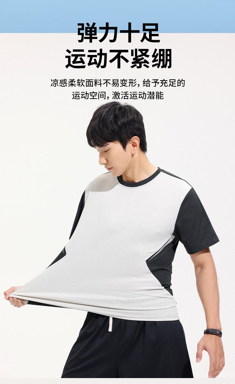 Camiseta de manga corta transpirable y elástica con bloques de color para hombre, ideal para deportes al aire libre, correr, fitness y secado rápido.
