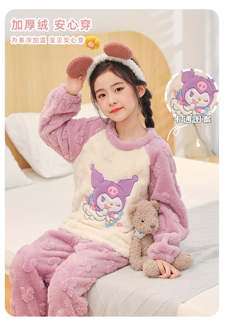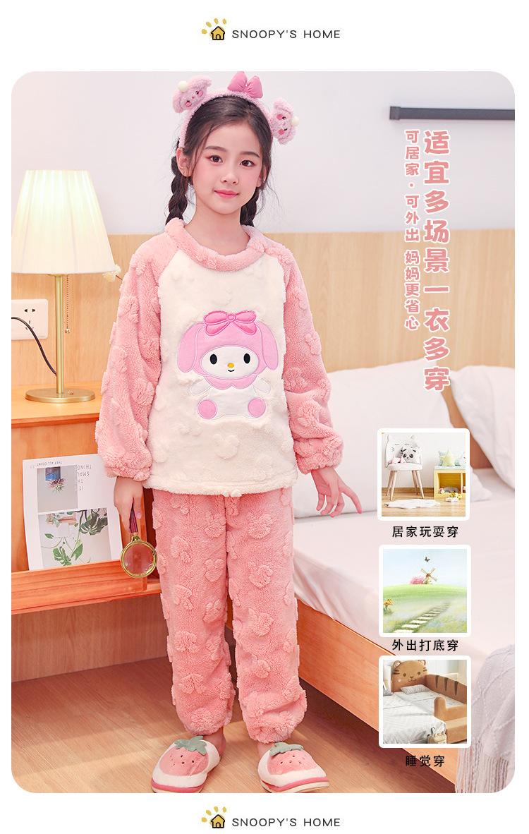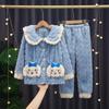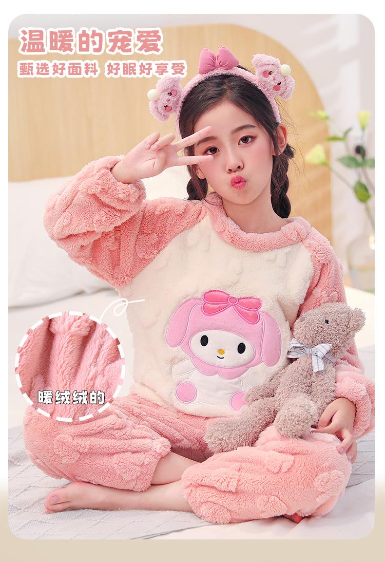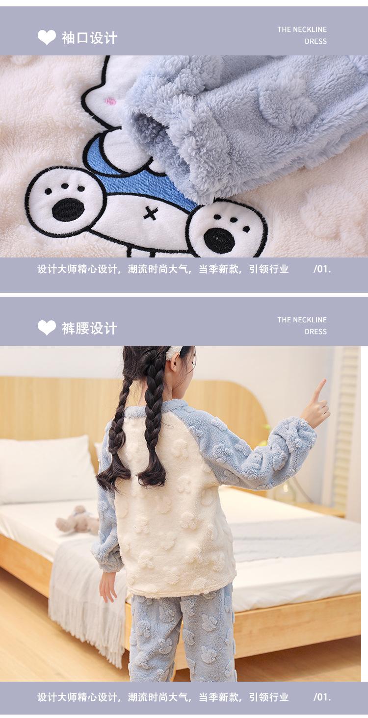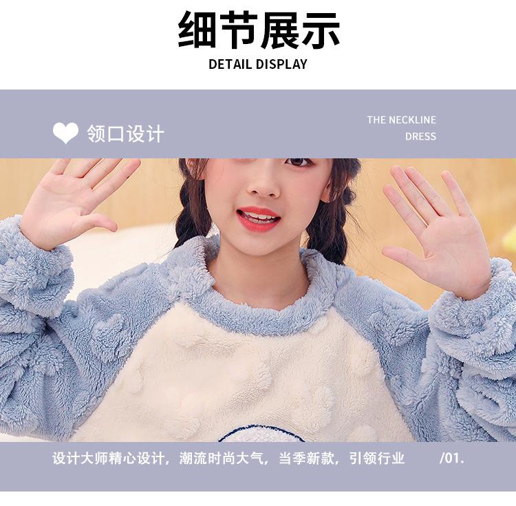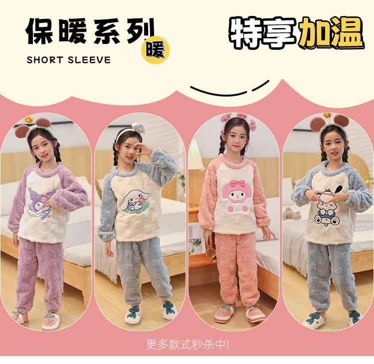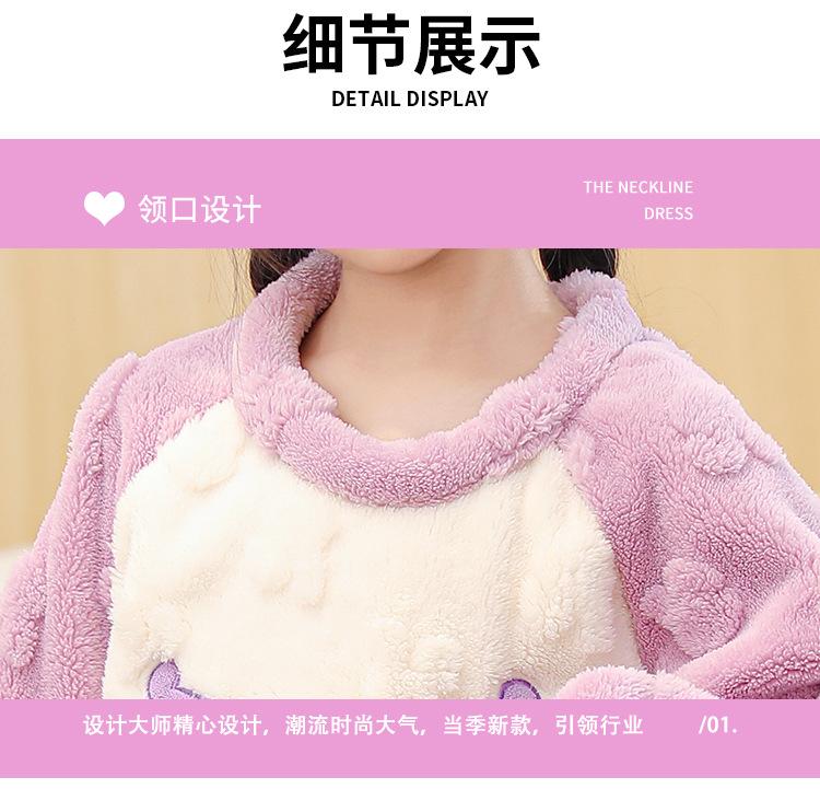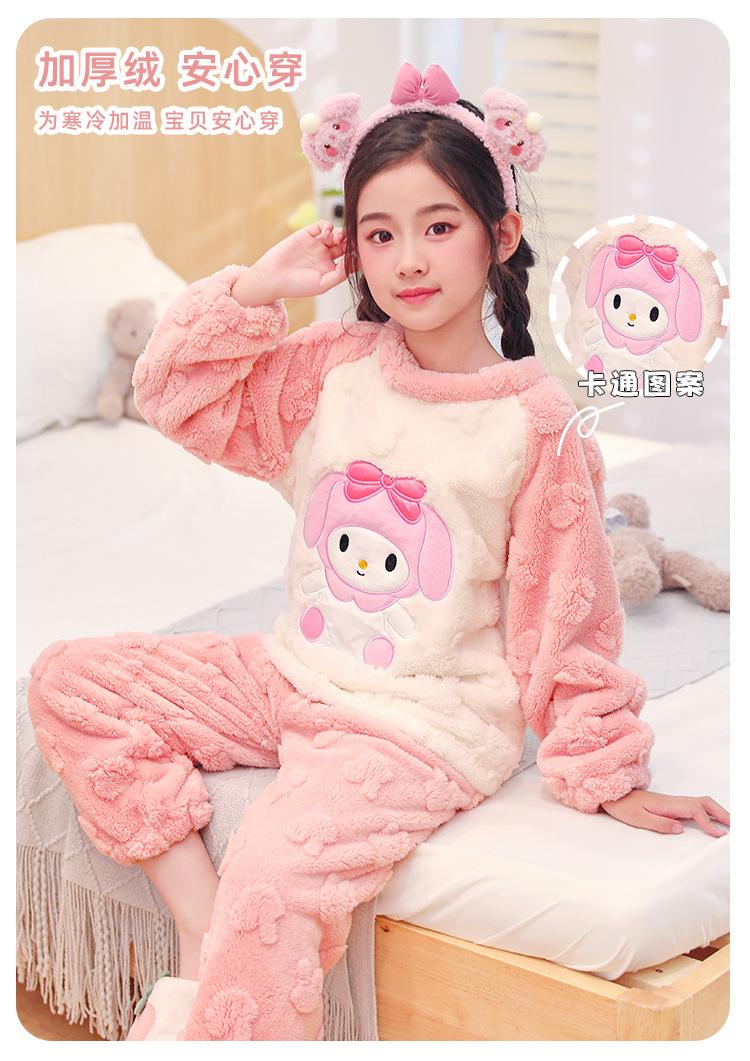 Pijamas para niños de forro polar coral para niñas, otoño e invierno 2024, nuevo traje de franela para niñas con forro polar grueso.