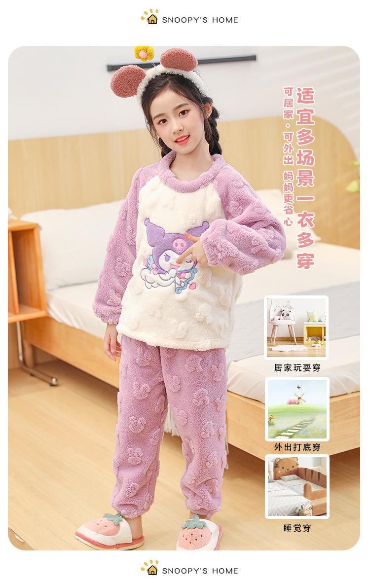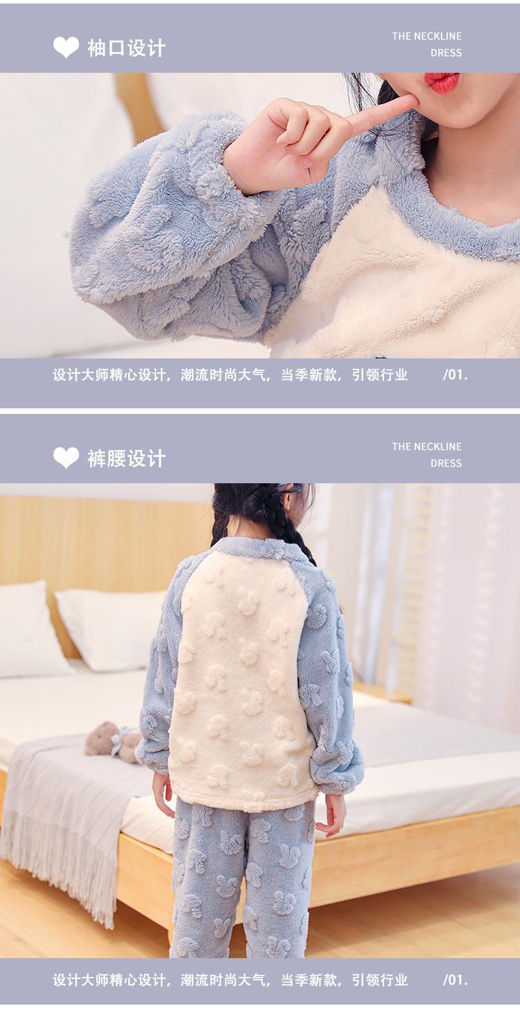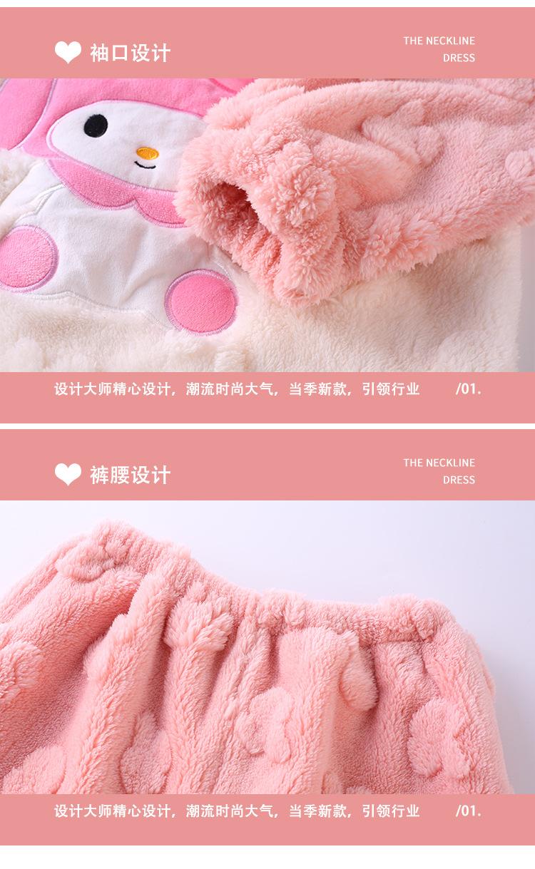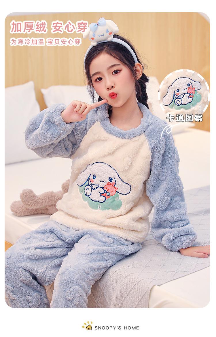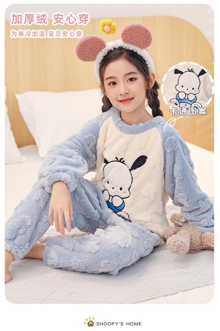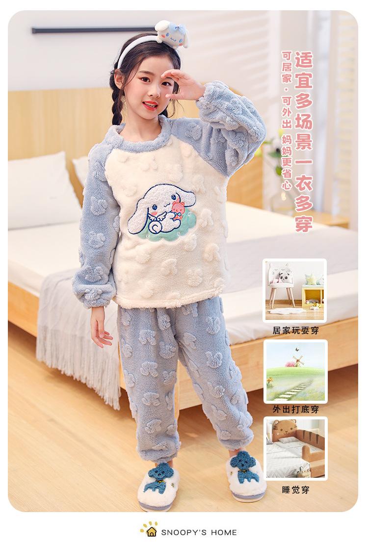 Pijamas para niños de forro polar coral para niñas, otoño e invierno 2024, nuevo traje de franela para niñas con forro polar grueso.
