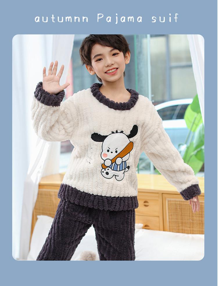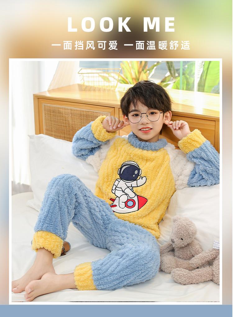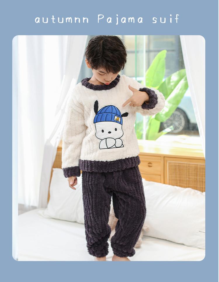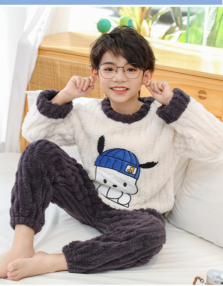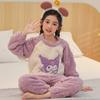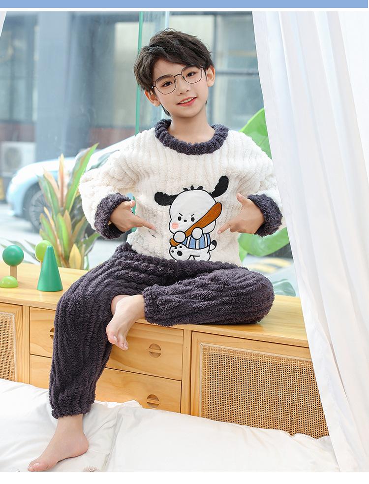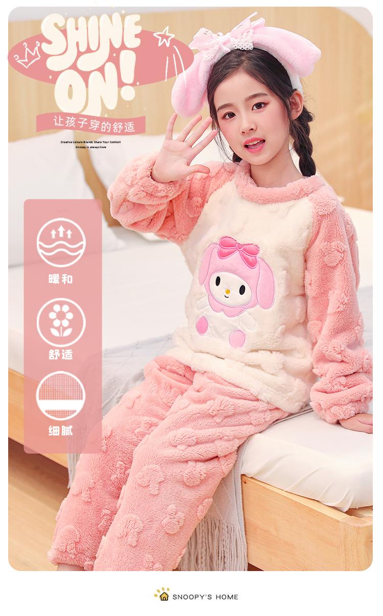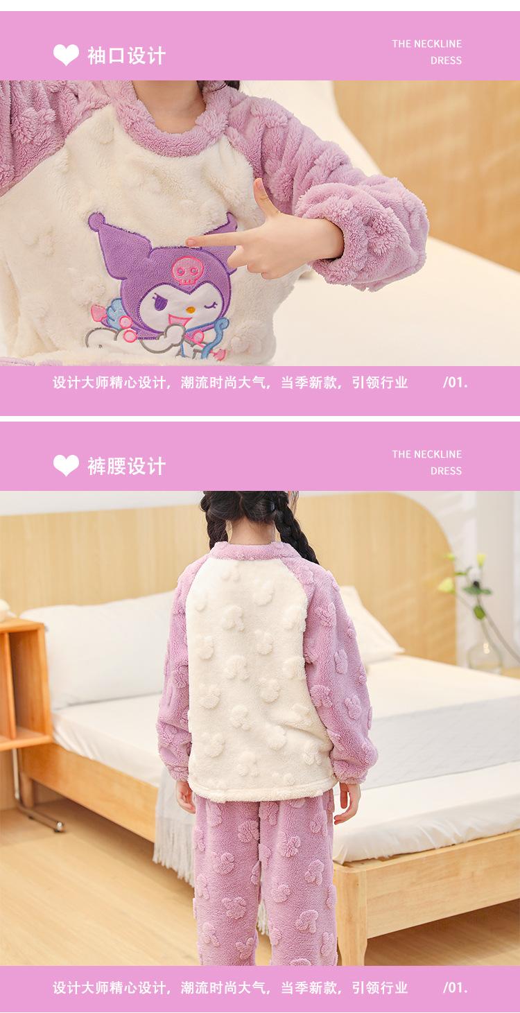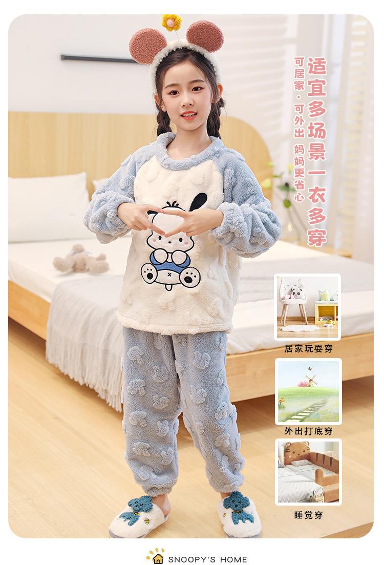 Pijamas para niños de forro polar coral para niñas, otoño e invierno 2024, nuevo traje de franela para niñas con forro polar grueso.