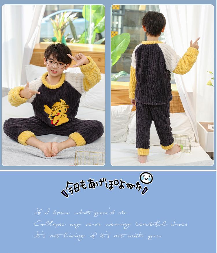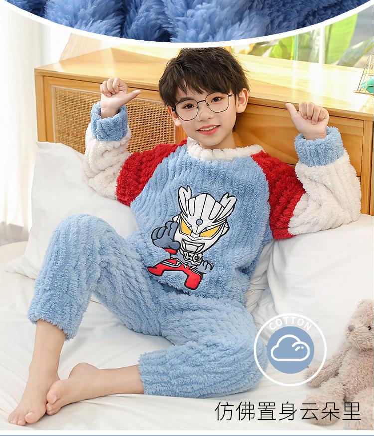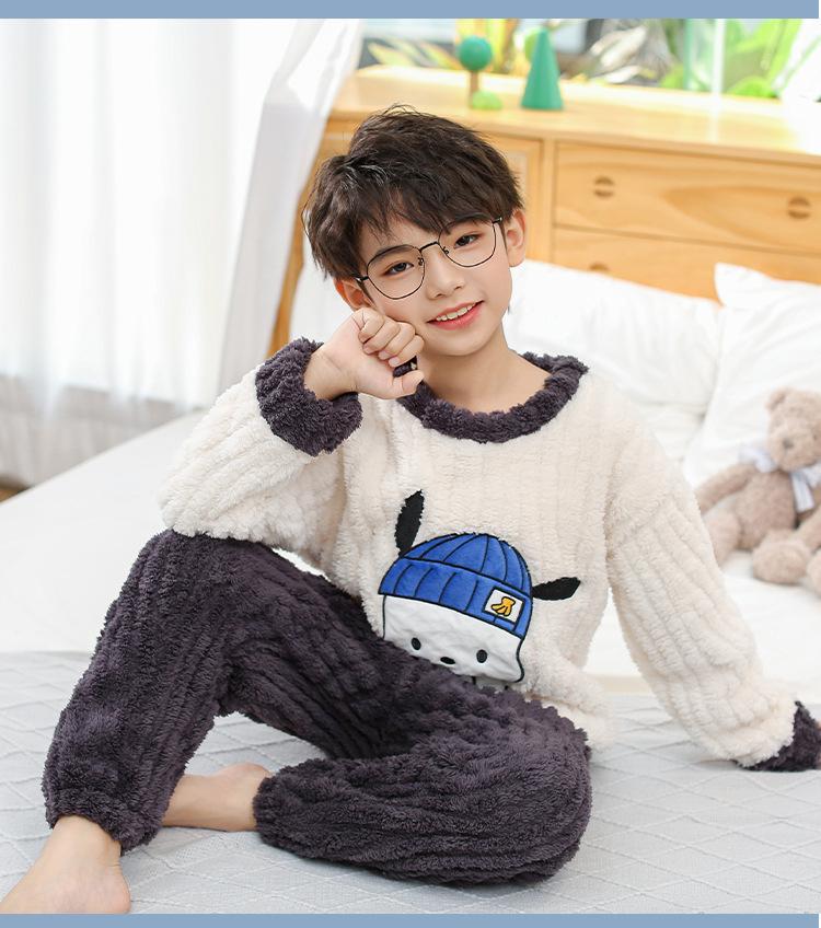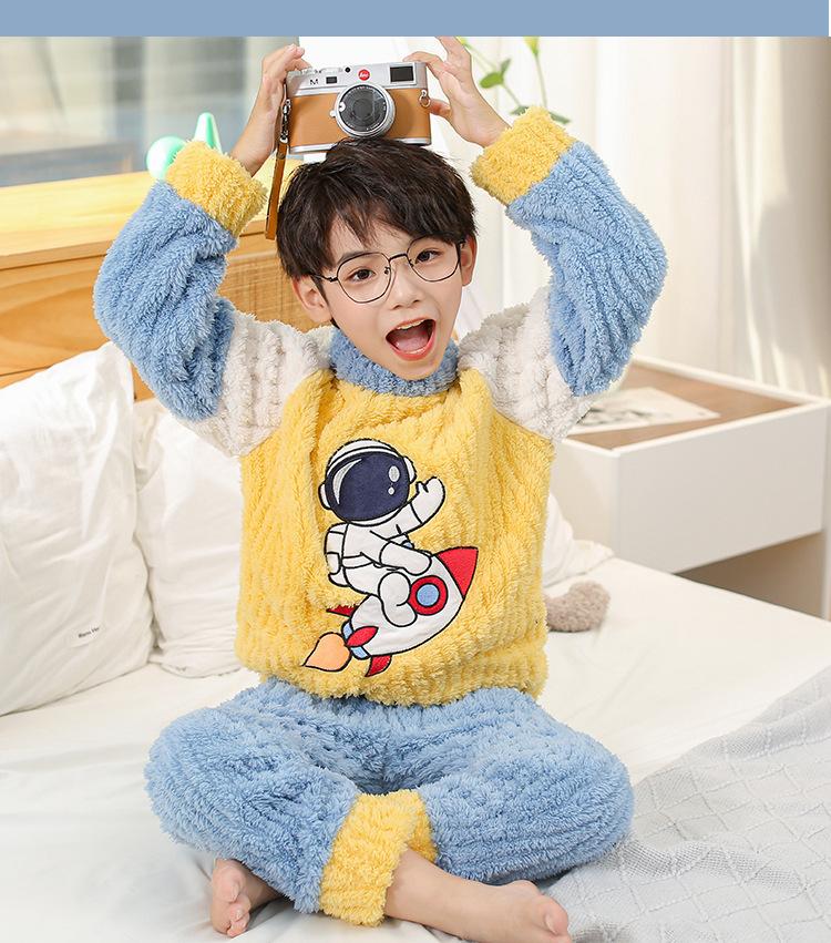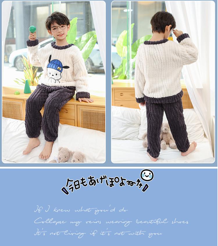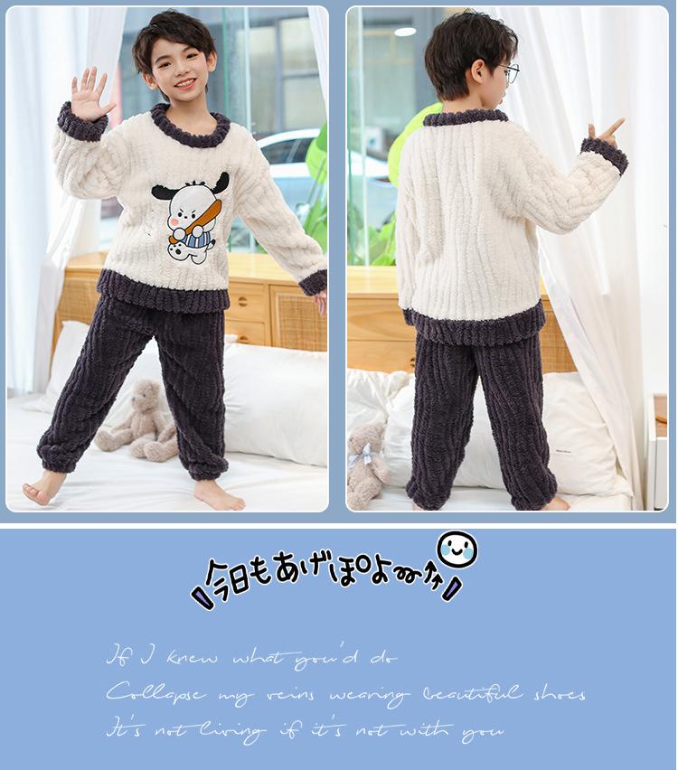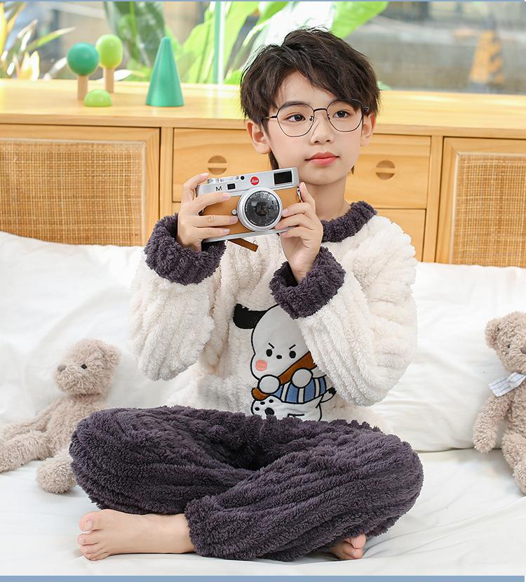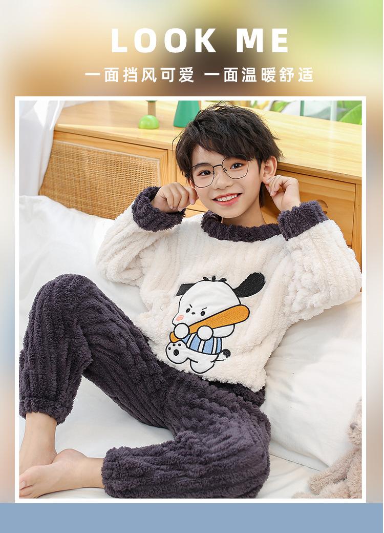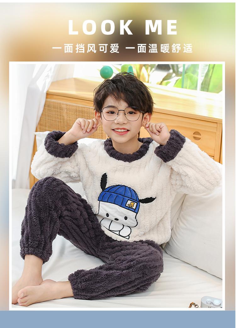 Pijamas para niños de forro polar coral para niñas, otoño e invierno 2024, nuevo traje de franela para niñas con forro polar grueso.