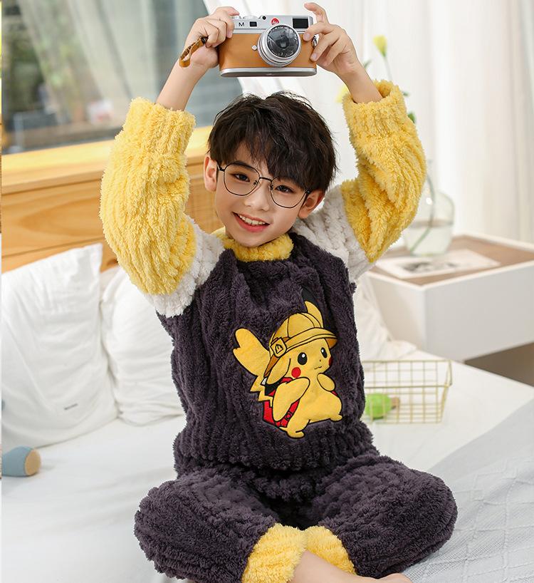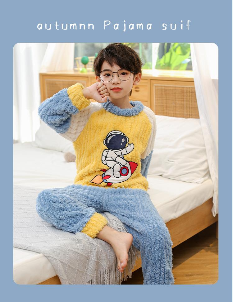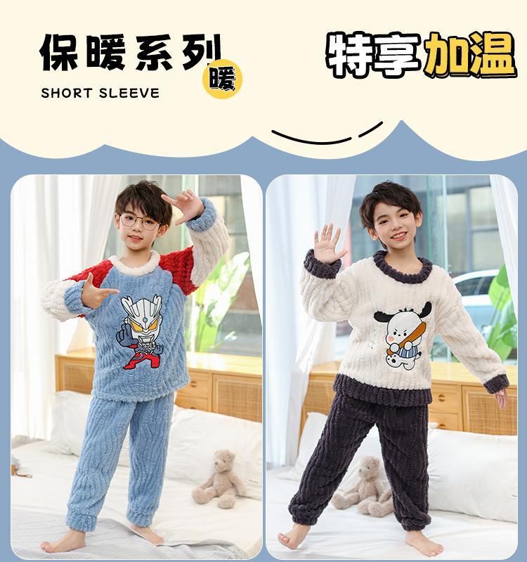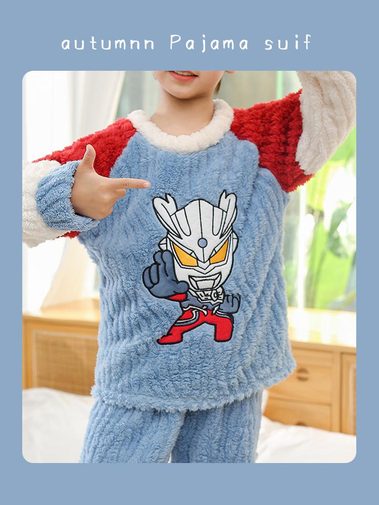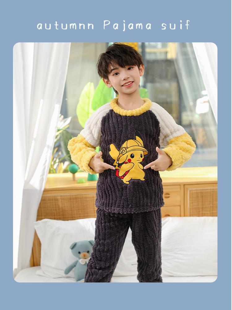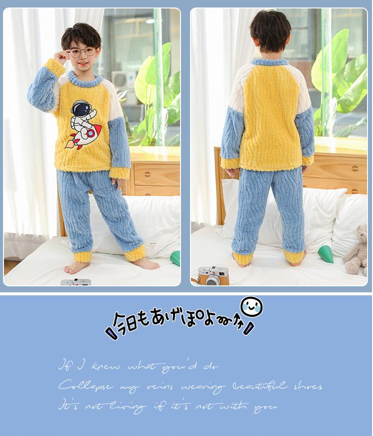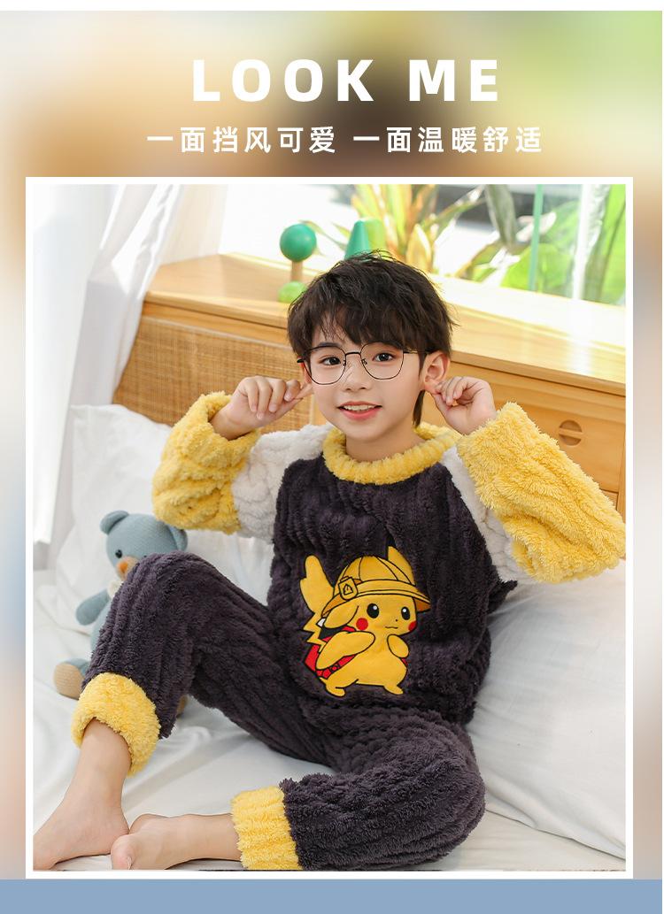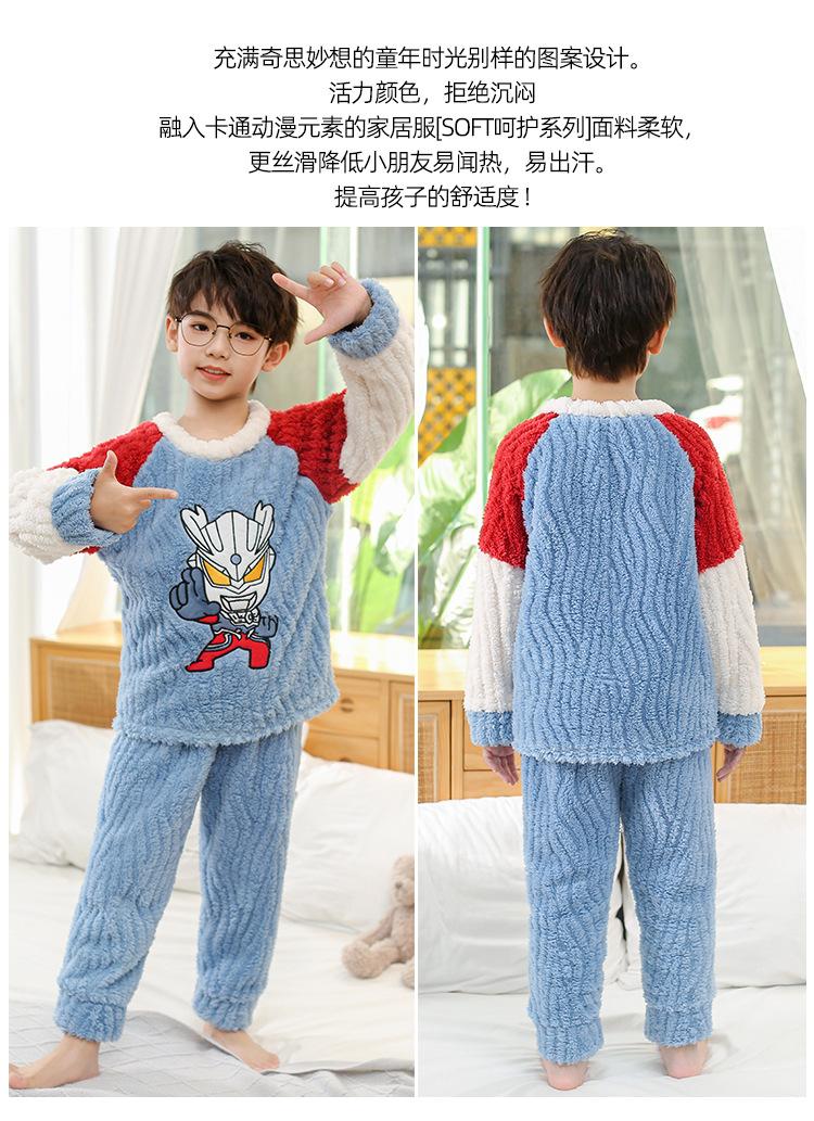 Pijamas para niños de forro polar coral para niñas, otoño e invierno 2024, nuevo traje de franela para niñas con forro polar grueso.