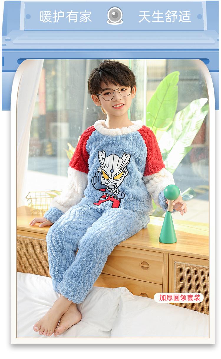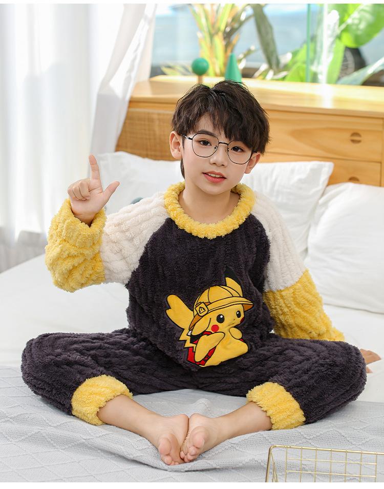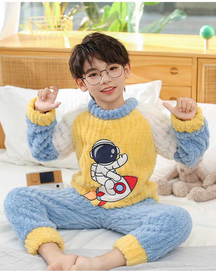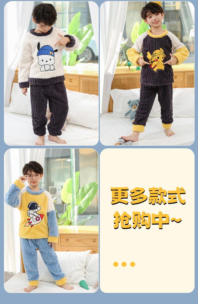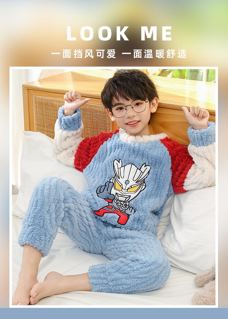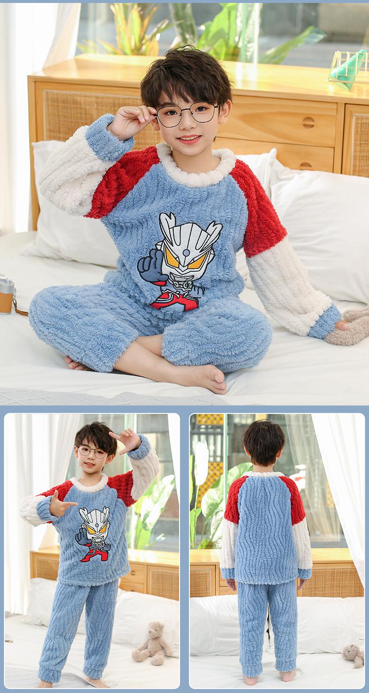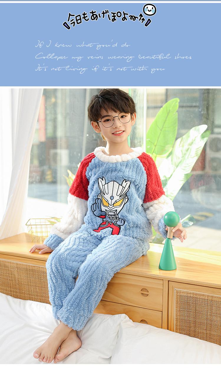 Pijamas para niños de forro polar coral para niñas, otoño e invierno 2024, nuevo traje de franela para niñas con forro polar grueso.
