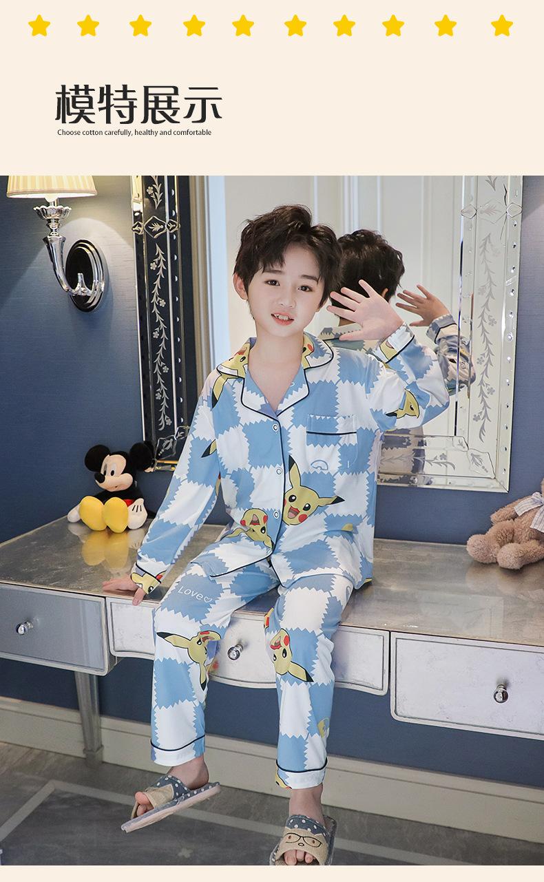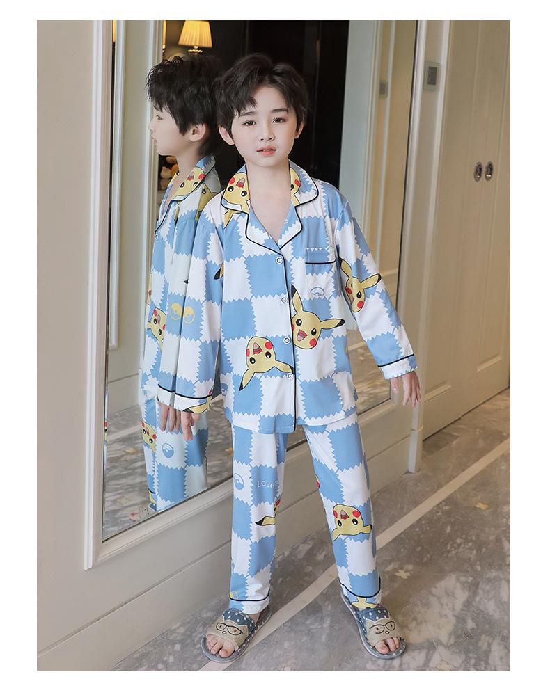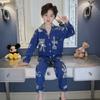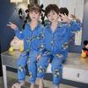 Pijamas para niños, niñas, primavera y otoño, manga larga, traje de estar por casa para niños, dinosaurio de dibujos animados, ropa de mediados de otoño para niños con solapa