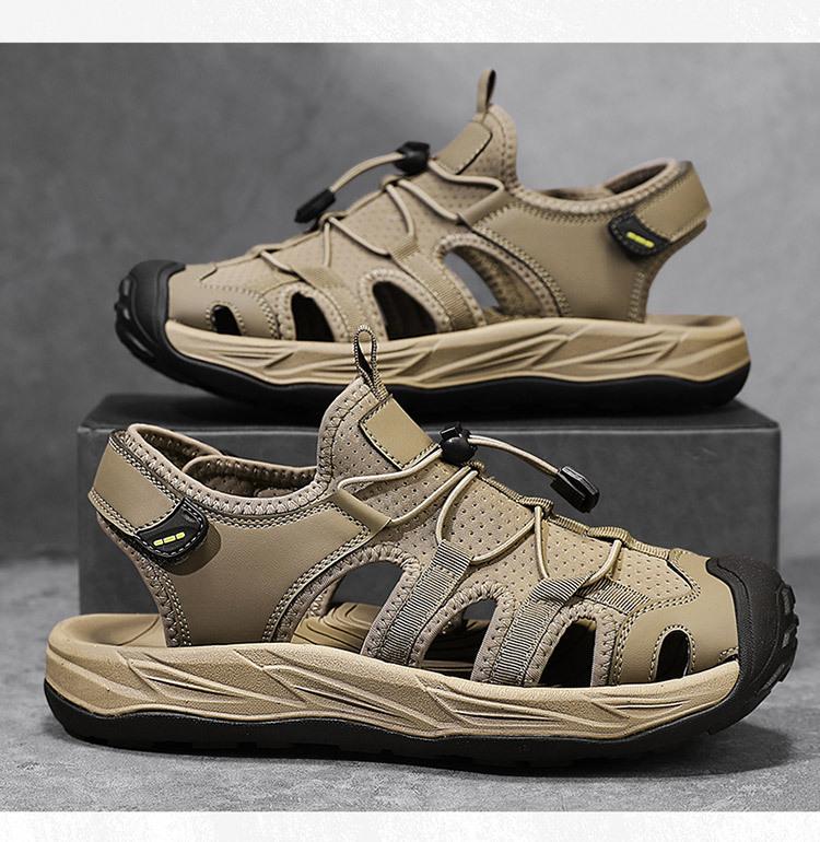 Sandalias de talla grande transfronterizas para hombre, novedad de verano 2025, sandalias transpirables huecas para hombre, zapatos de playa Baotou informales para exteriores.
