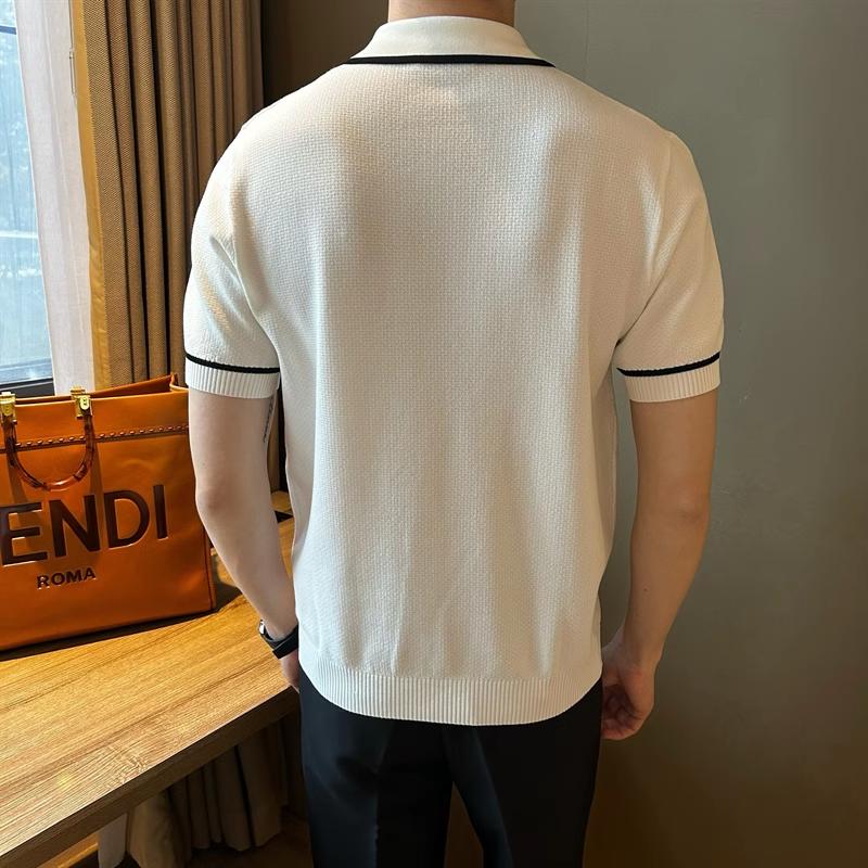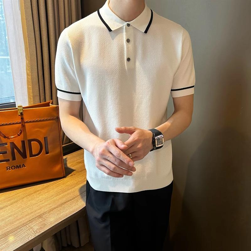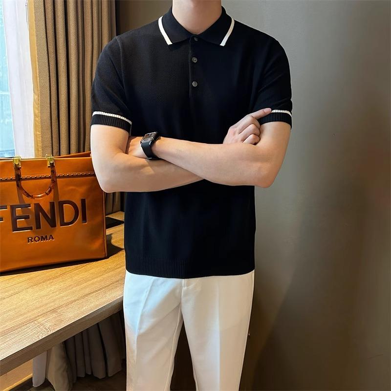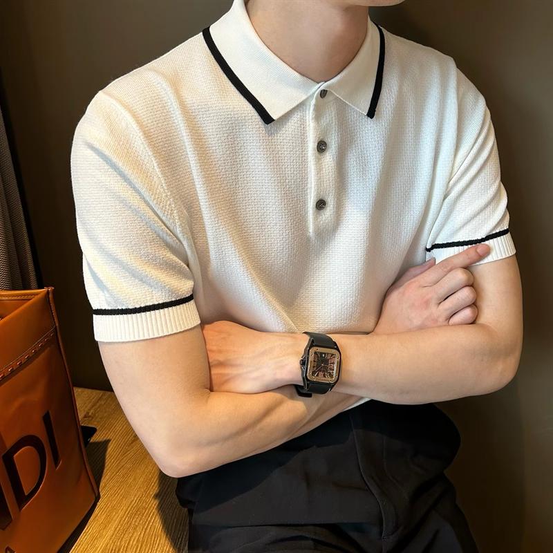Verano Nuevo Estilo Moda Madura Ligera Polo de Punto para Hombre Top de Manga Corta Pequeño Aroma Slim Casual Solapa Camiseta