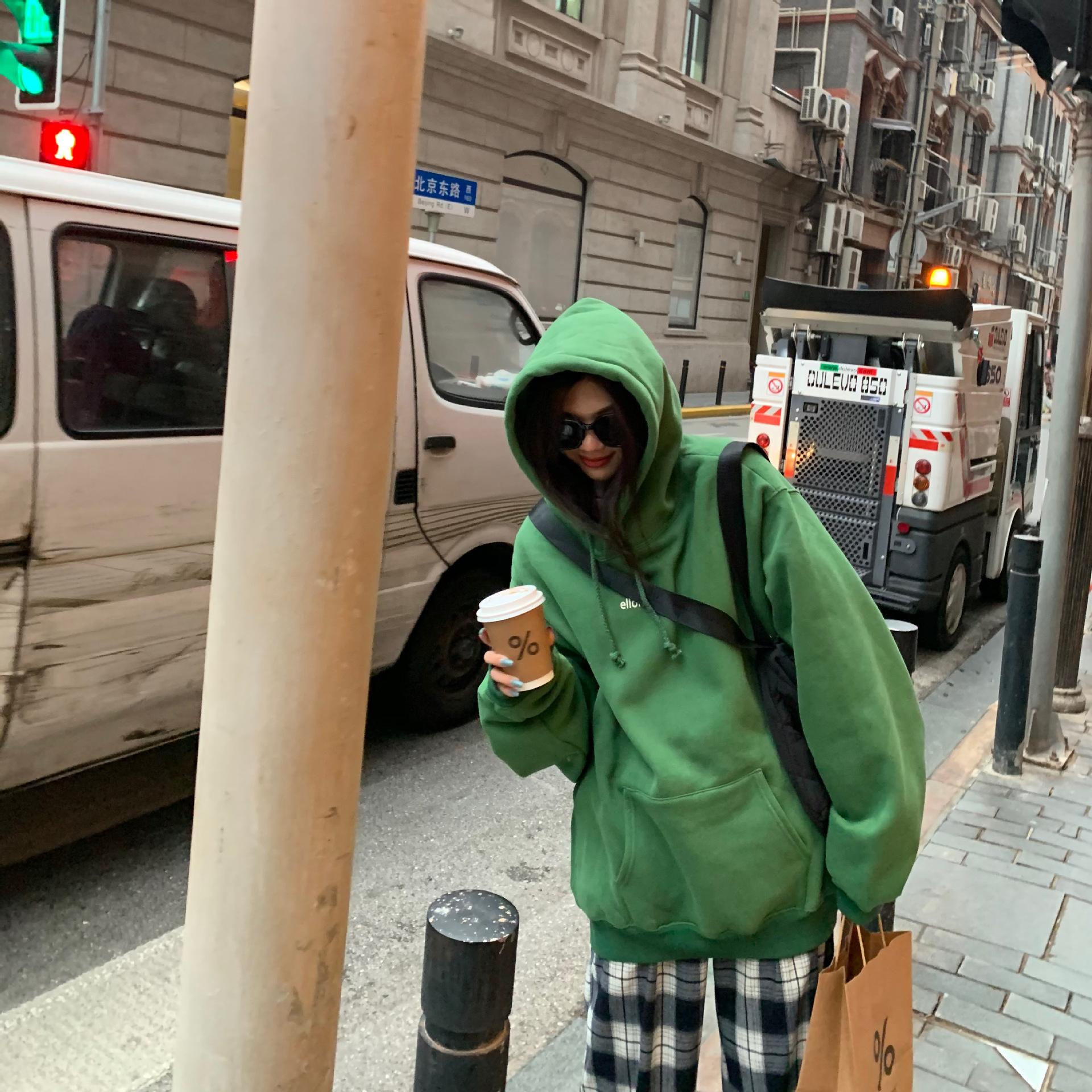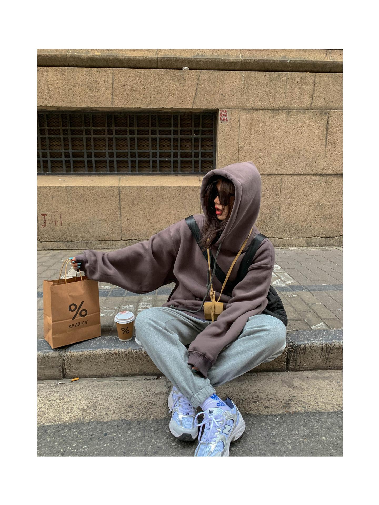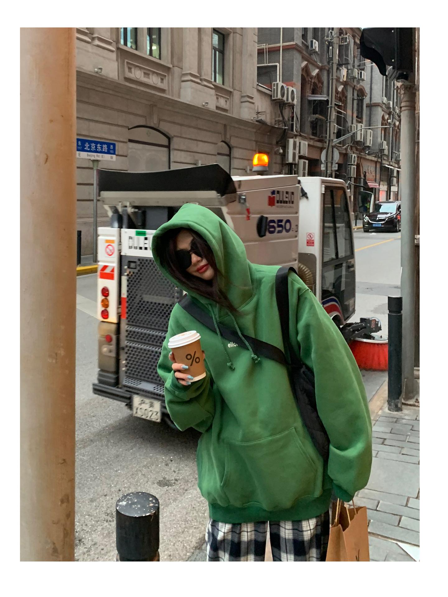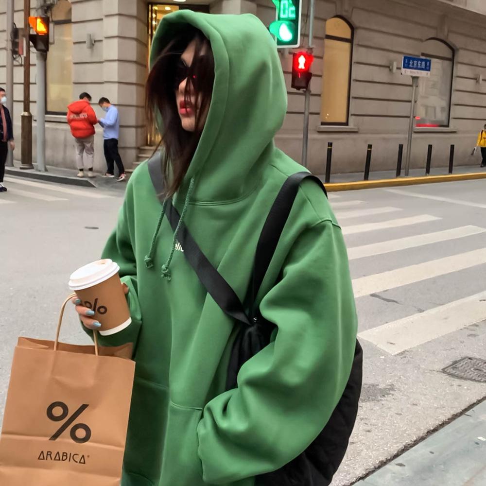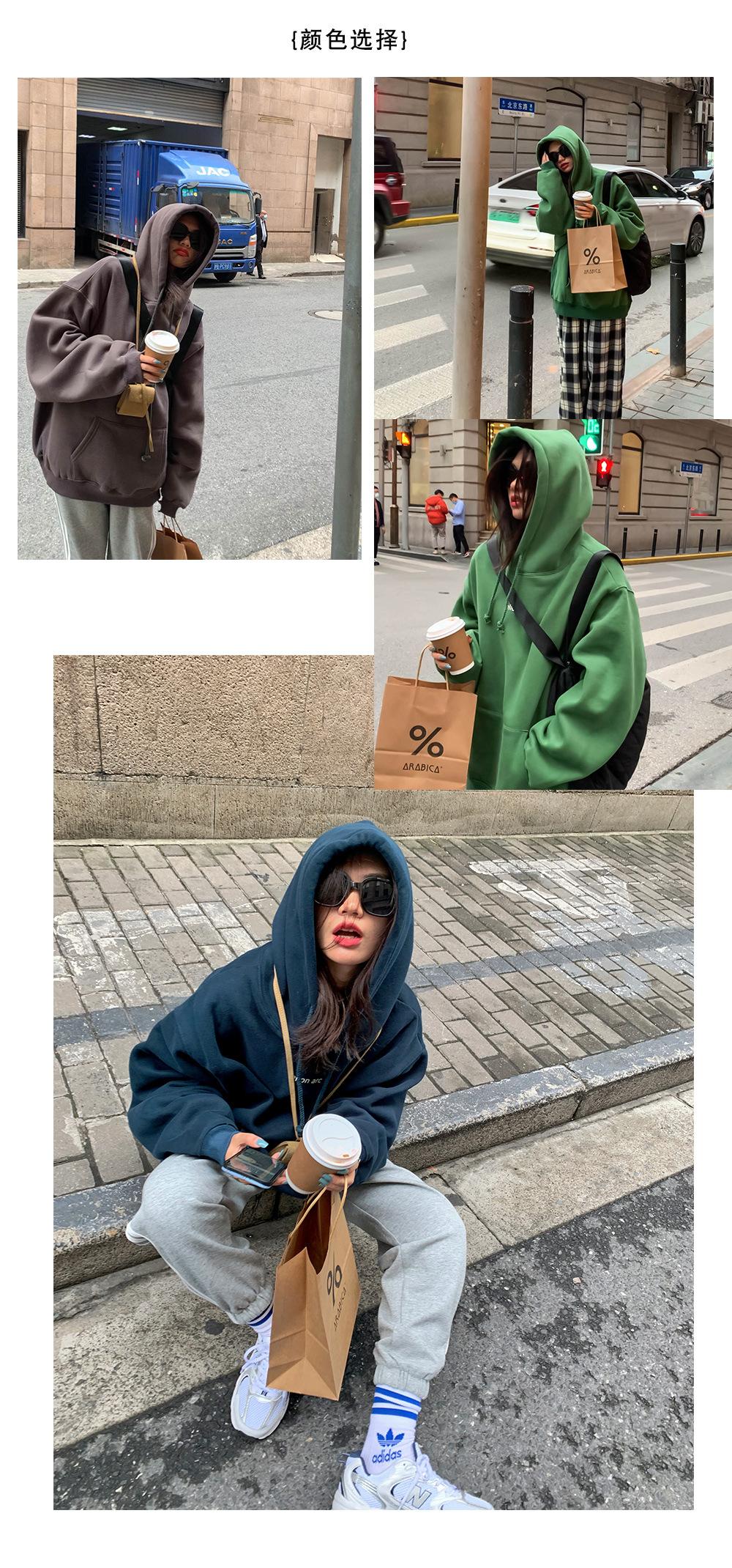 Suéter holgado estilo retro americano para mujer, de otoño e invierno, con estampado de letras David y forro polar de 190 g, tendencia