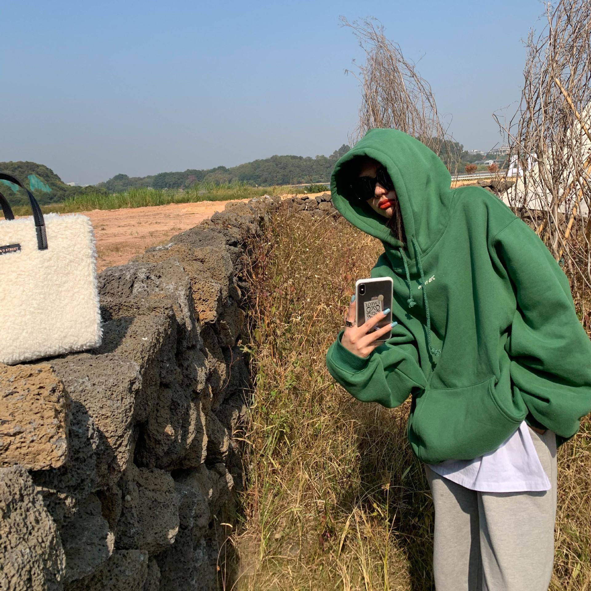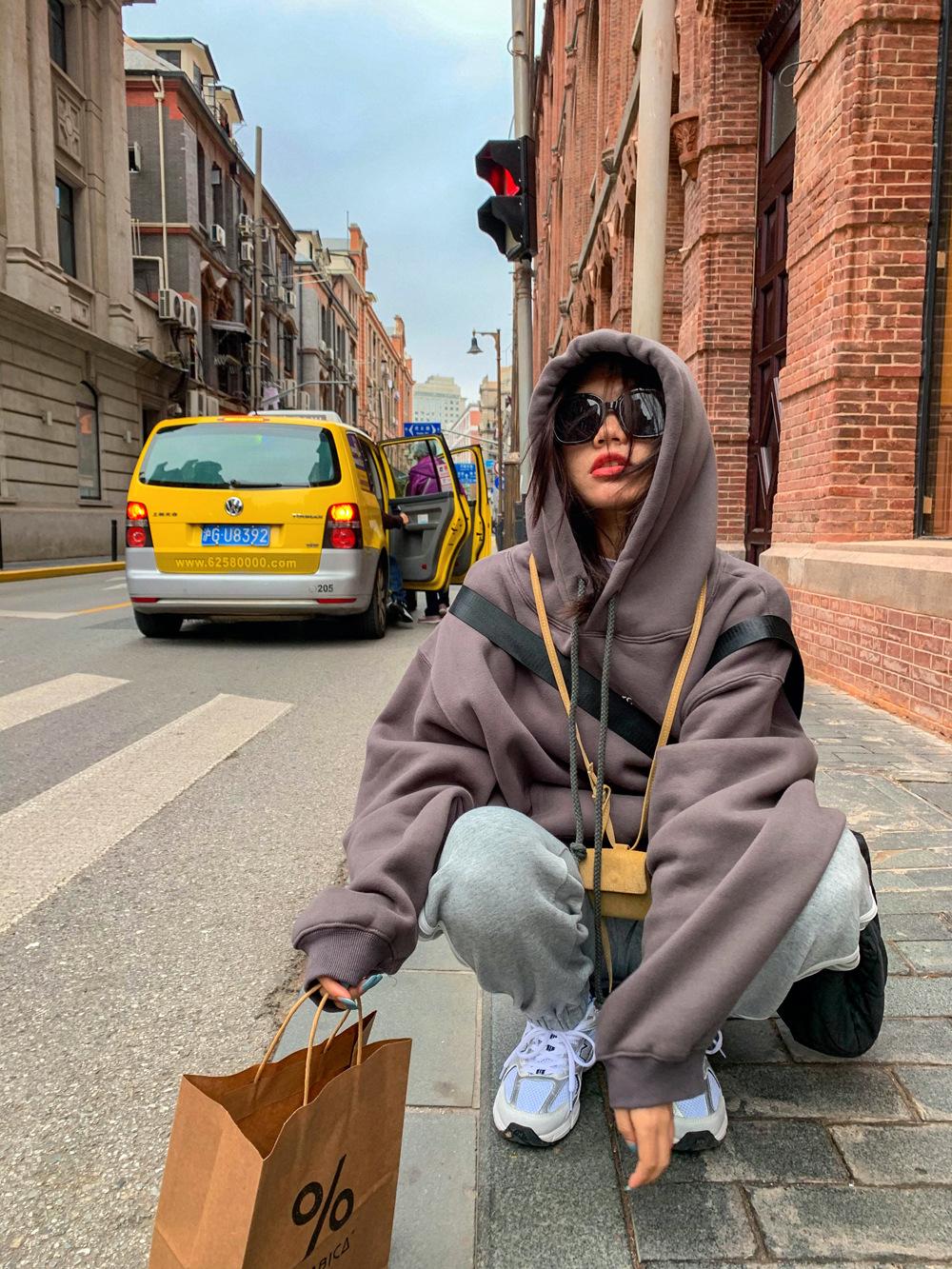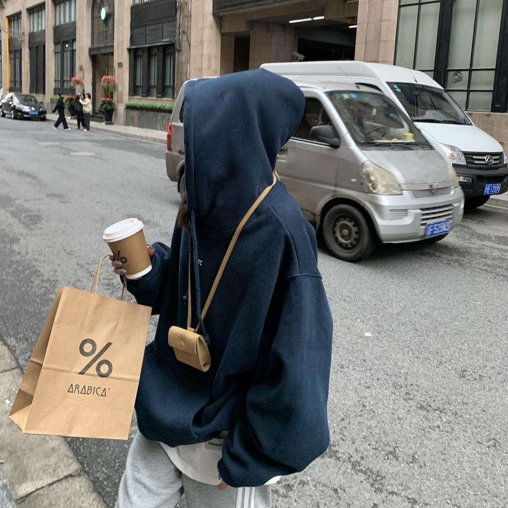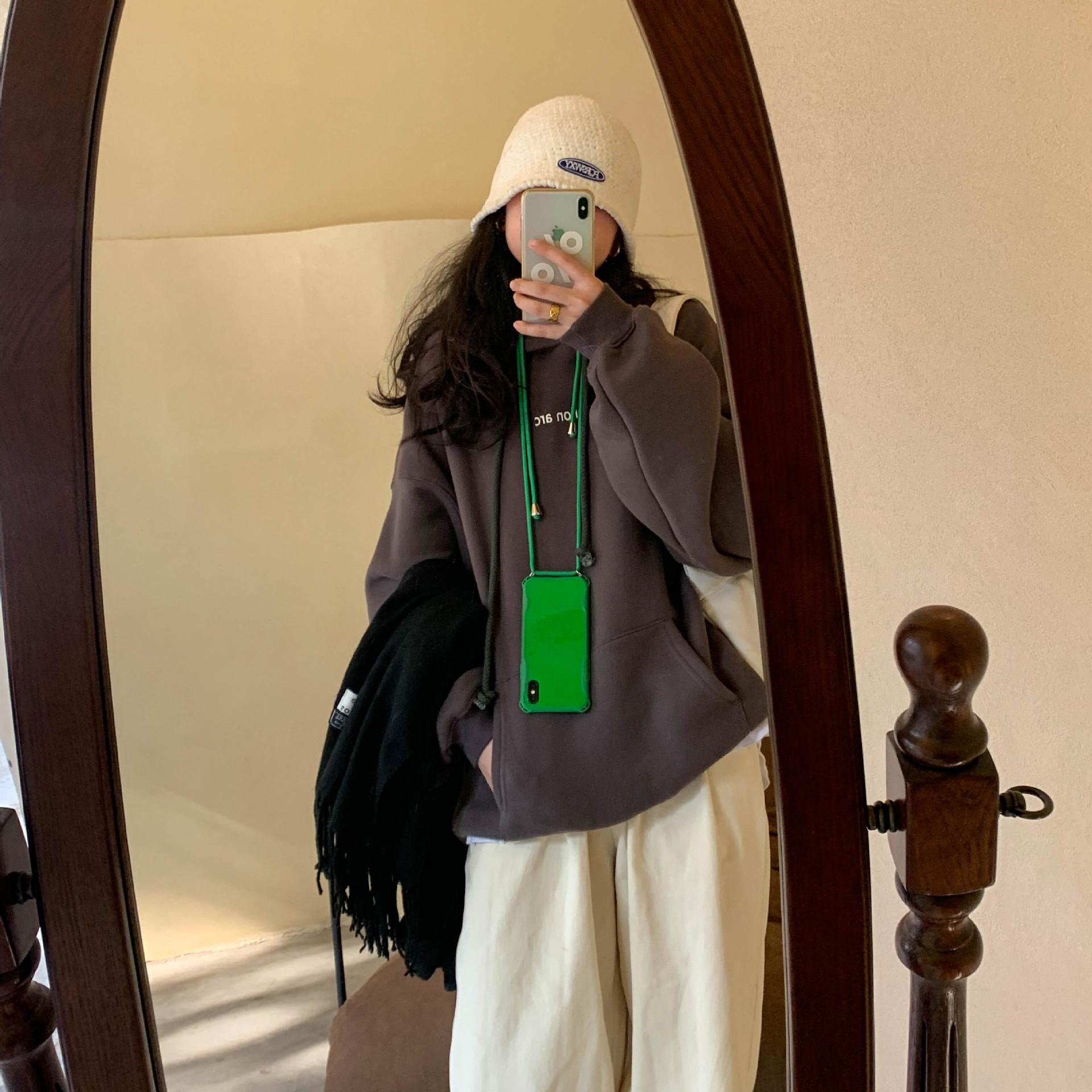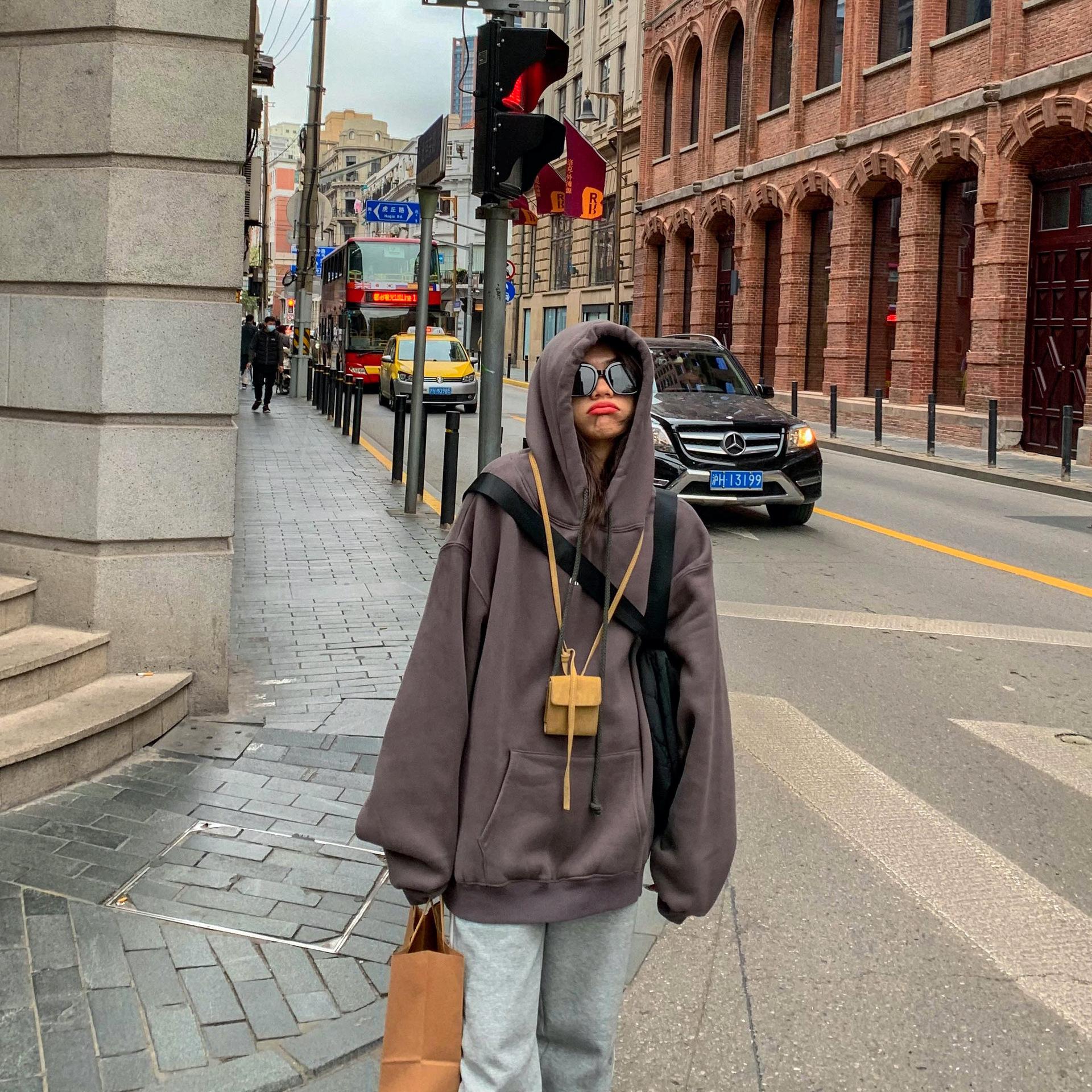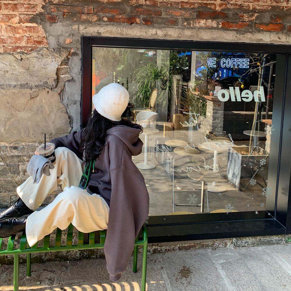 Suéter holgado estilo retro americano para mujer, de otoño e invierno, con estampado de letras David y forro polar de 190 g, tendencia